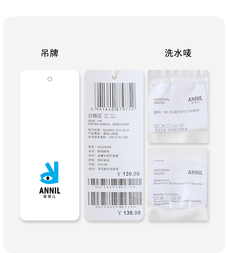 【实体店同款】女童全腰针织打底裤夏季新款安奈儿童装XG526694