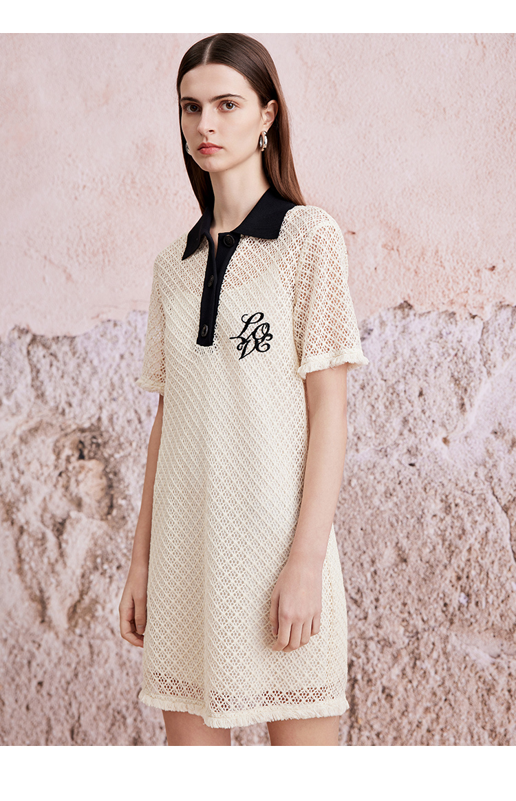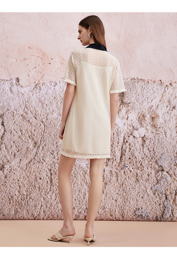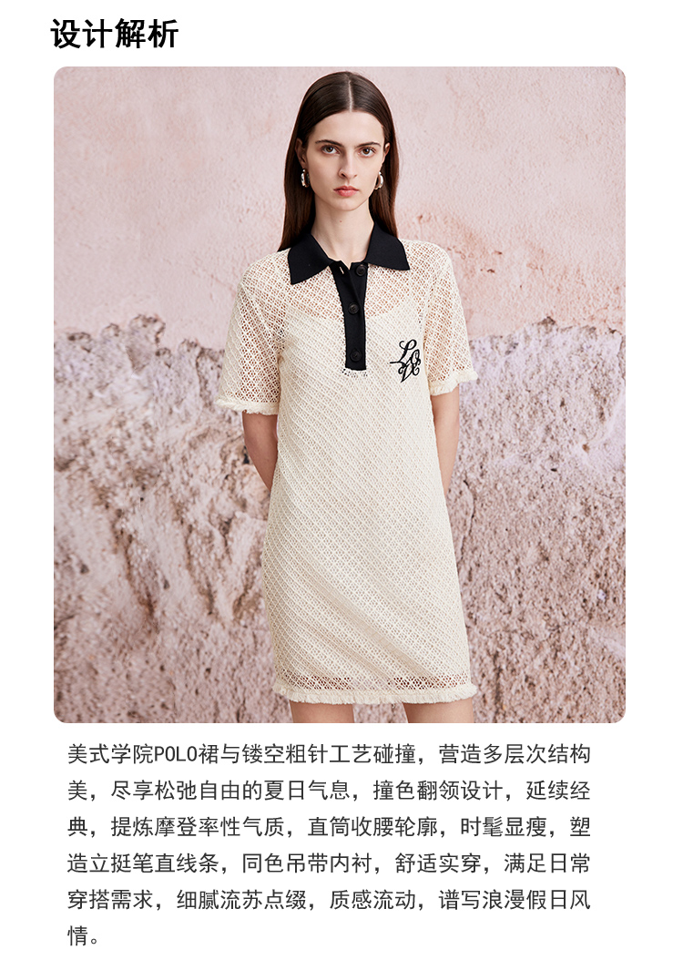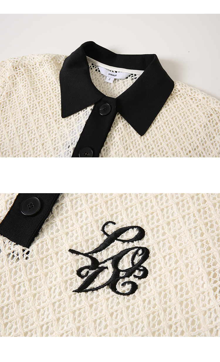 VIMAGE纬漫纪夏季新款镂空钩花高腰直筒连衣裙V2107747