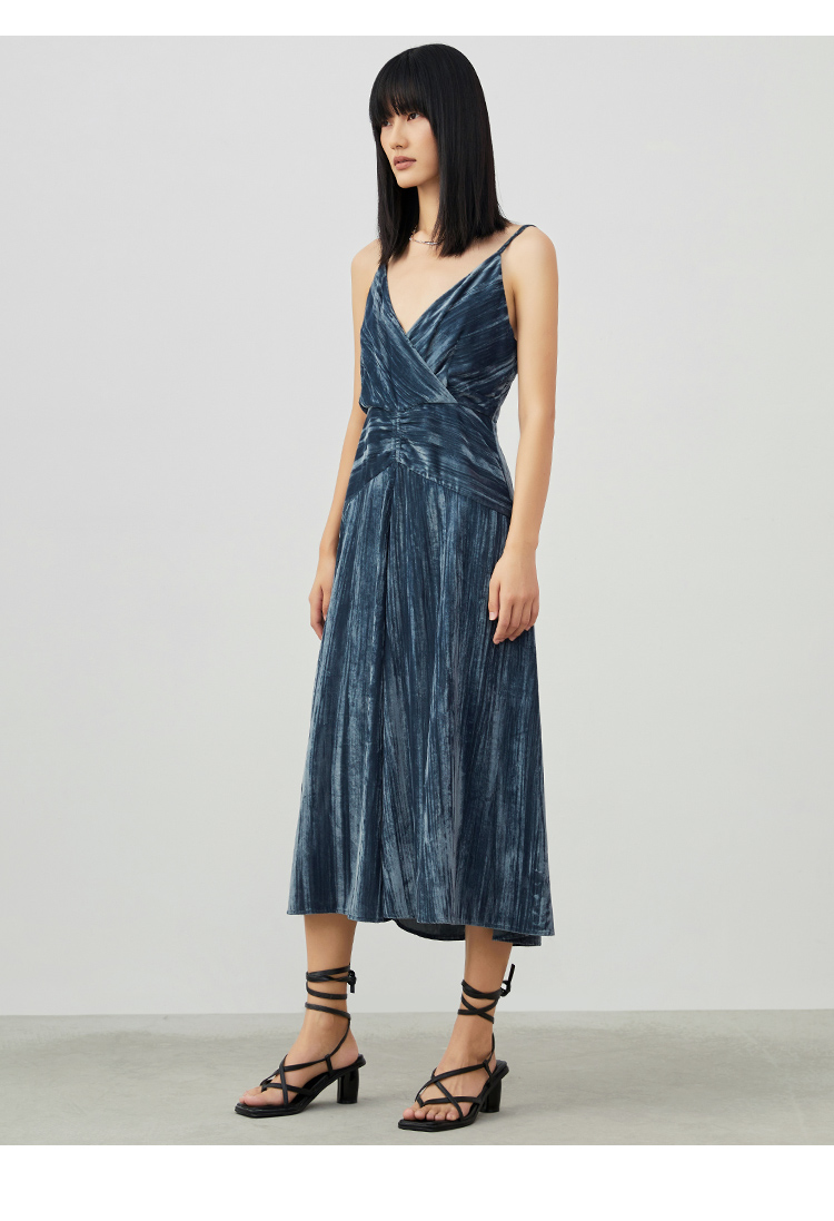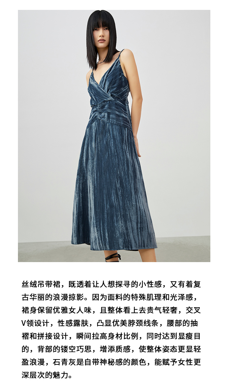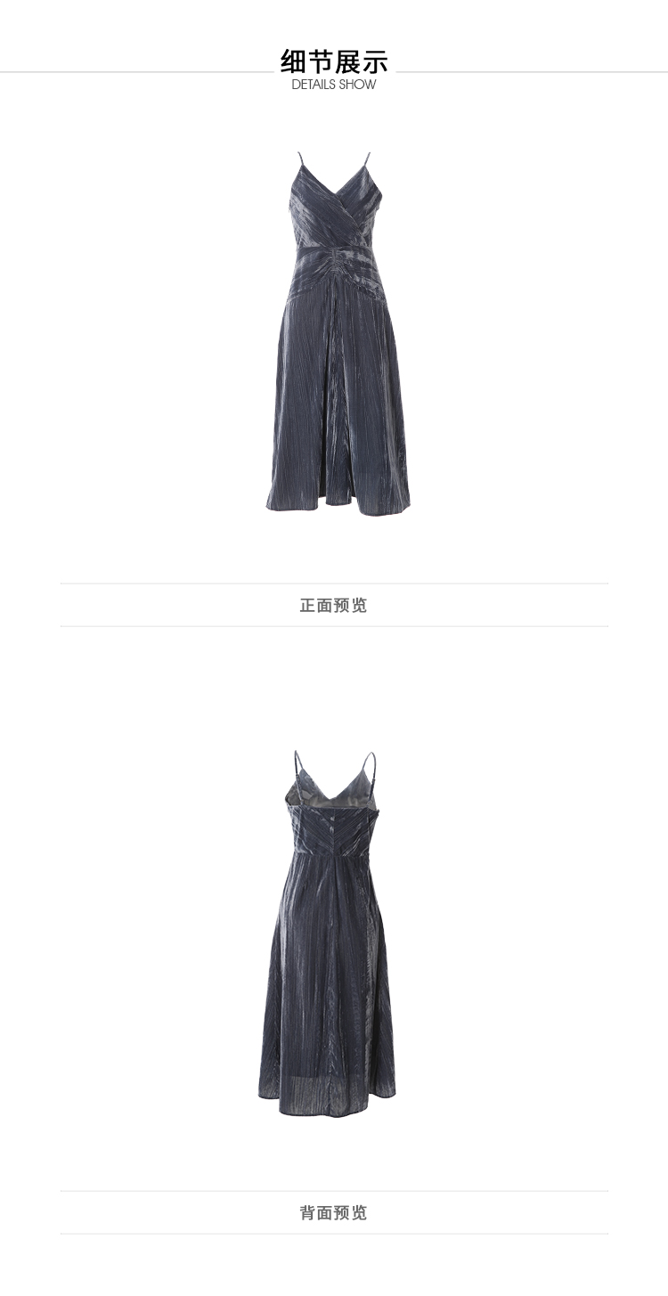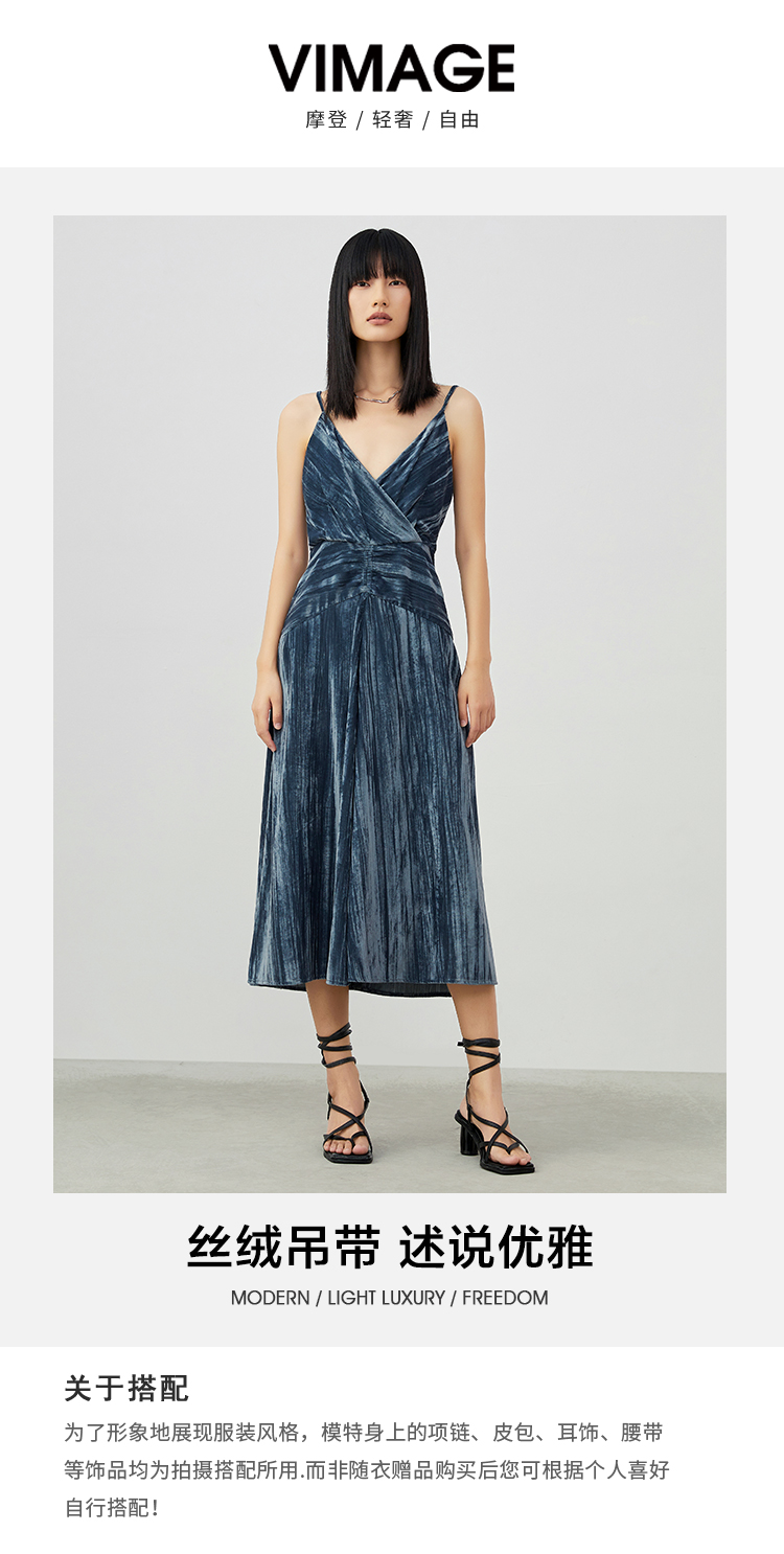 VIMAGE纬漫纪春季新款性感吊带复古露背丝绒深V礼服连衣裙V1777301