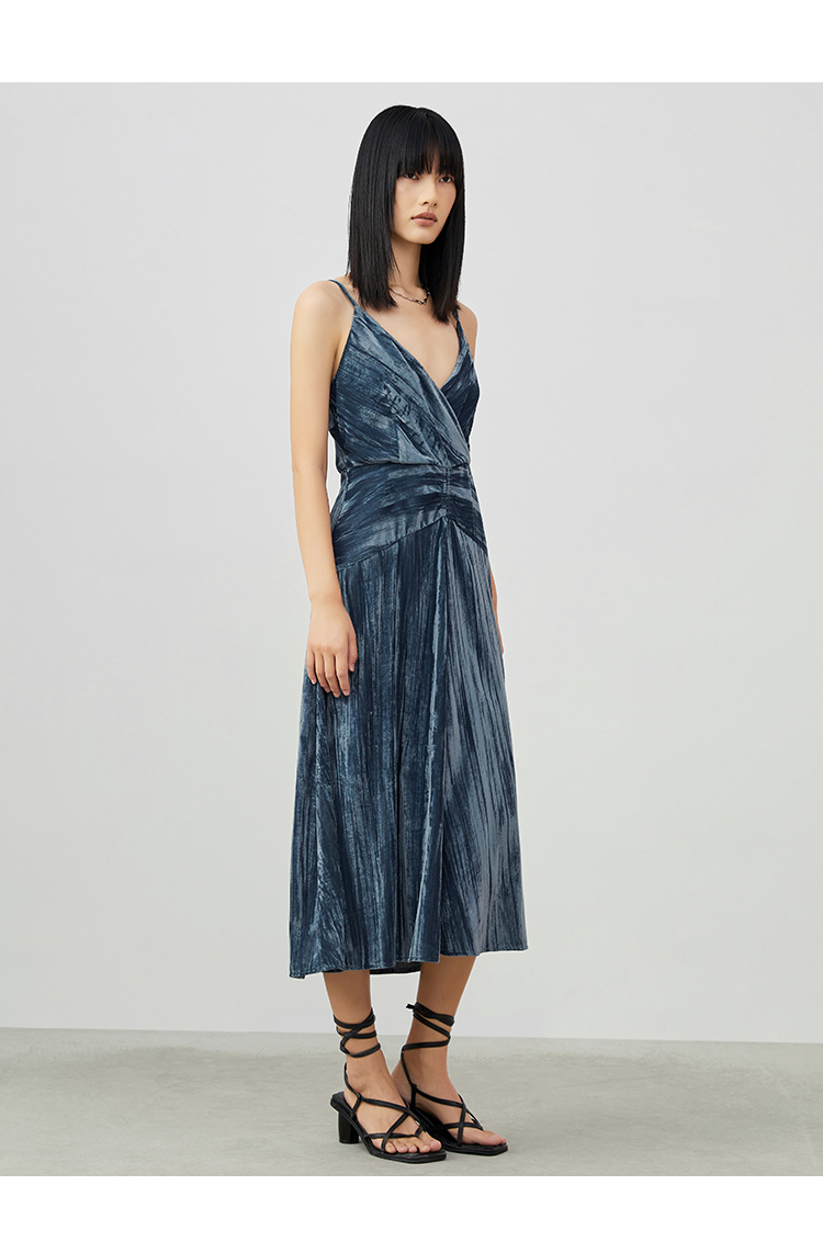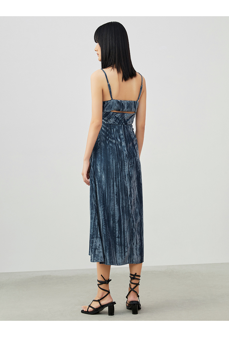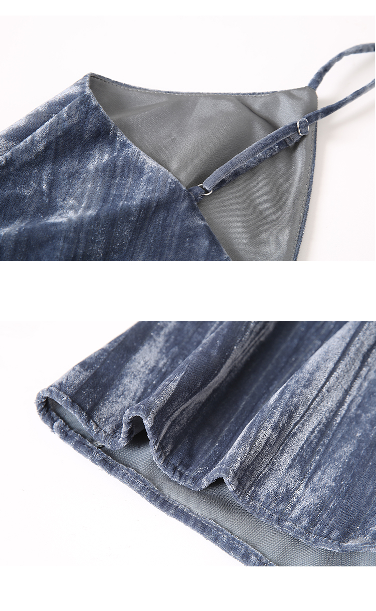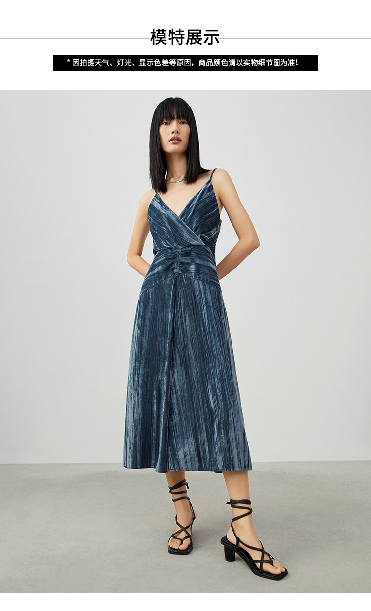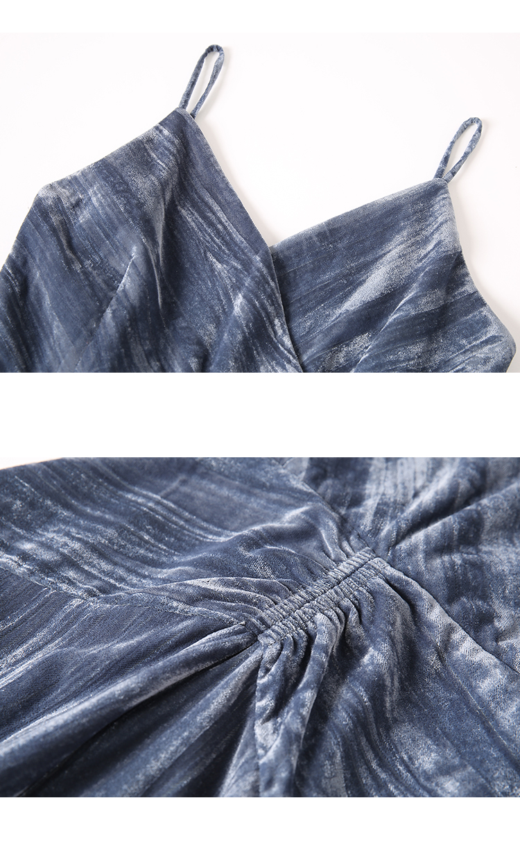 VIMAGE纬漫纪春季新款性感吊带复古露背丝绒深V礼服连衣裙V1777301