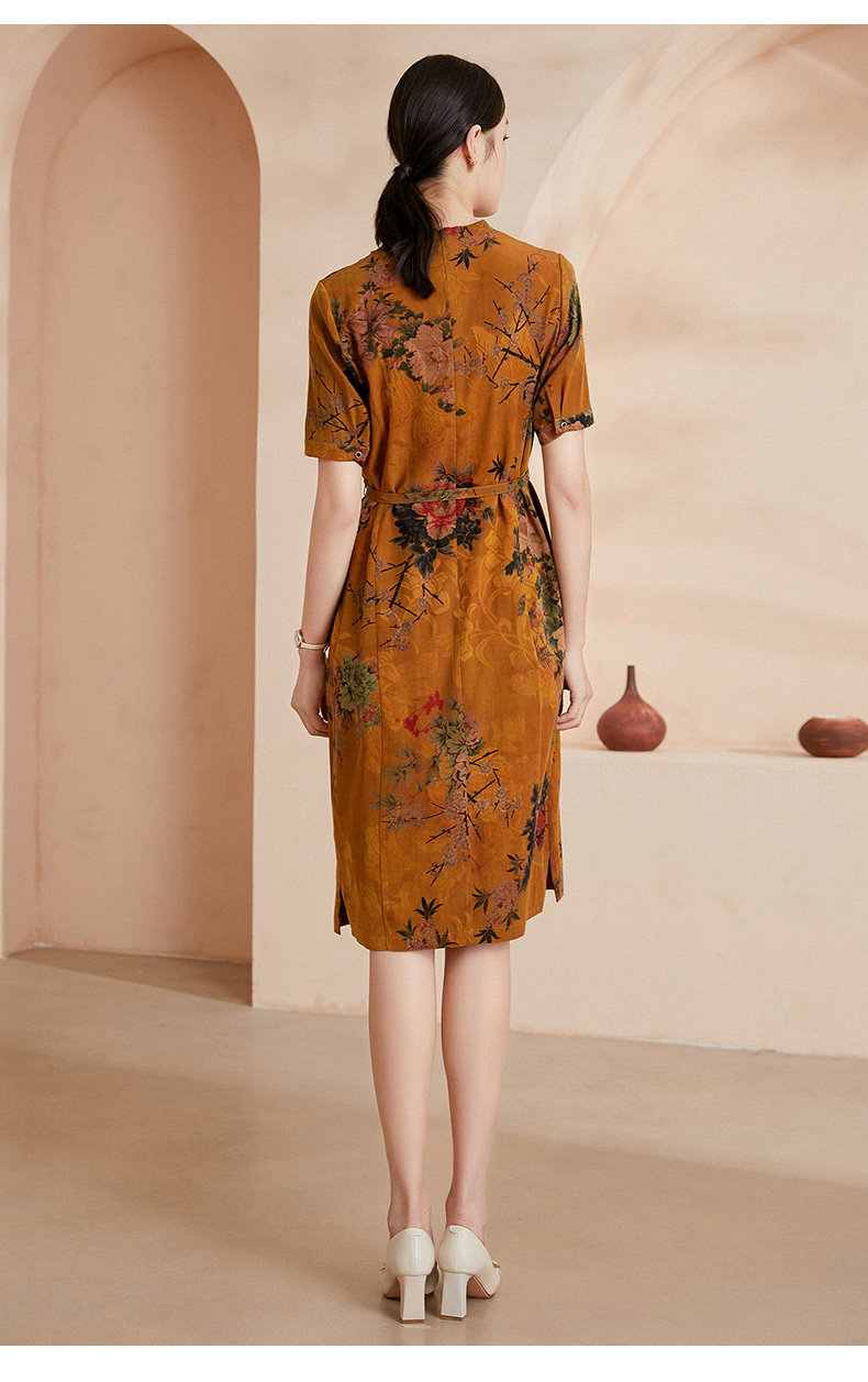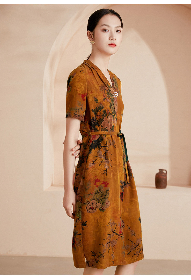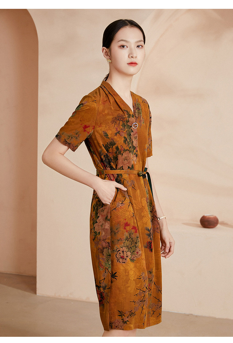 【蝶恋牡丹】【香云纱】乔万尼真丝连衣裙重磅40MM高贵气质EI2E701