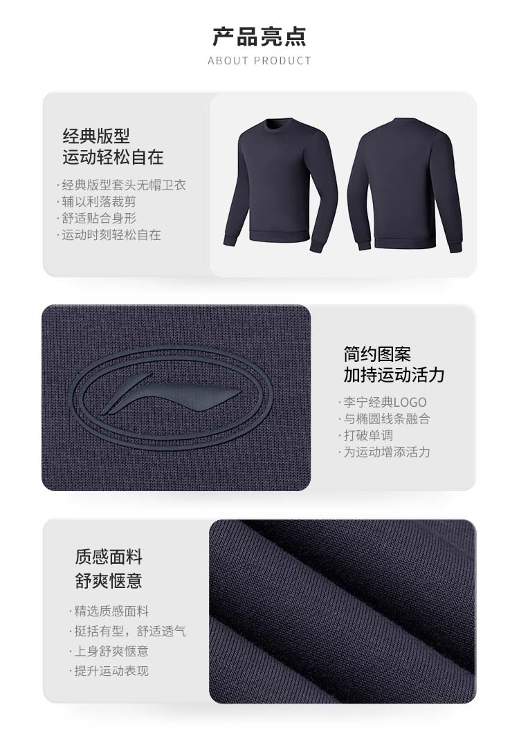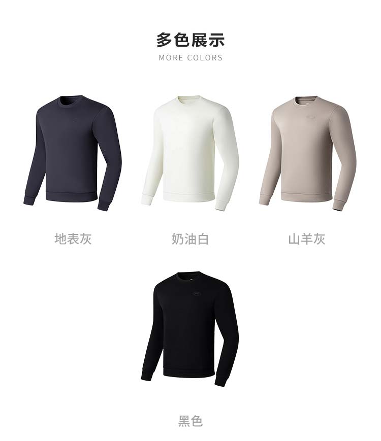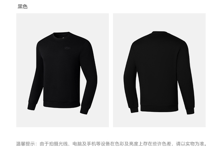 【M/L断码】李宁卫衣男春秋2023新款圆领无帽黑色上衣针织休闲运动服AWDT101【库存有限,如无货将做退款,介意慎拍!】