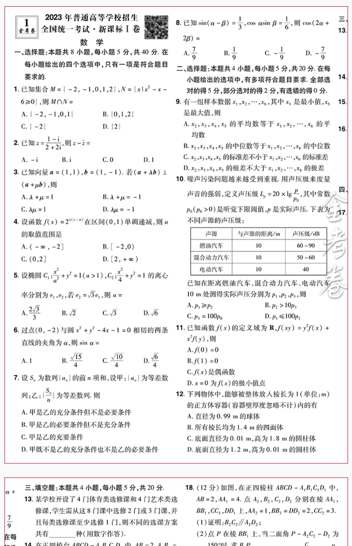 2024版金考卷特快专递第1期2023年高考真题卷语文数学英语物理化学生物政治历史地理文综理综任选第一期全国卷新高考试题汇编试卷