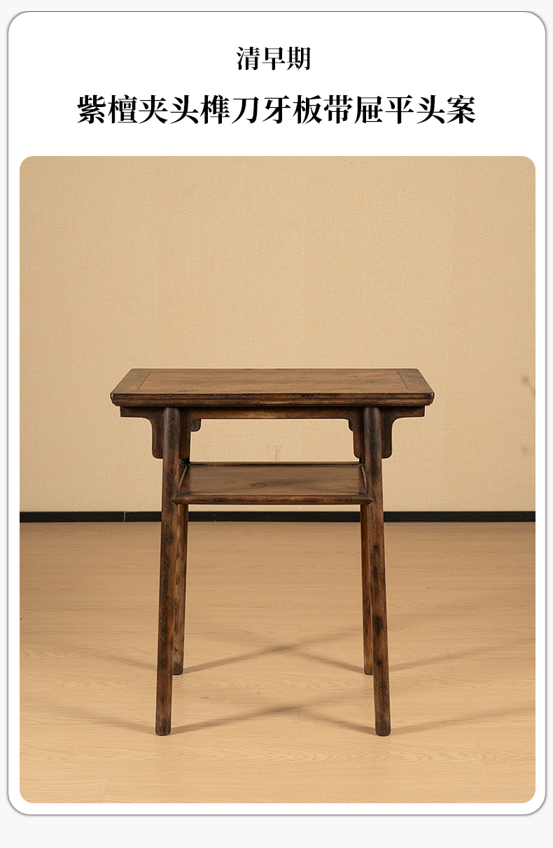 清早期 紫檀夹头榫刀牙板带屉平头案