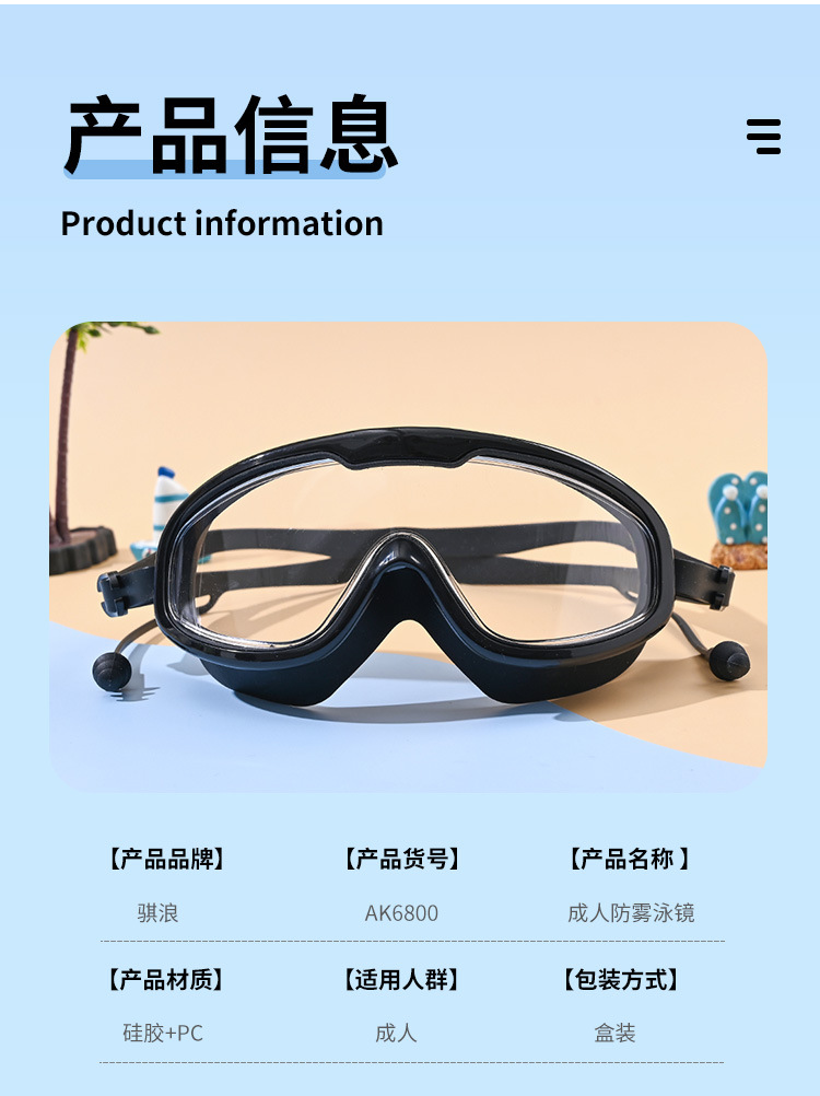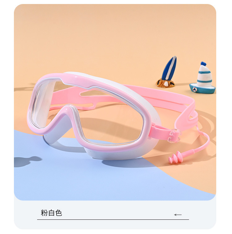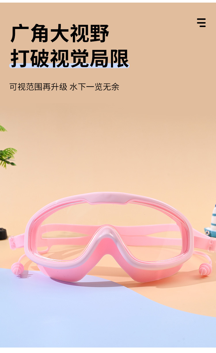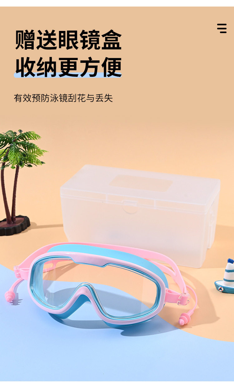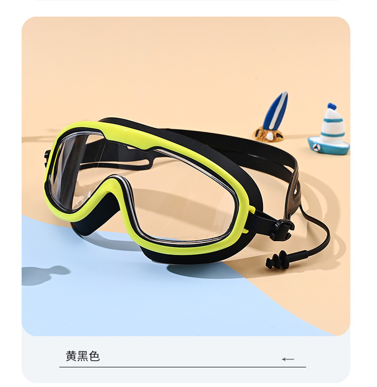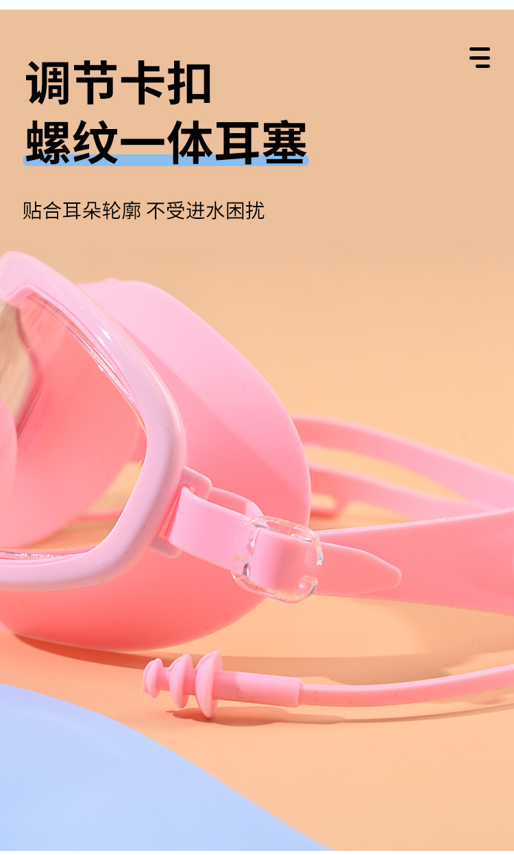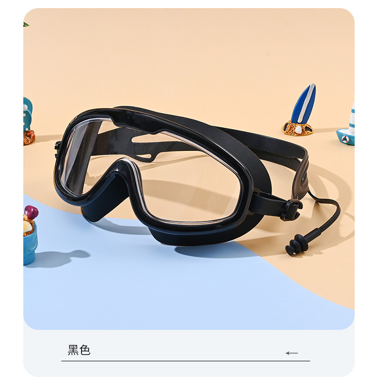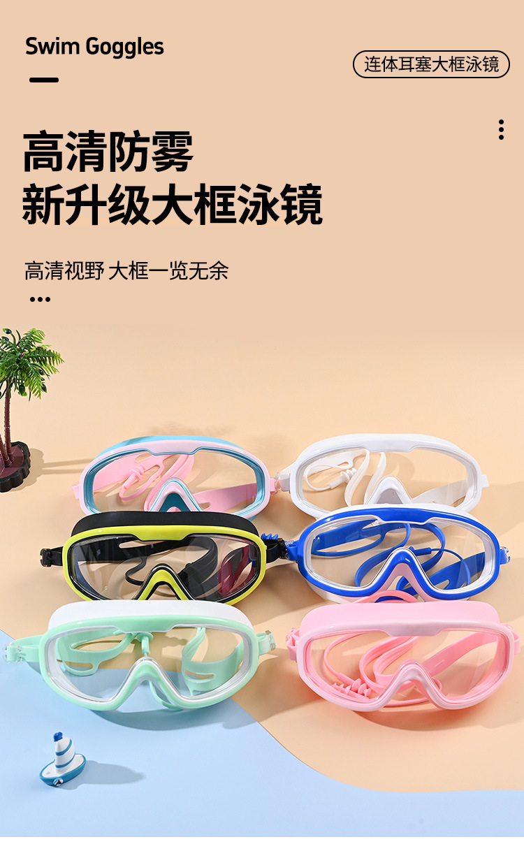 【高清防雾,新升级大框泳镜!】泳镜女生 高清防水防雾连体耳塞 男士一体大框 成人游泳潜水训练眼镜-QQ
