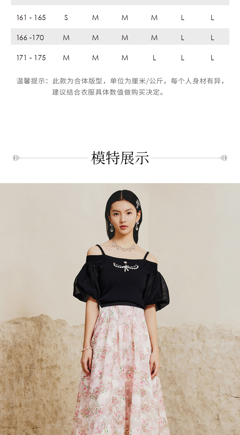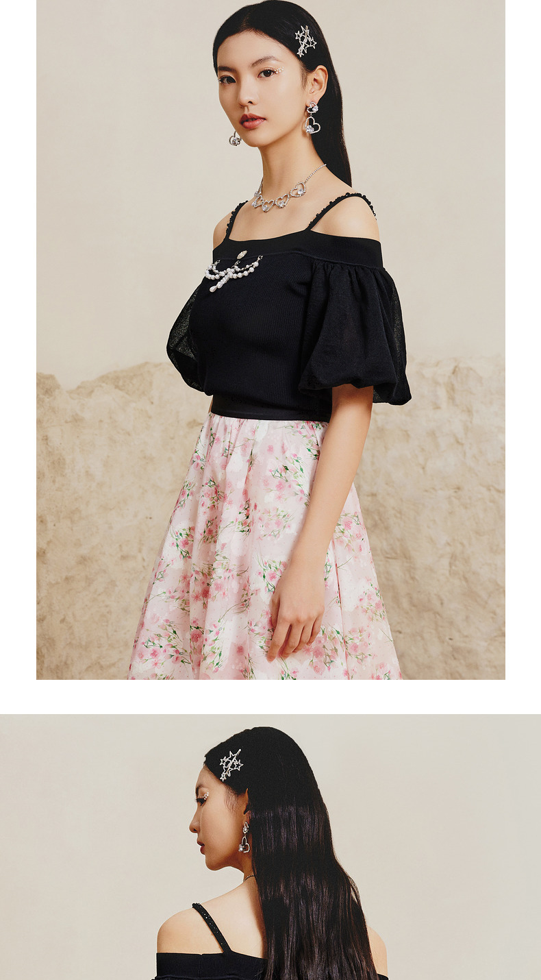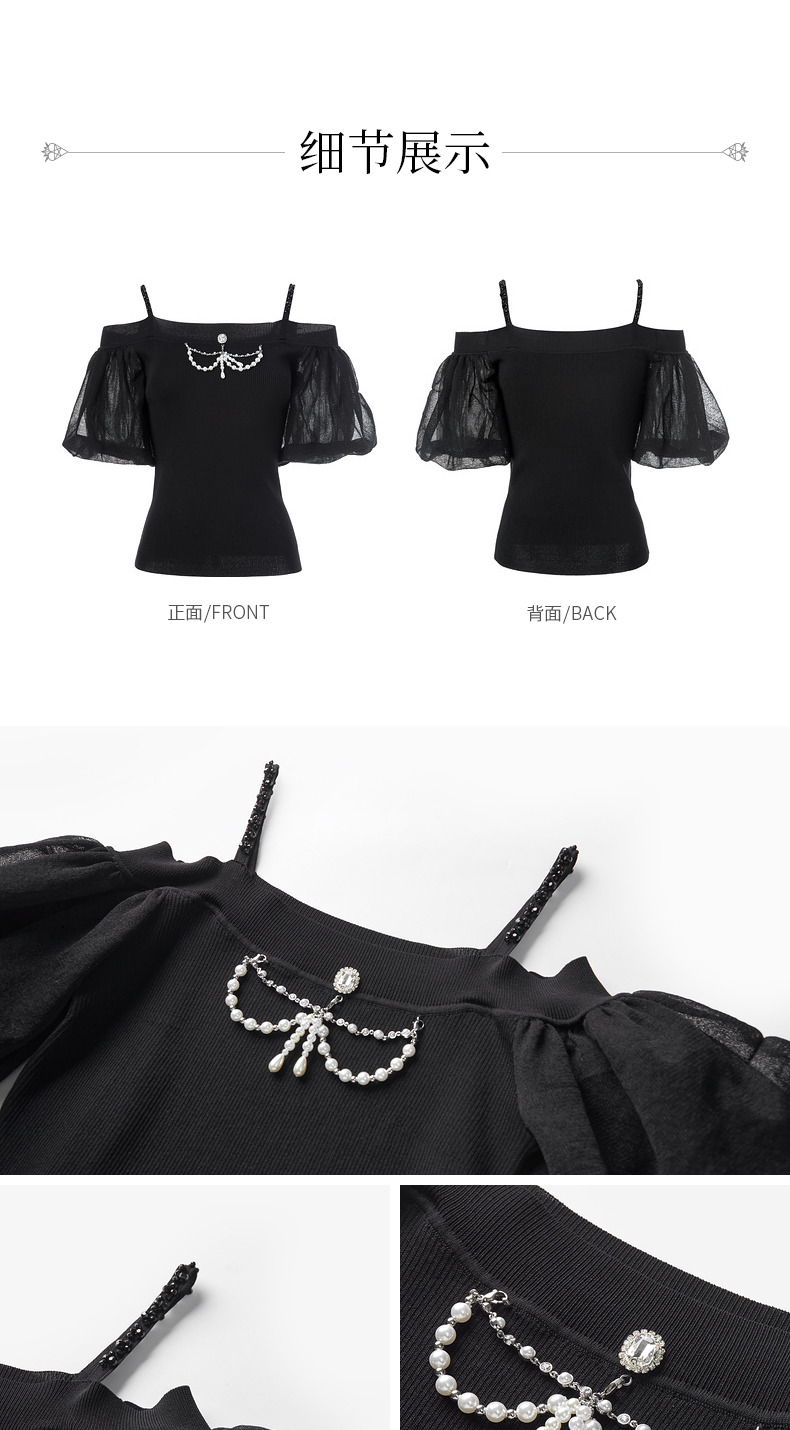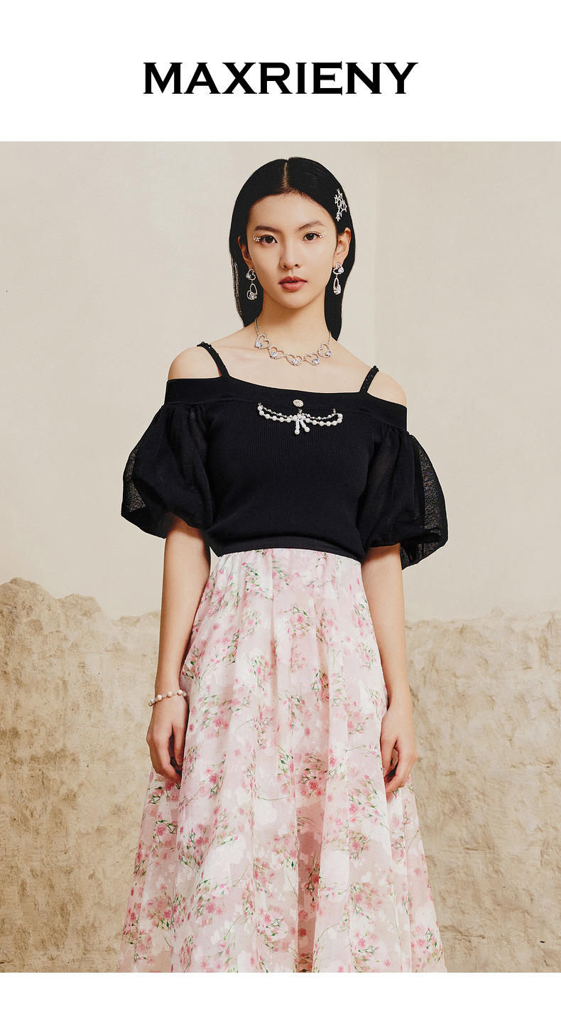 MAXRIENY黑色一字肩泡泡袖针织衫冷淡系高级感上衣(货号:MC88SW068)