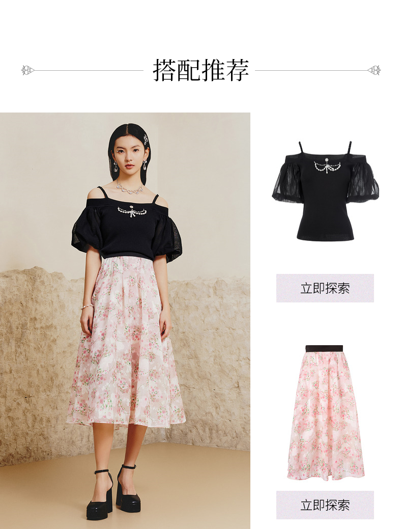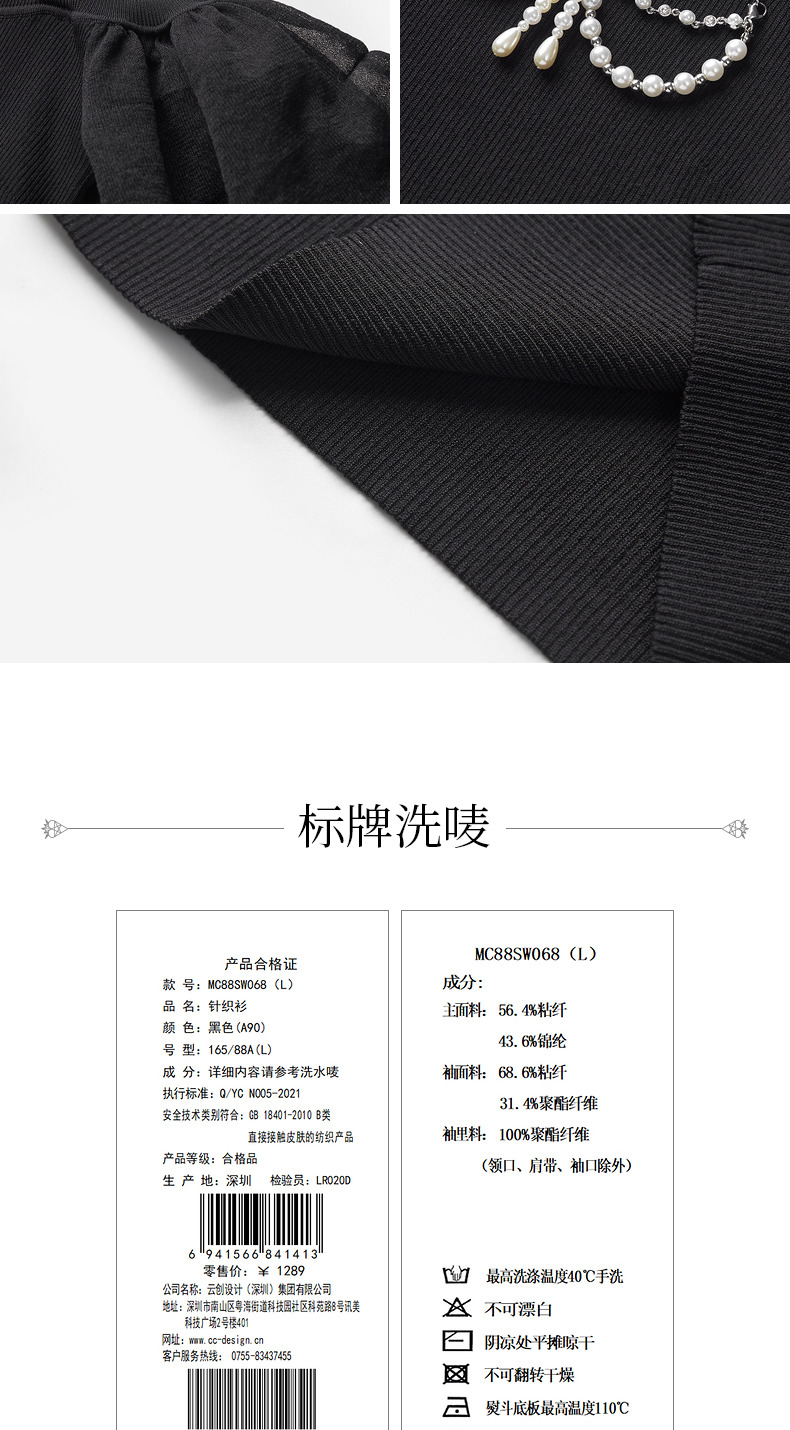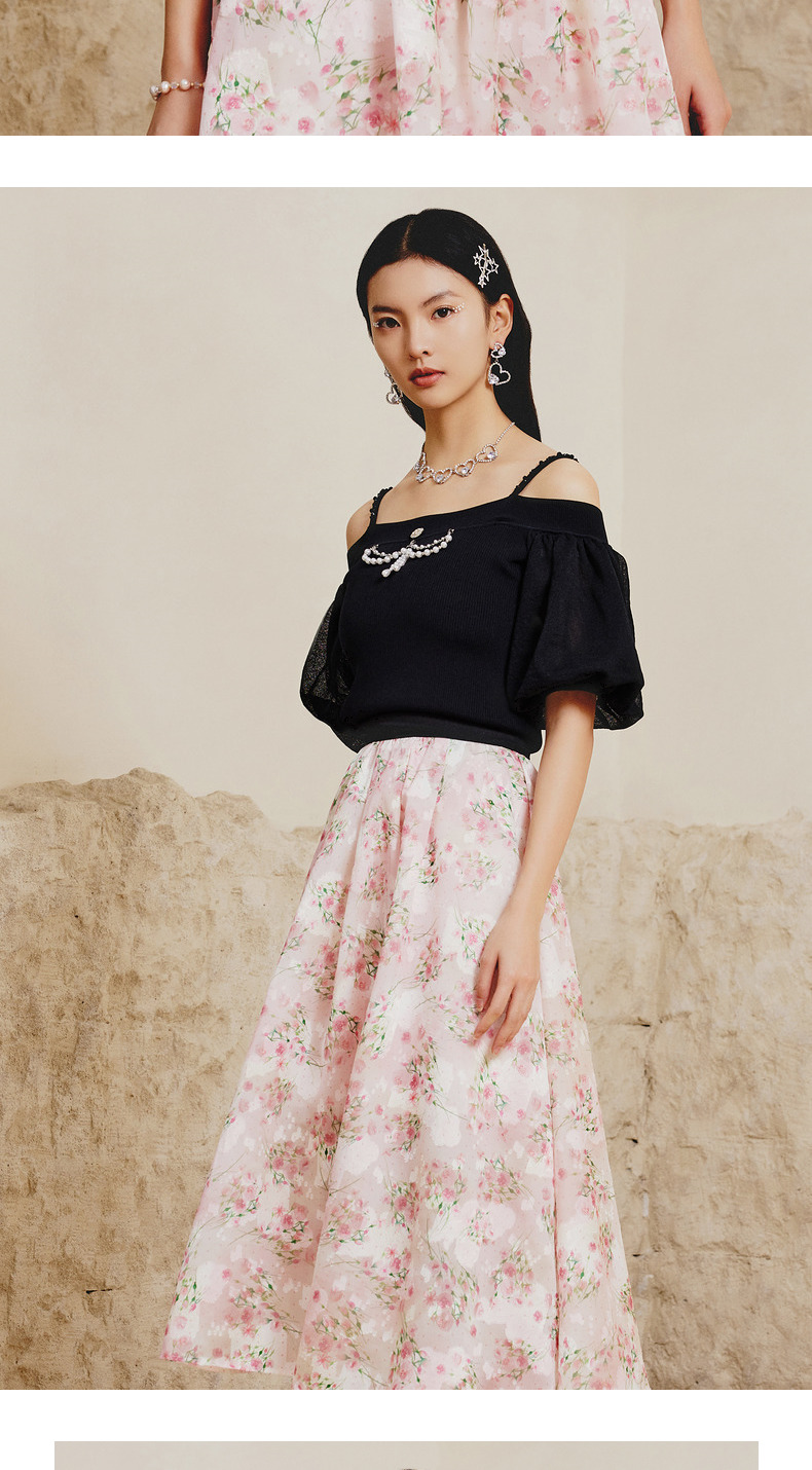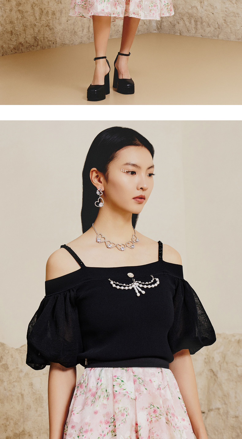 MAXRIENY黑色一字肩泡泡袖针织衫冷淡系高级感上衣(货号:MC88SW068)