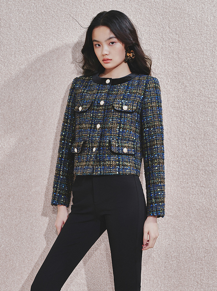 千金小香风粗花呢短外套女24冬轻奢气质高级感女装