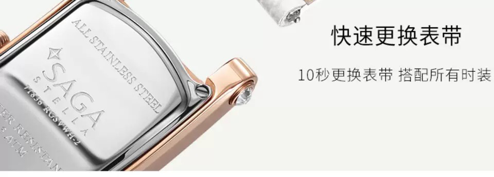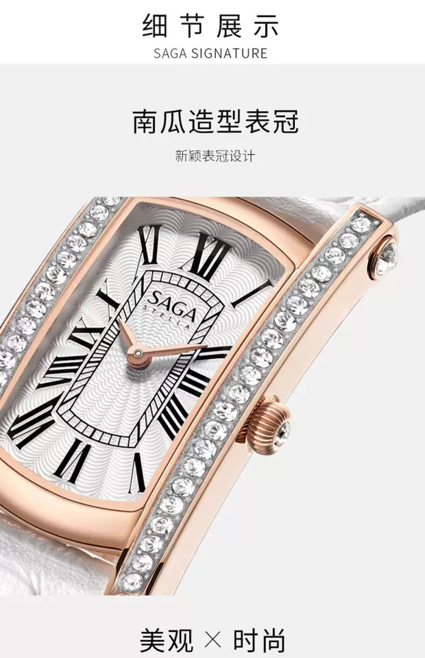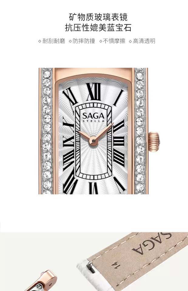 SAGA世家女士手表品牌腕表时装表经典简约正品防水石英ins小方表