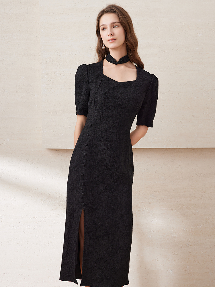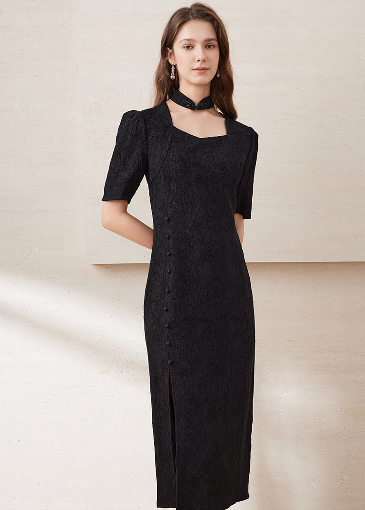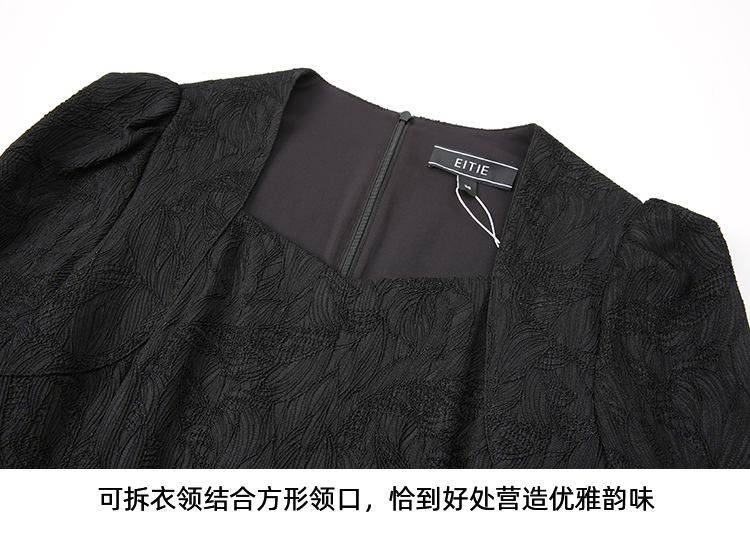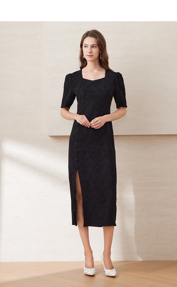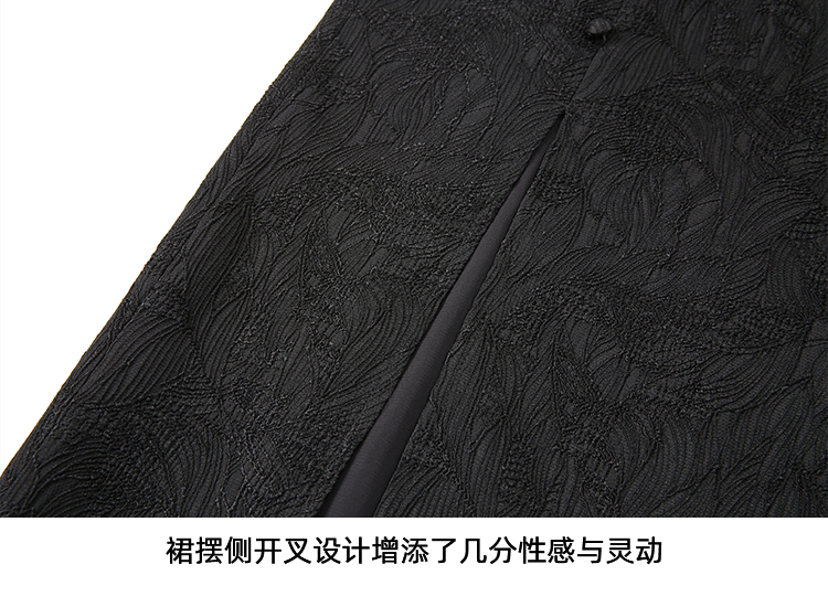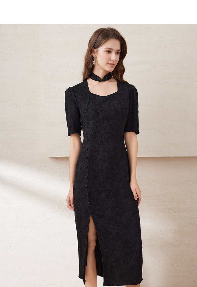 EITIE爱特爱春季新款时尚通勤改良旗袍开叉显瘦纯色连衣裙7707403