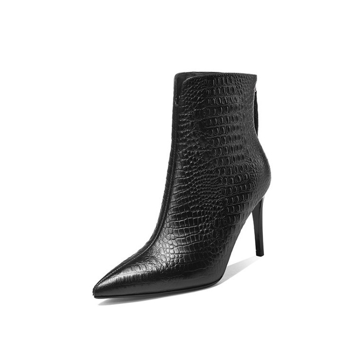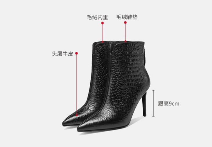 OLD-Y10136新款英伦真皮百搭蛇纹高跟短靴