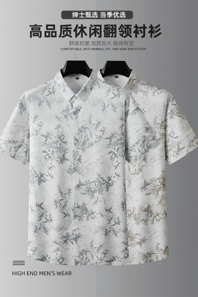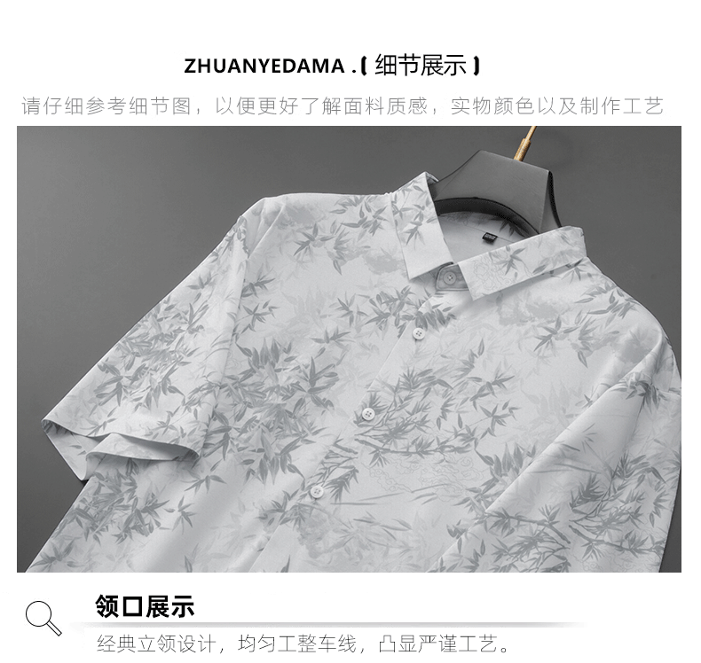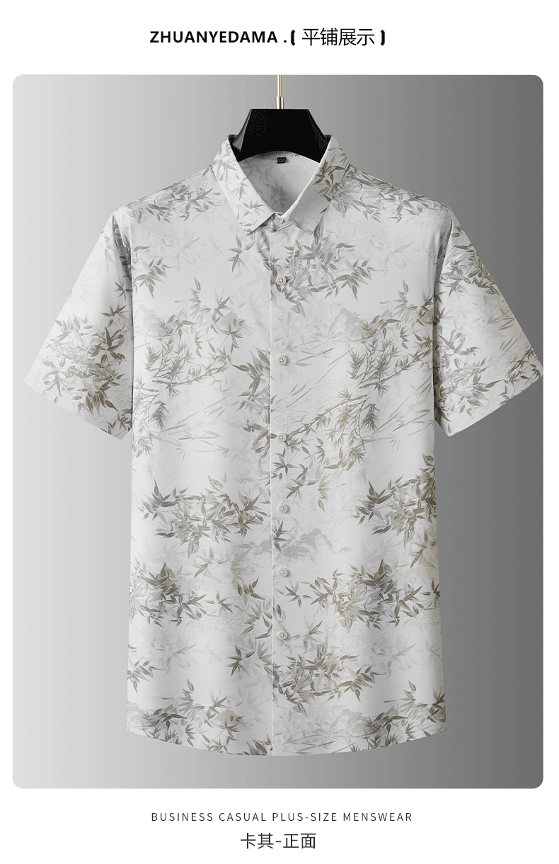 【棉麻】【DDA】大依优型大码花衬衫短袖衬衫翻领衬衣商务休闲透气半袖夏季上衣男士