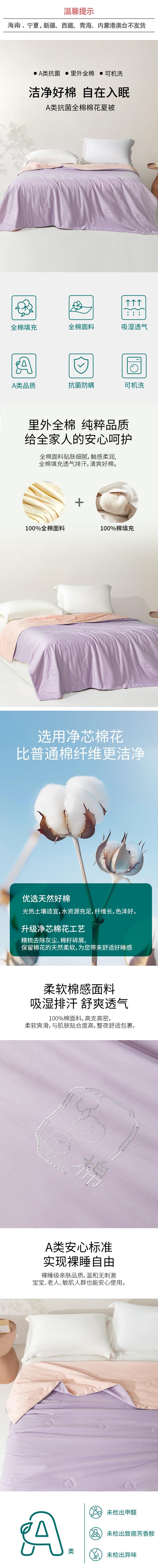 恒源祥 A类抗菌全棉棉花夏被柔域200*230cm 6942394722721