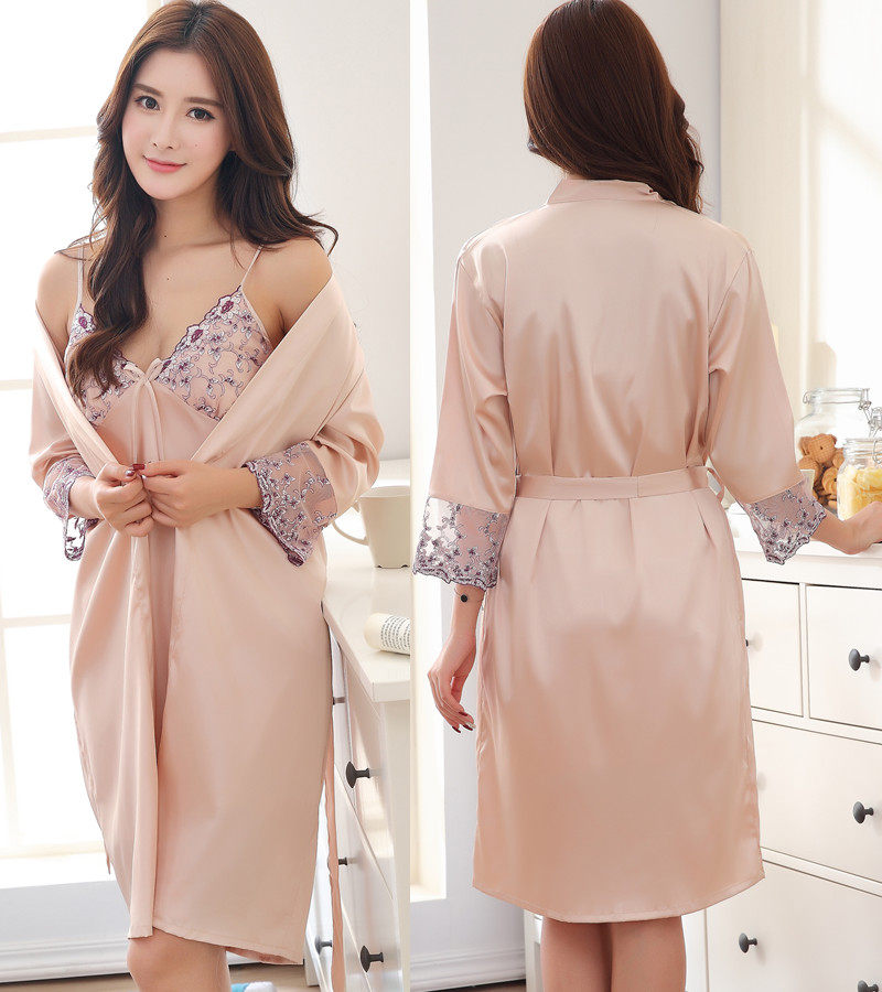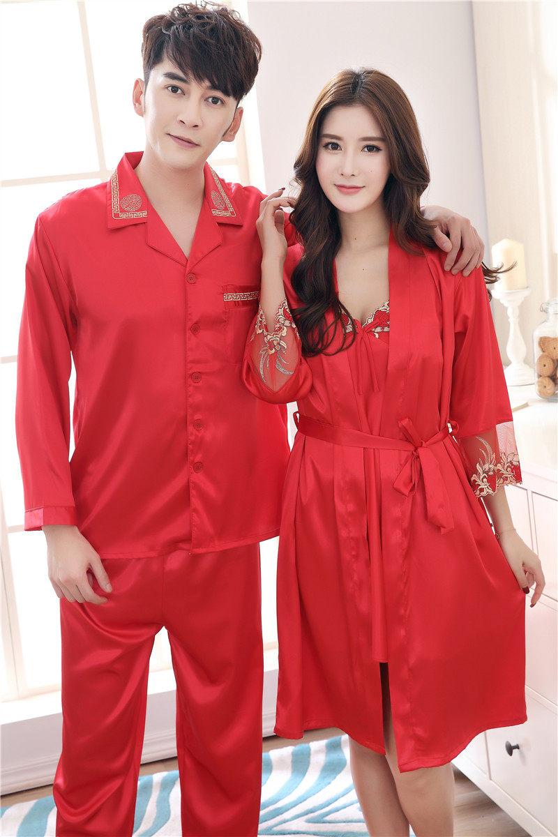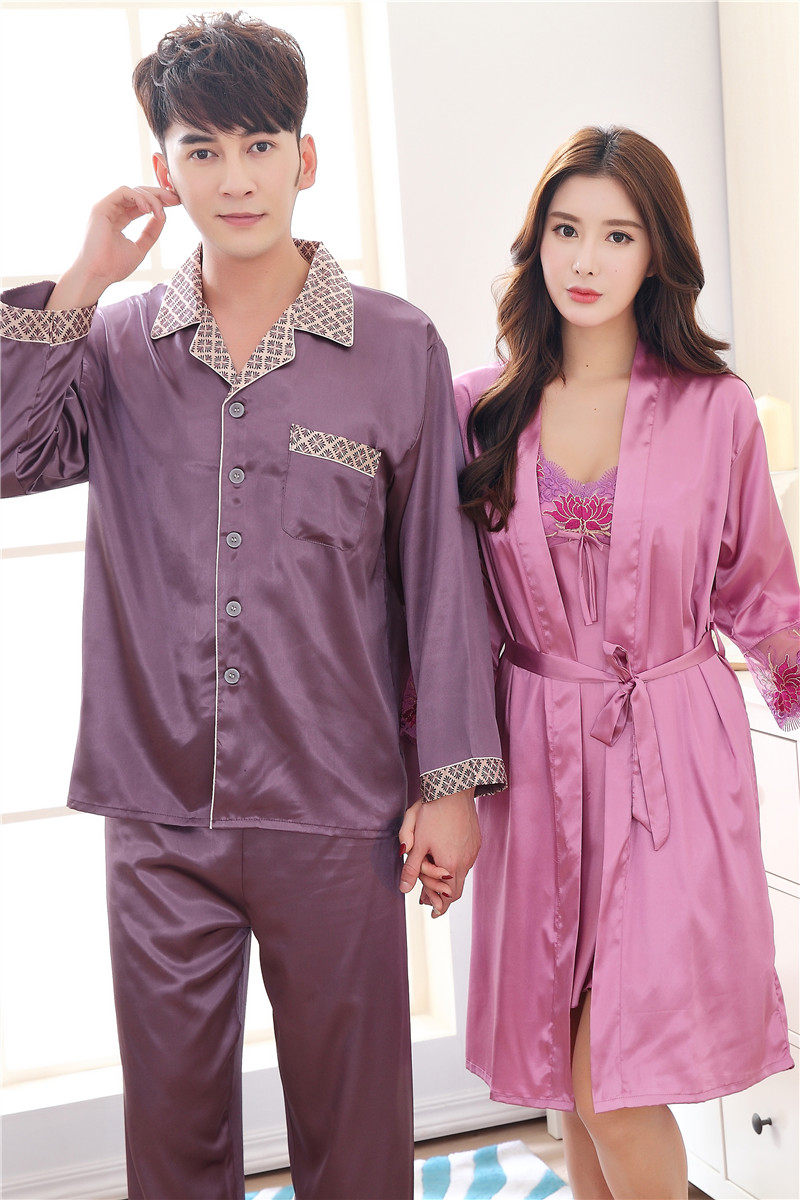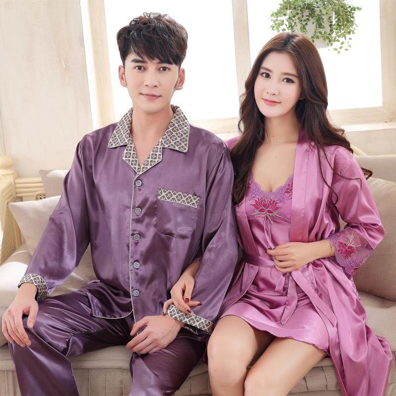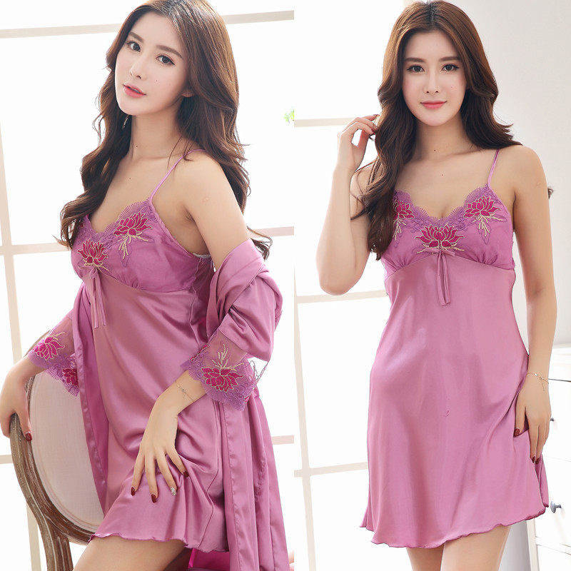 ZB-205春季情侣睡衣丝绸性感吊带睡裙两件套
