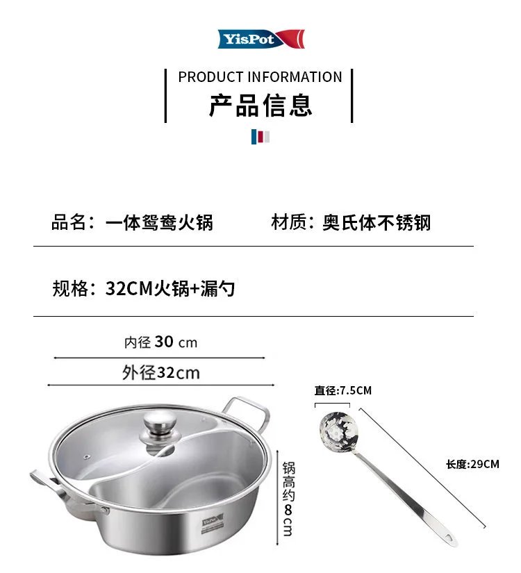 【易铂yispot一体不锈钢鸳鸯锅 】