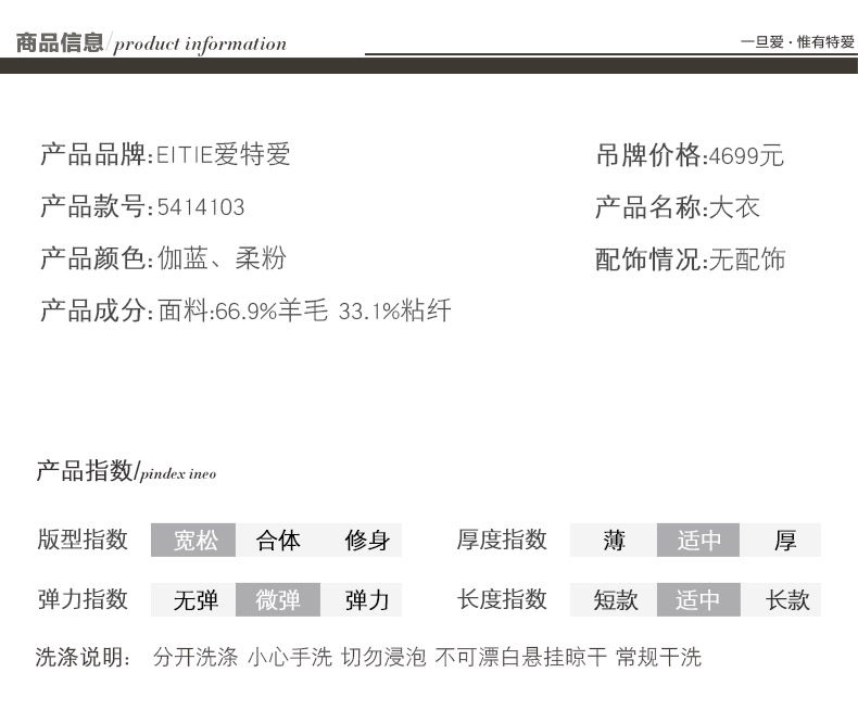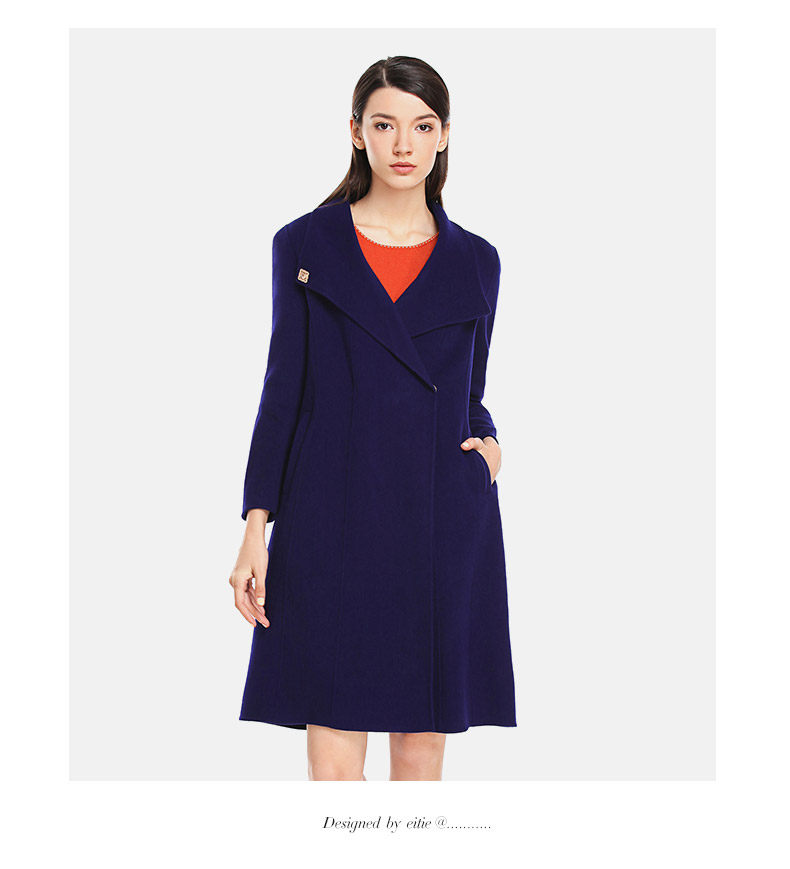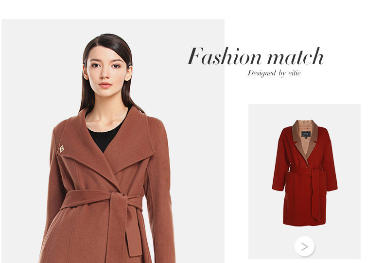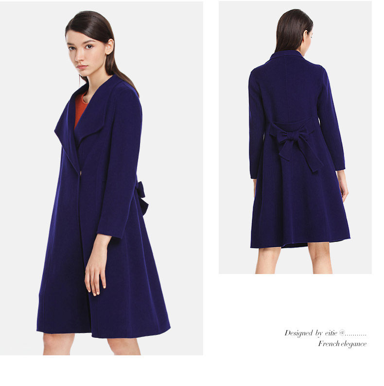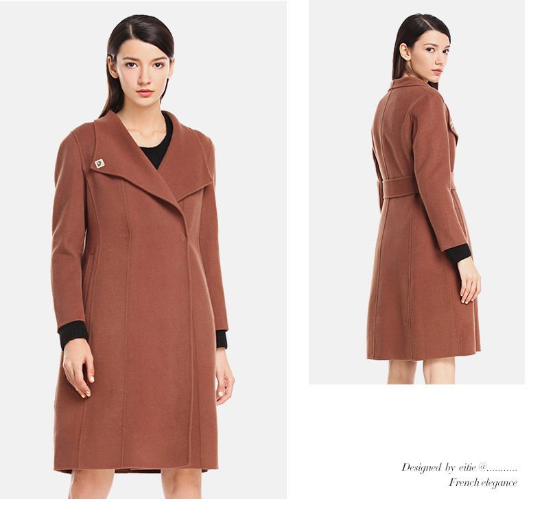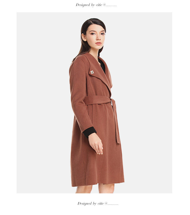 EITIE爱特爱长袖腰带修身双面呢羊毛大衣毛呢外套女5414103