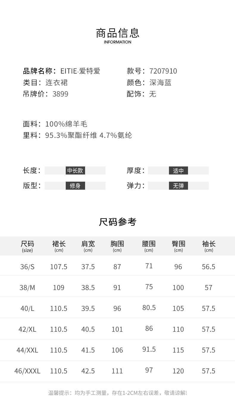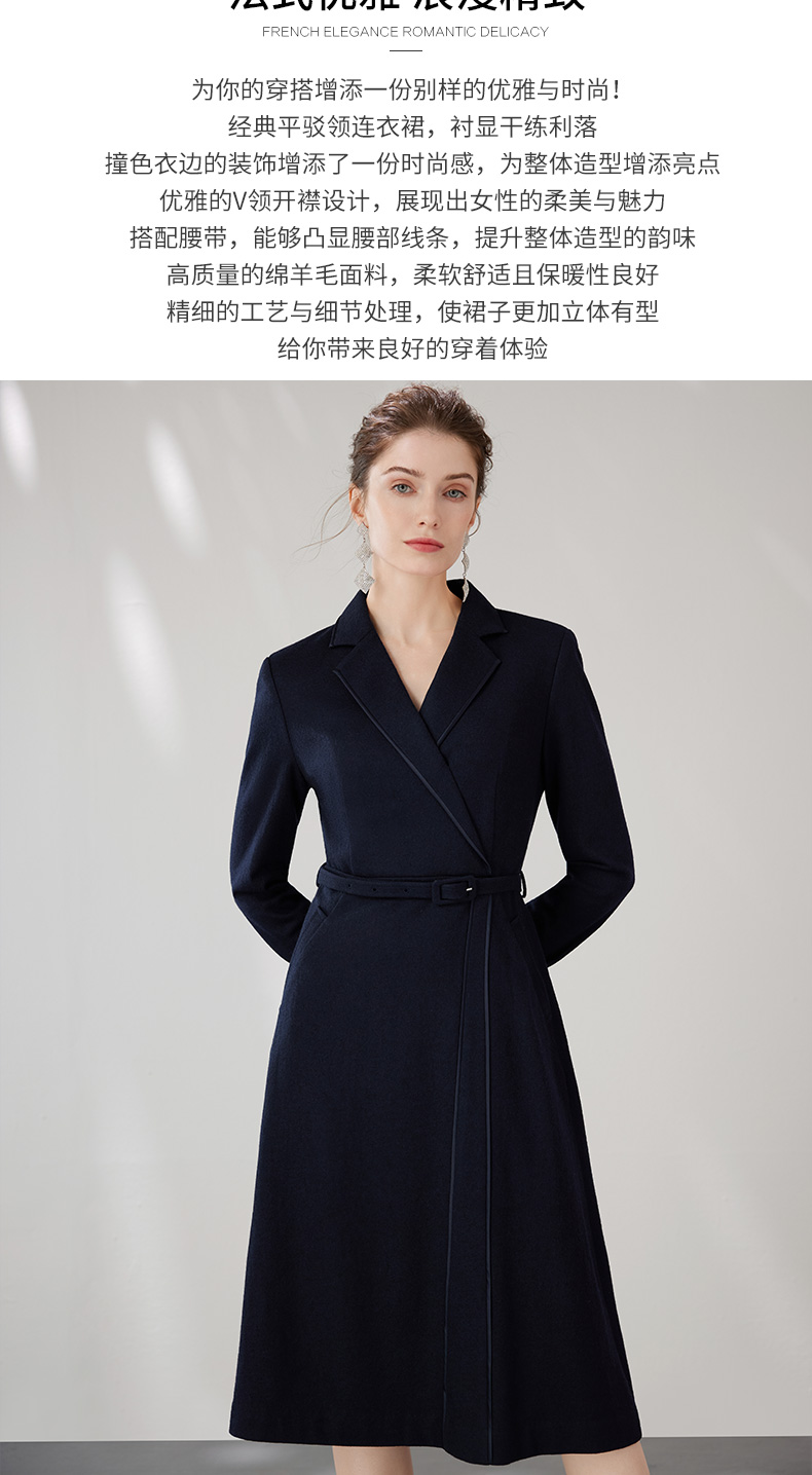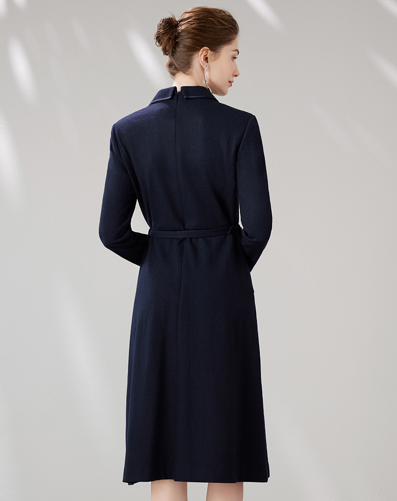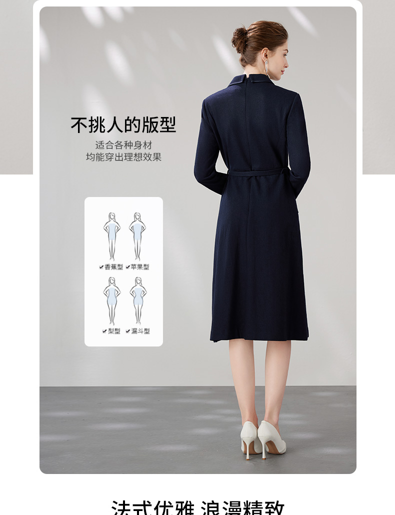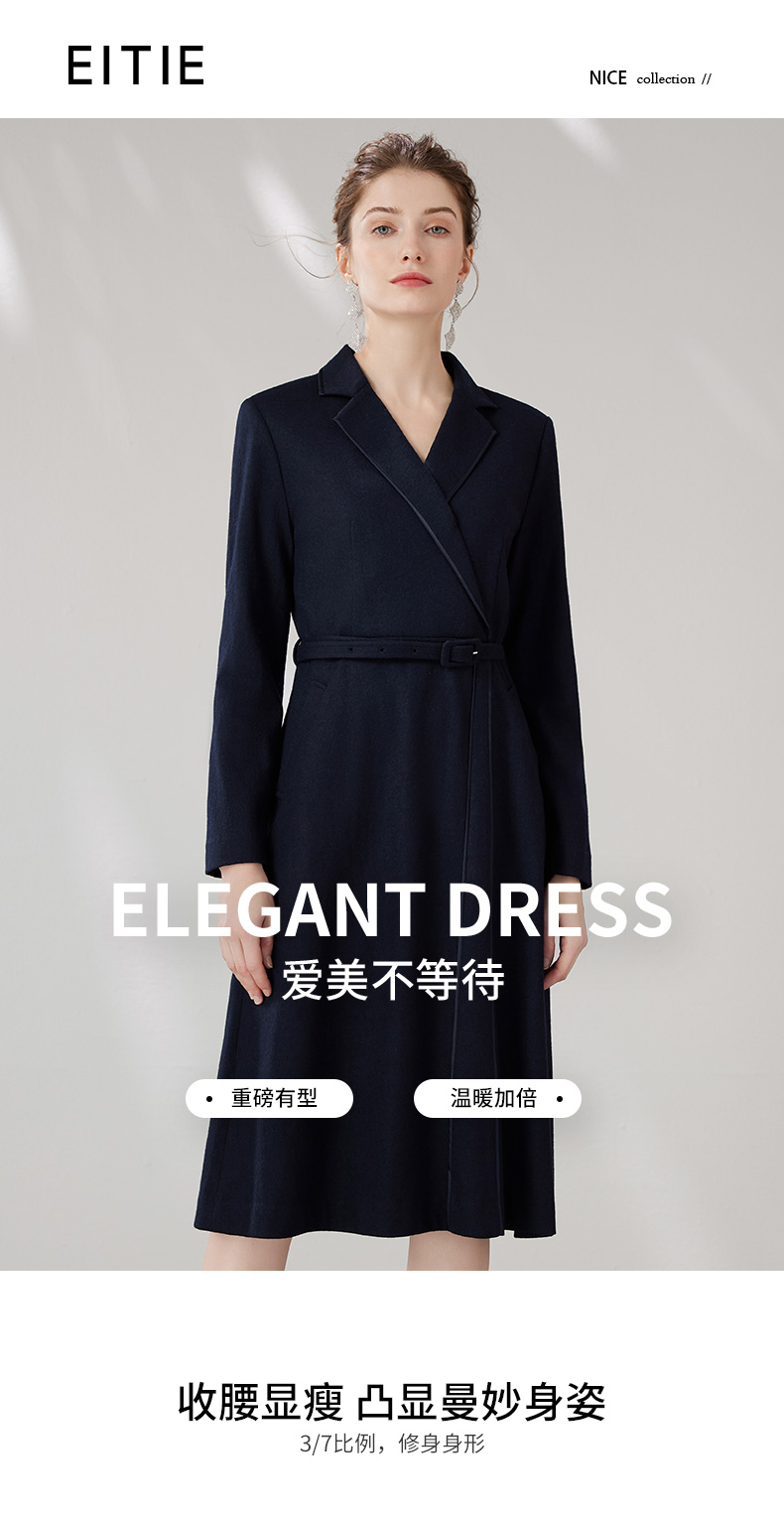 EITIE爱特爱冬季新款气质翻领显瘦收腰中长款连衣裙7207910