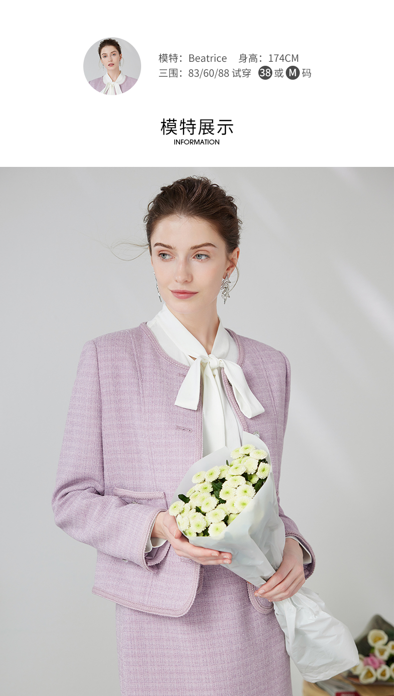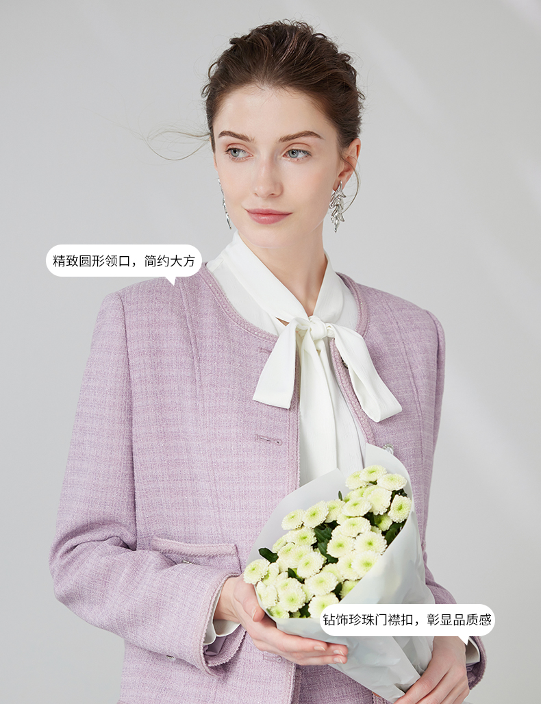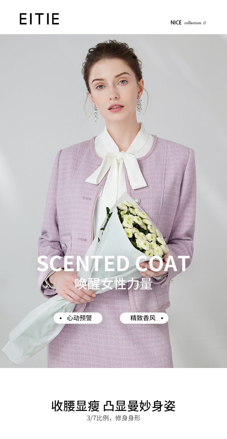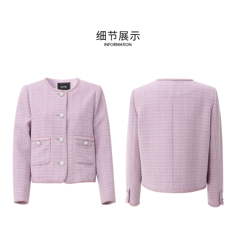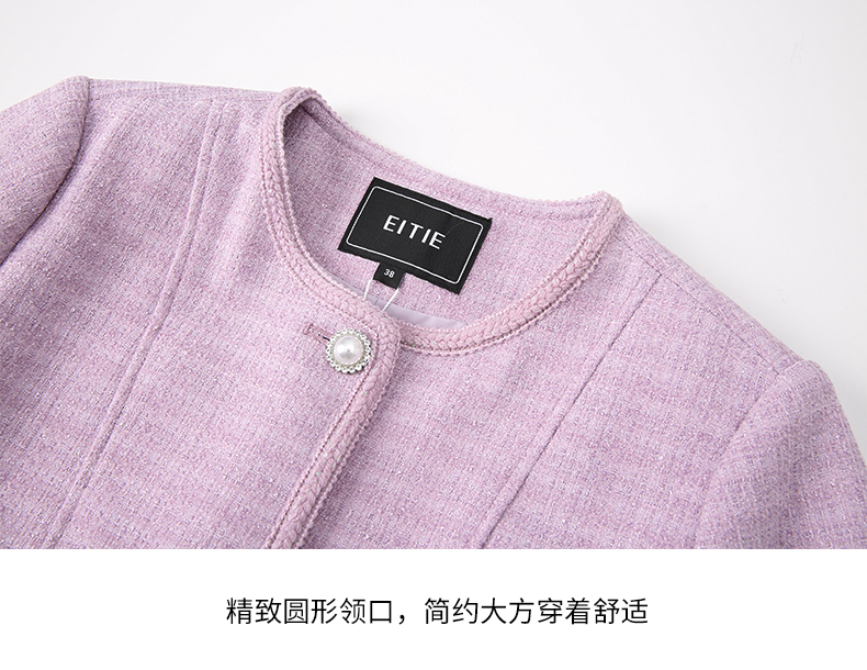 EITIE爱特爱气质优雅经典复古香风浅紫色温柔百搭短外套24春新款A2403303