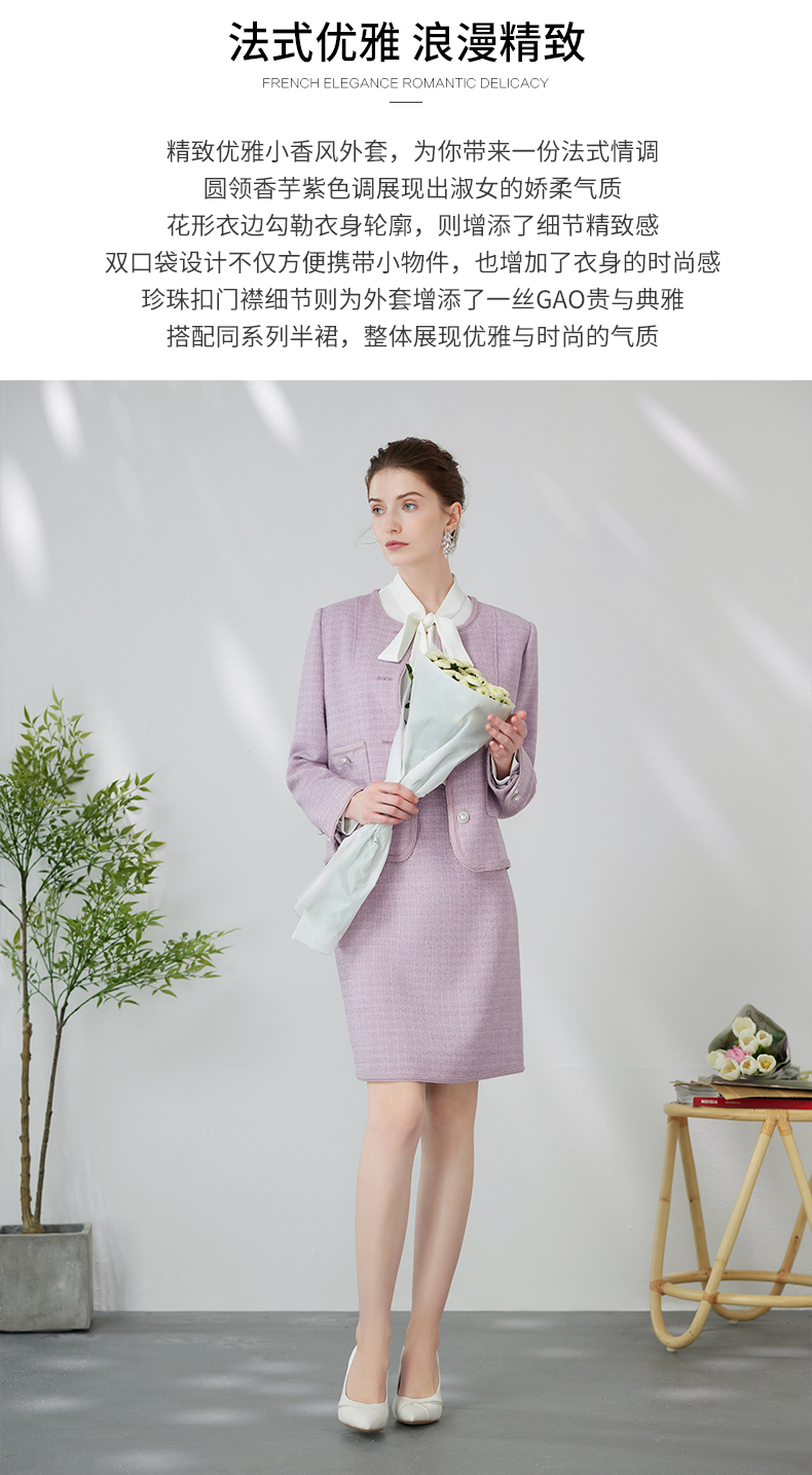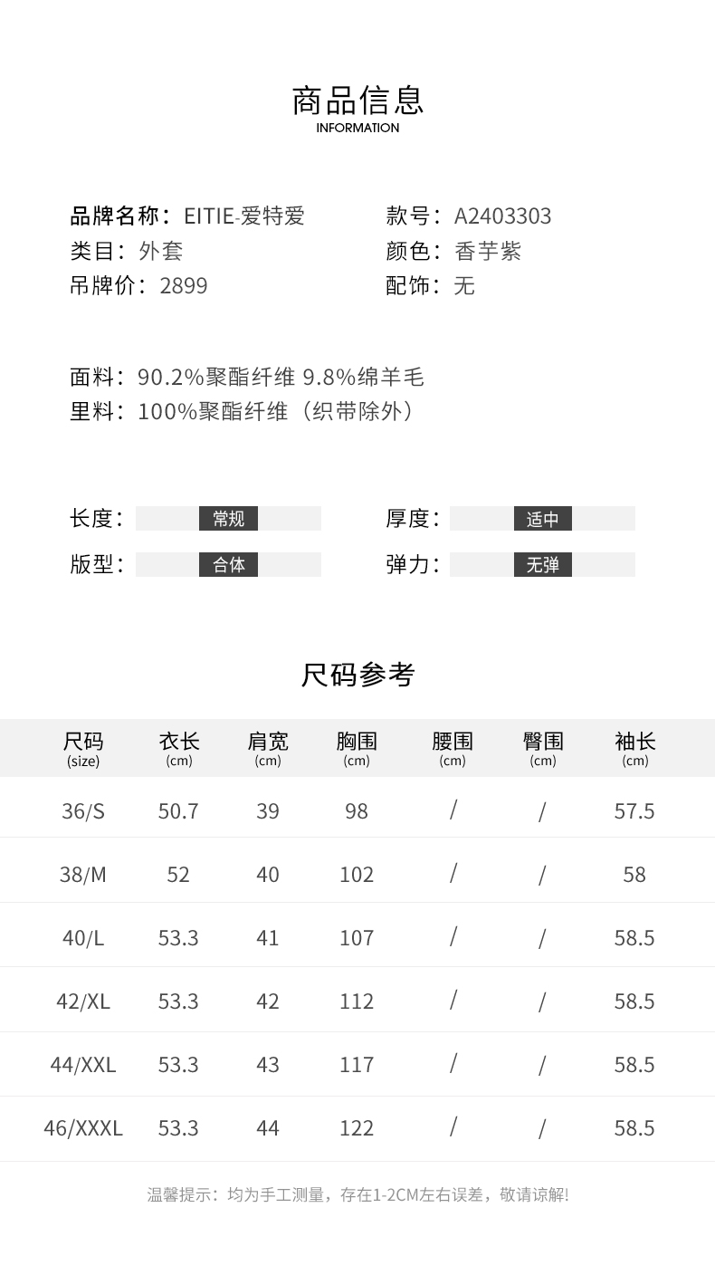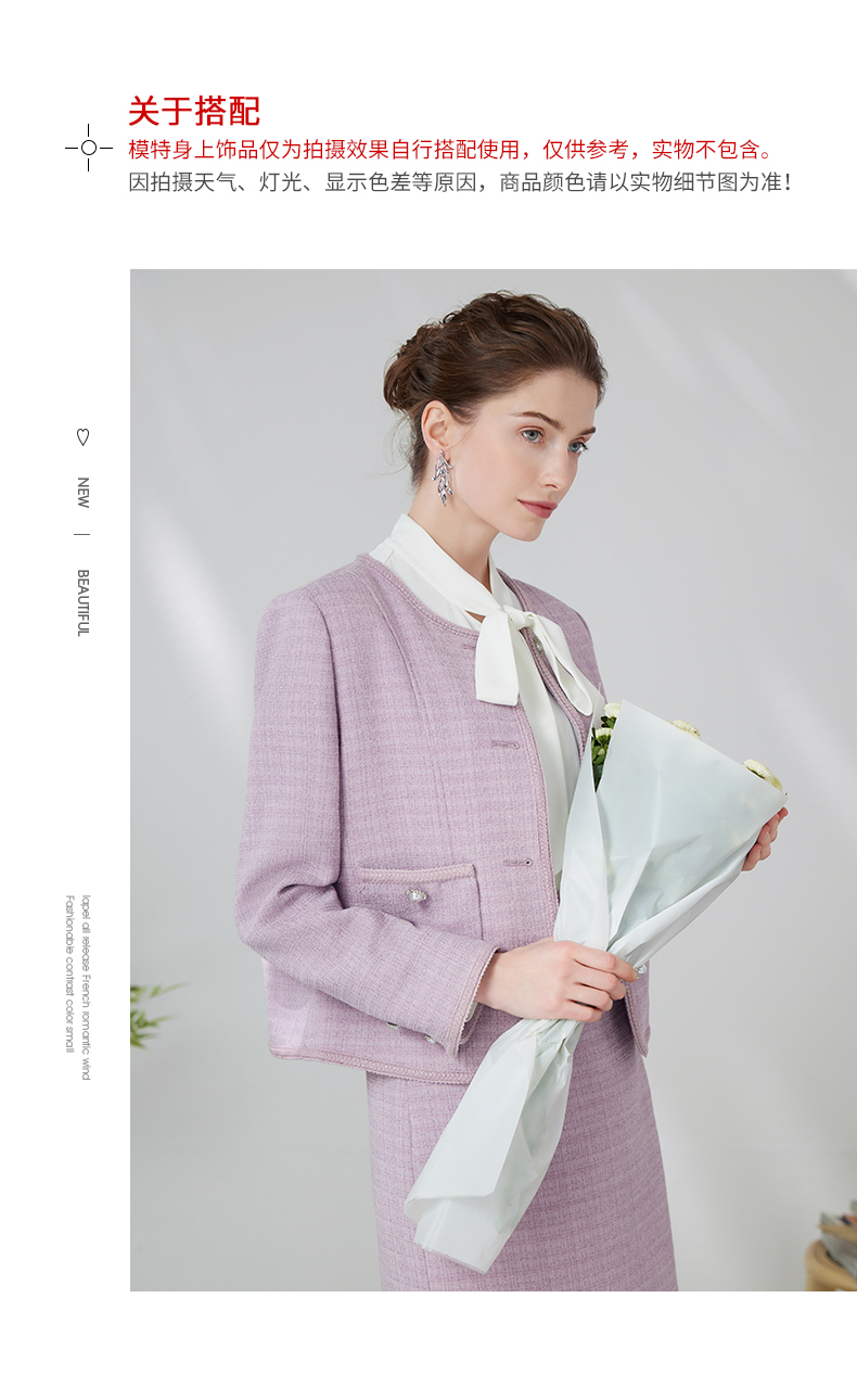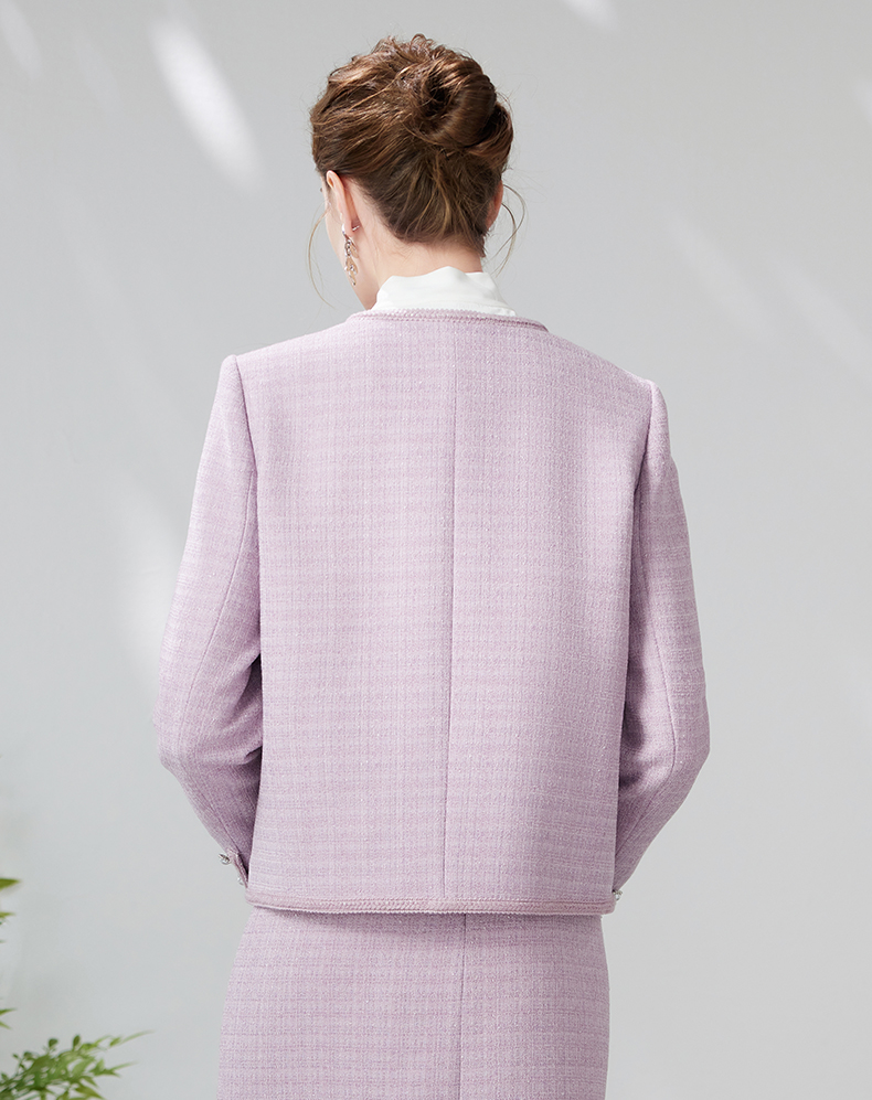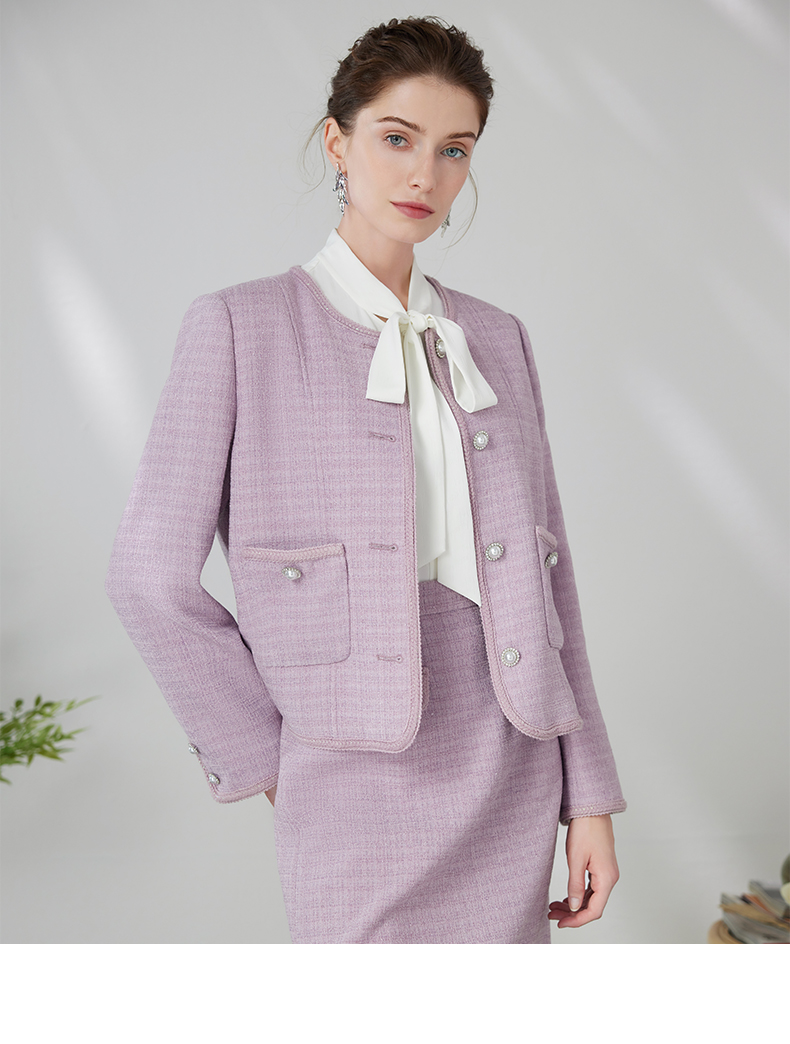 EITIE爱特爱气质优雅经典复古香风浅紫色温柔百搭短外套24春新款A2403303