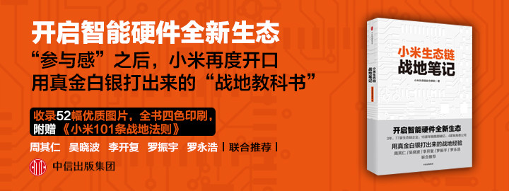 ◆3年时间,小米硬件生态大布局,77家生态链企业,30家发布产品,超百亿年收入,《小米生态链战地笔记》将全面记录小米野蛮成长的3年