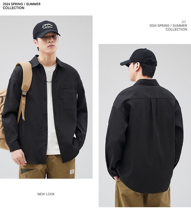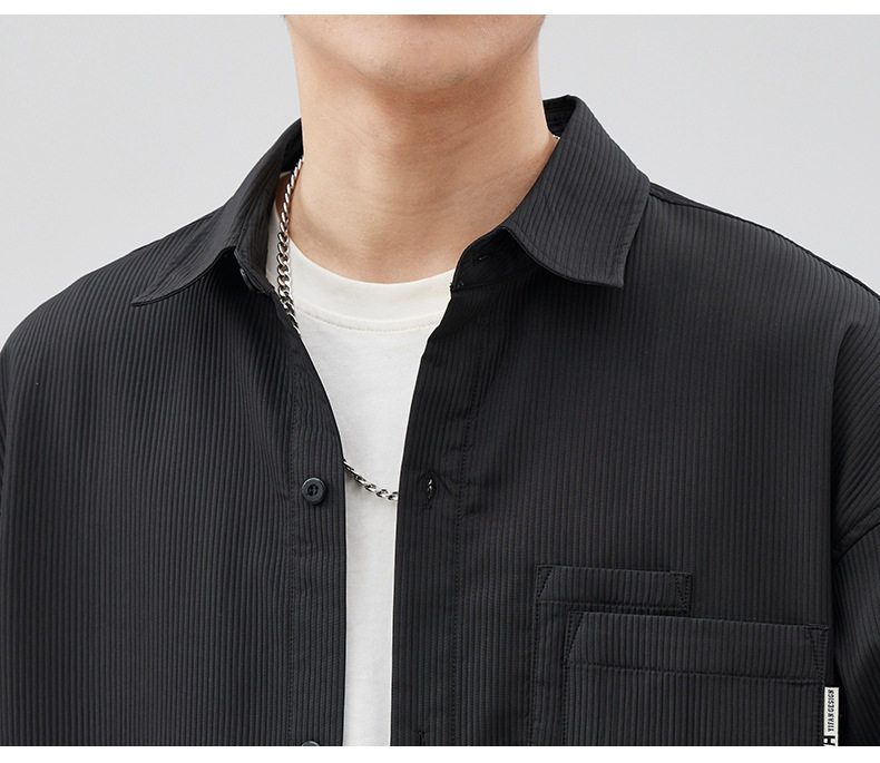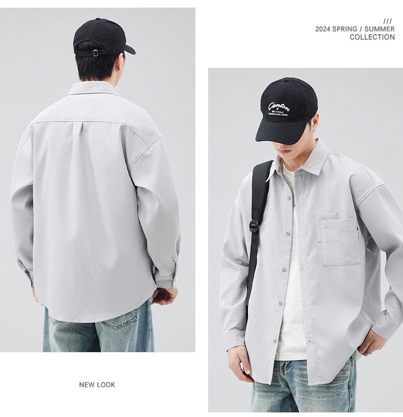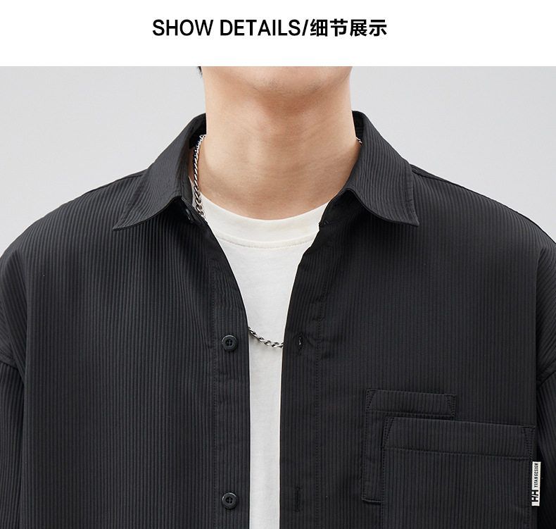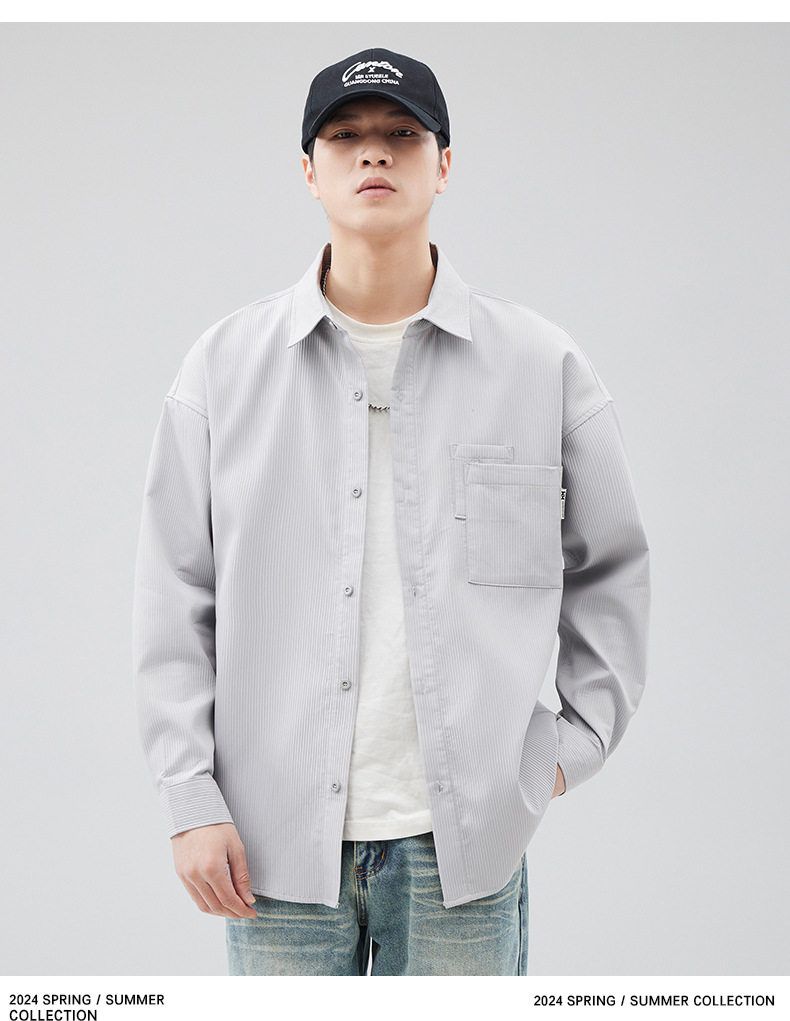 衬衫韩版男装休闲衬衣春季翻领外穿薄款潮条纹长袖衫 AY-D8507【AY-8507】
