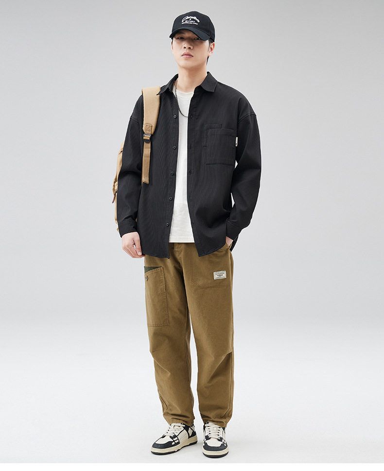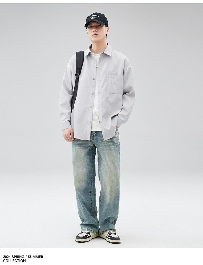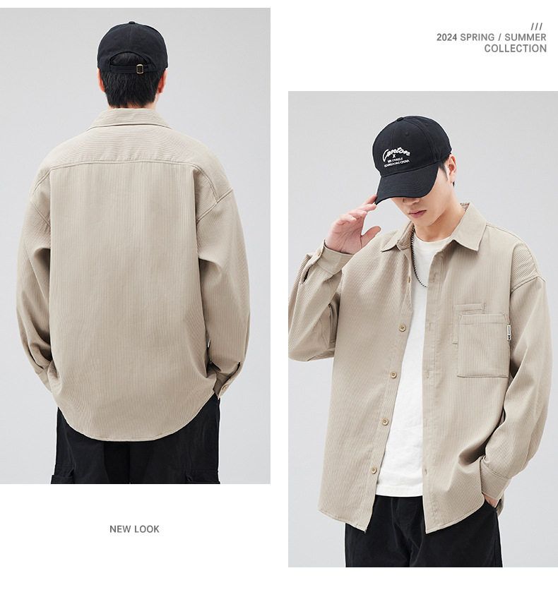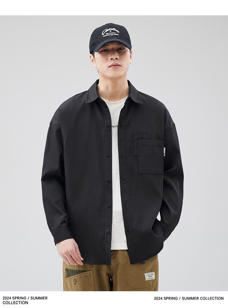 衬衫韩版男装休闲衬衣春季翻领外穿薄款潮条纹长袖衫 AY-D8507【AY-8507】