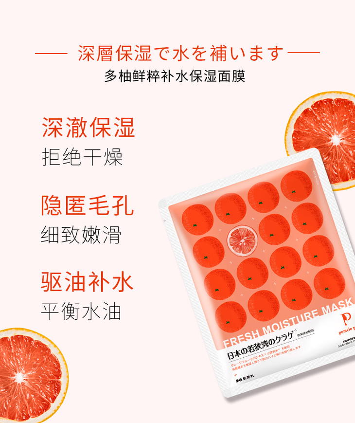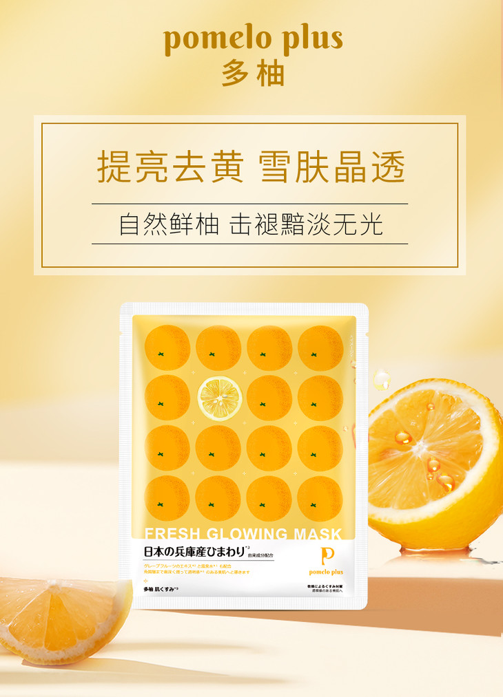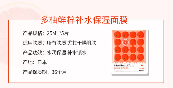 【好礼推荐】25ml*5多柚鲜粹补水保湿面膜 天然柚子 敷出素颜水光肌