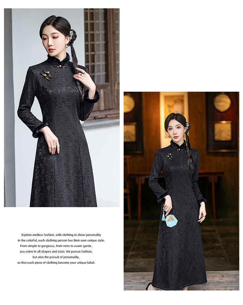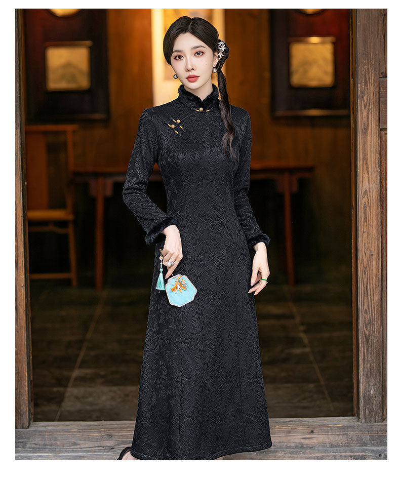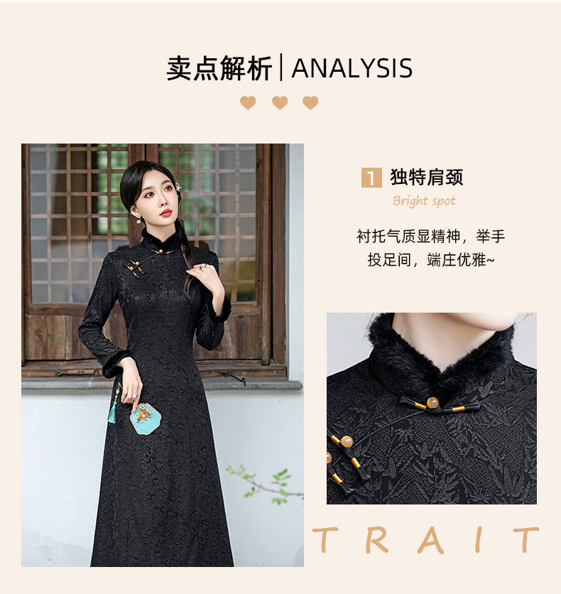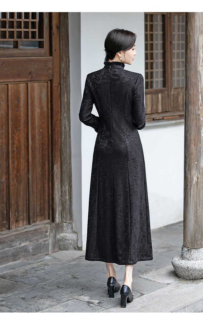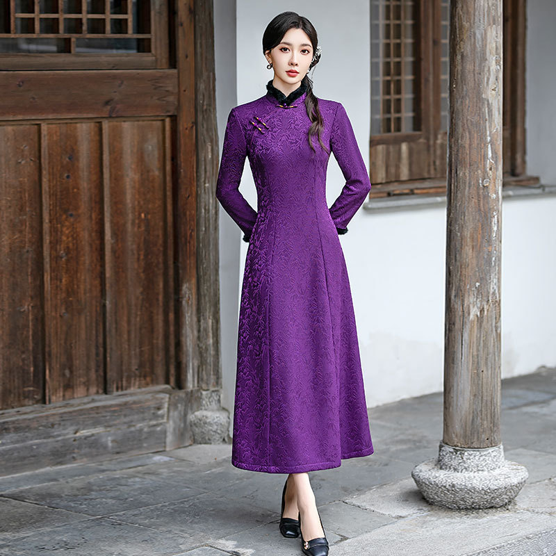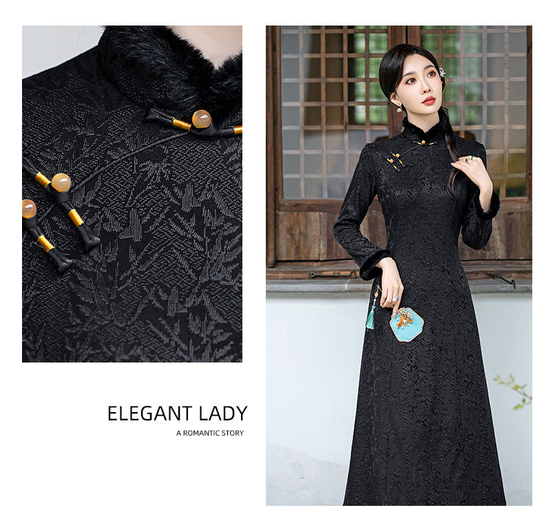SYG-110秋季新款新中式国风连衣裙中长款盘扣高端收腰裙子