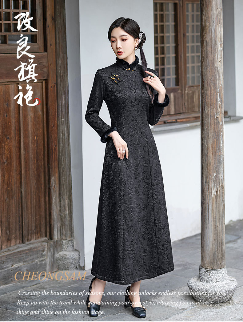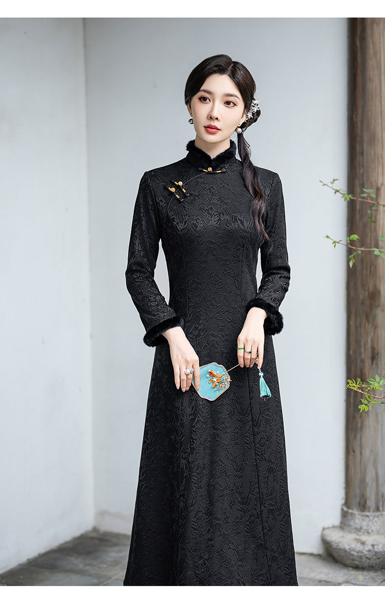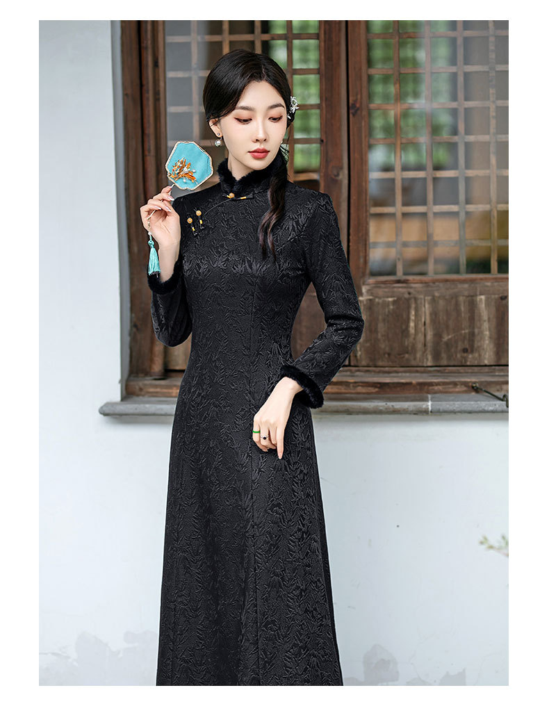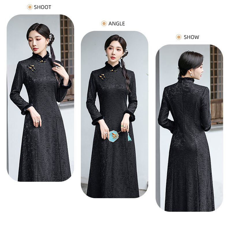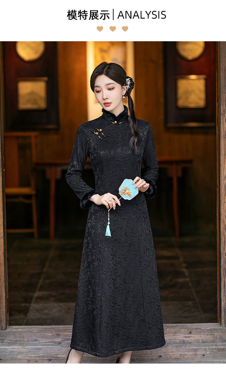SYG-110秋季新款新中式国风连衣裙中长款盘扣高端收腰裙子