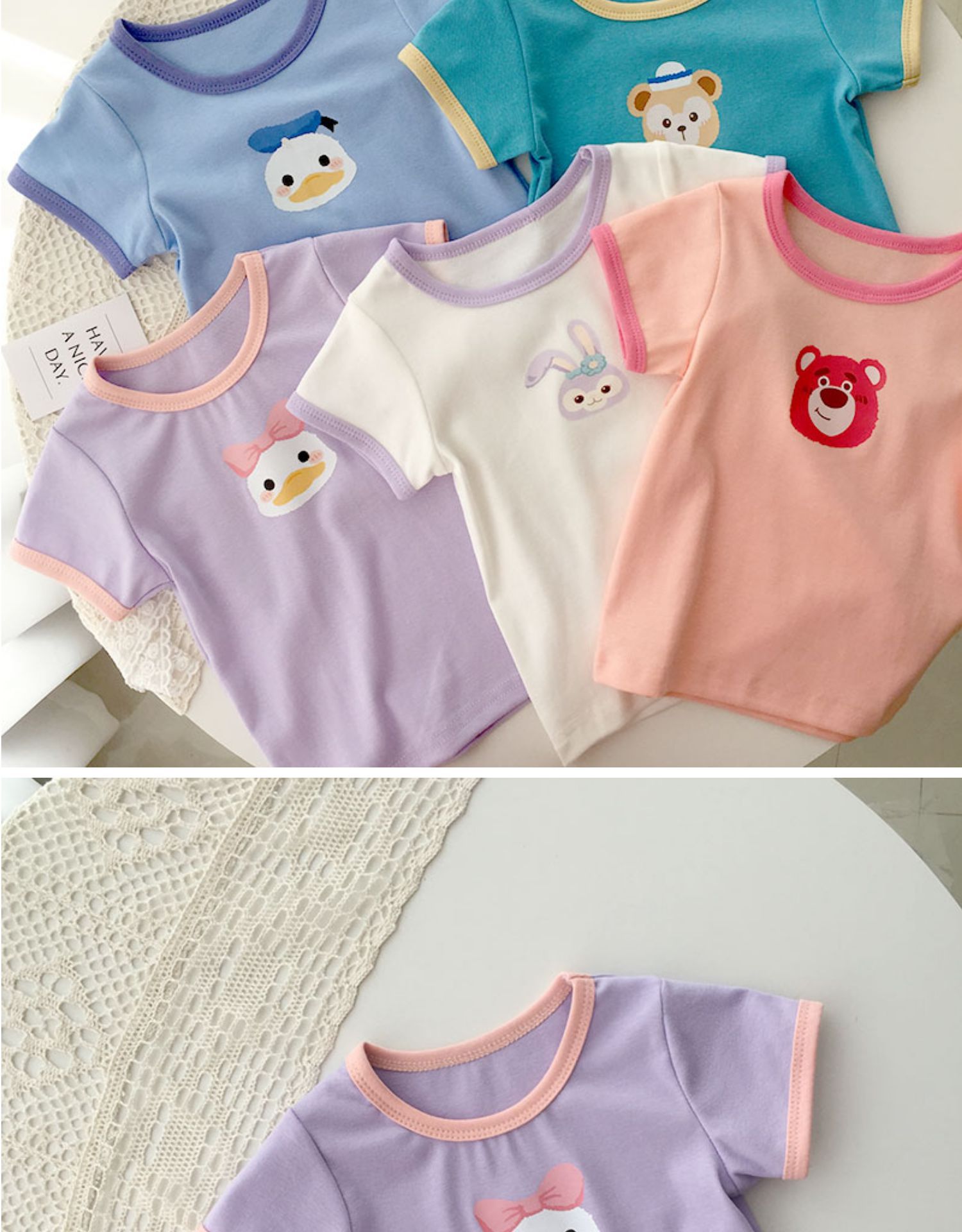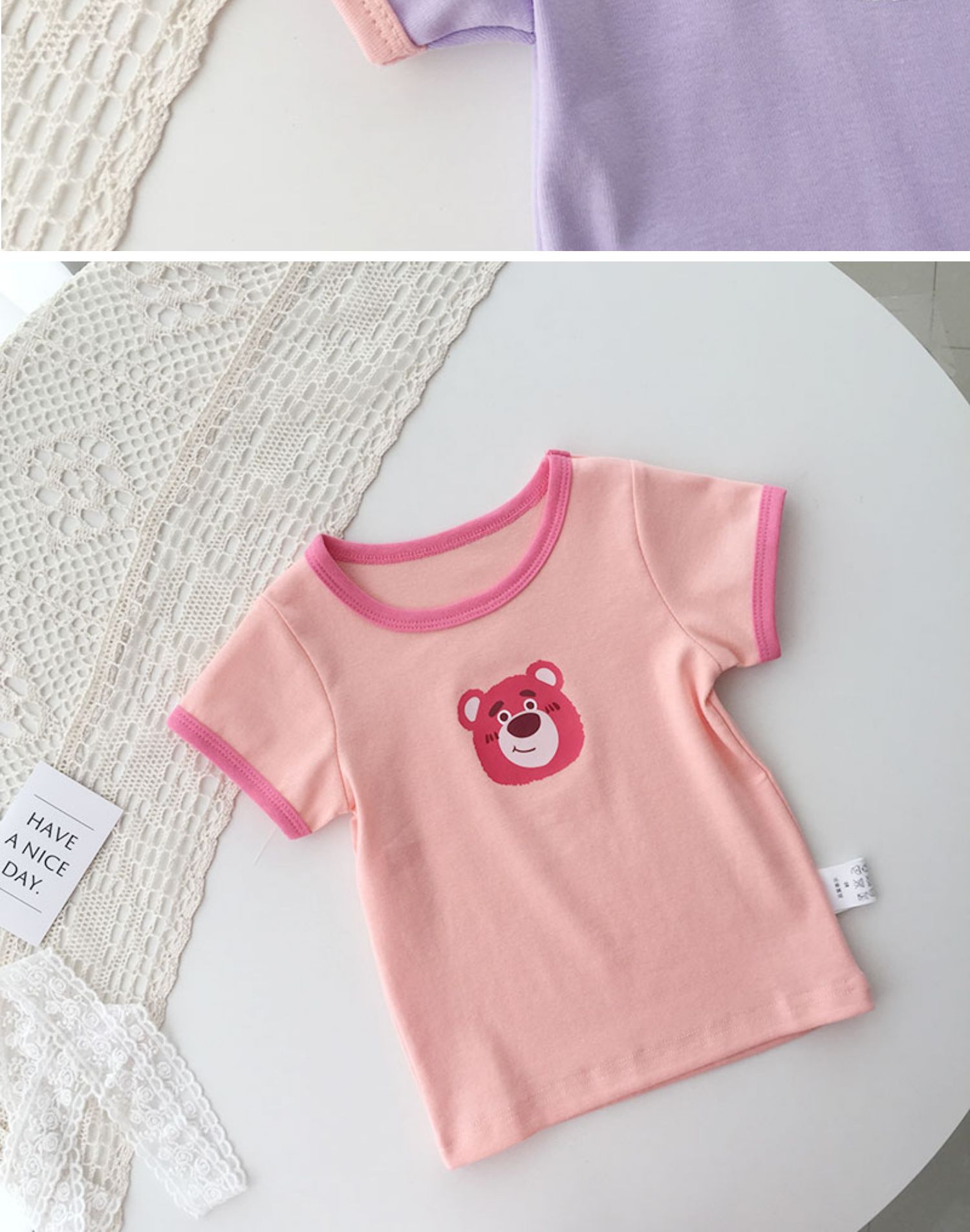 【捡漏价39.9元/2件】可爱简约女童短袖T恤,舒适透气童趣十足,圆领设计更显清爽,舒适柔软亲肤透气,童装小童上衣圆领夏季冰丝卡通儿童画半袖衫sh