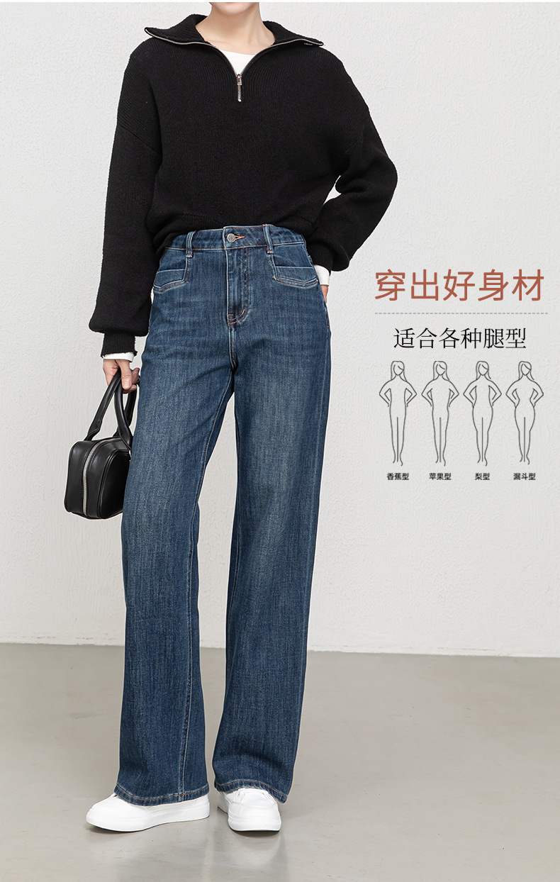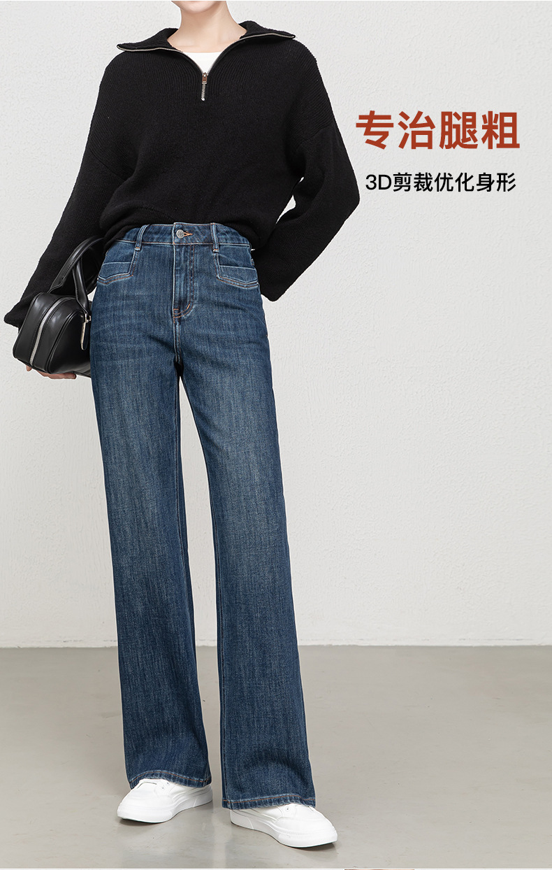 「高货rg」全新升级【铂金会员183/天猫249/差价66】(51123)洛诗琳气质高腰牛仔长裤2025秋季宽松四面弹直筒九分裤