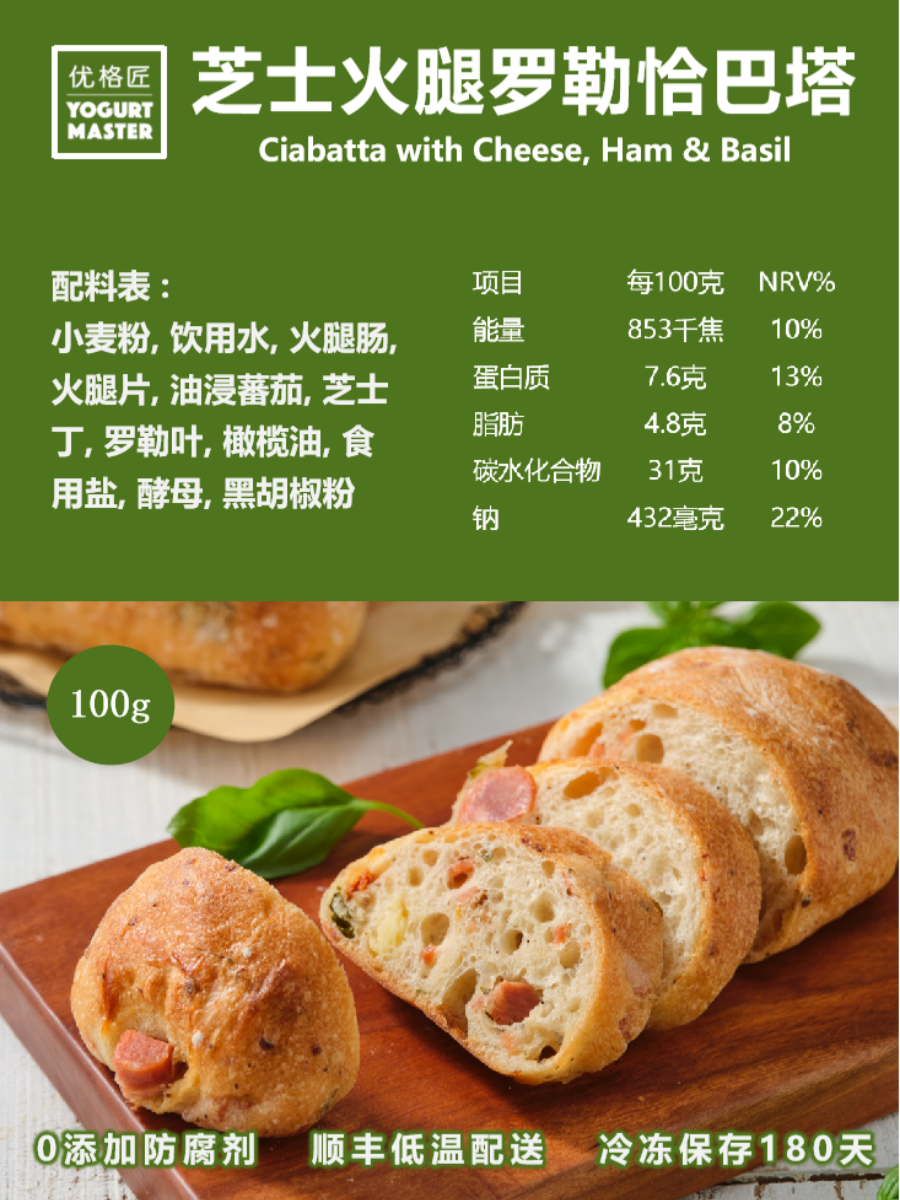 芝士火腿罗勒恰巴塔 Ciabatta with Cheese, Ham & Basil