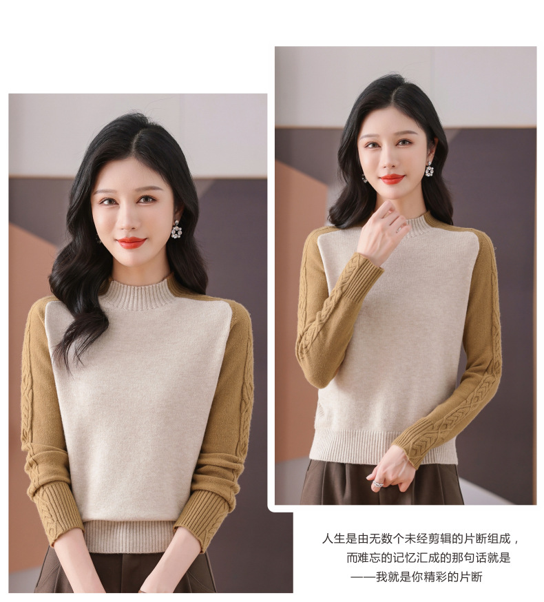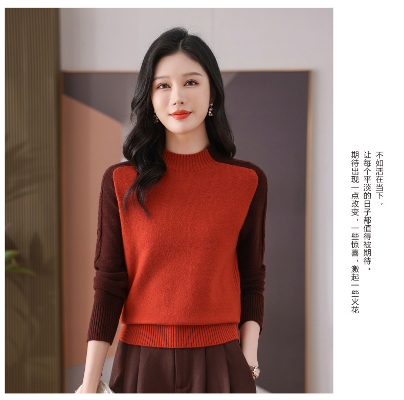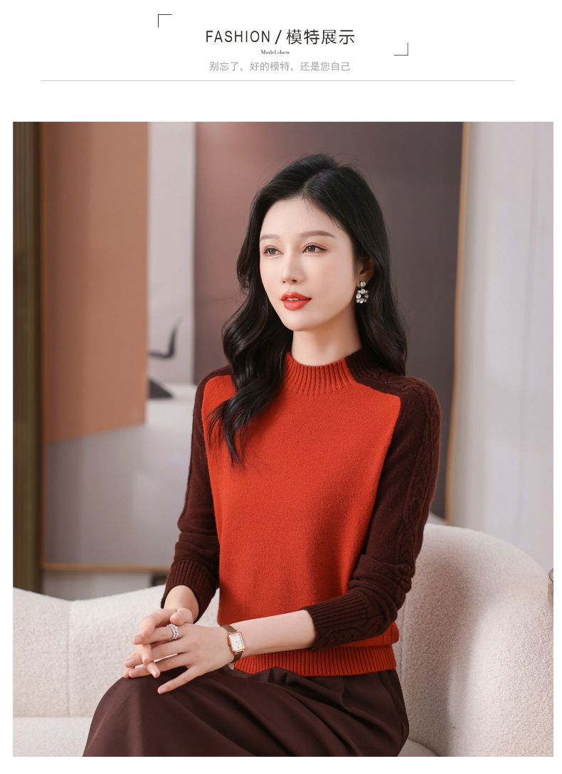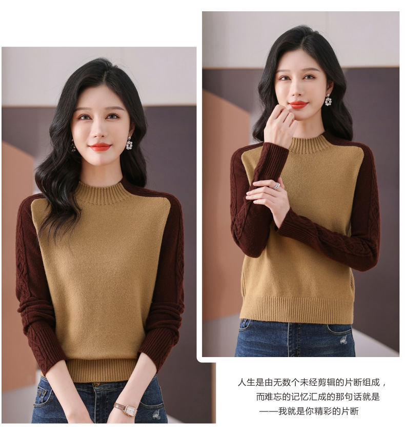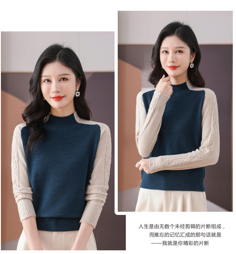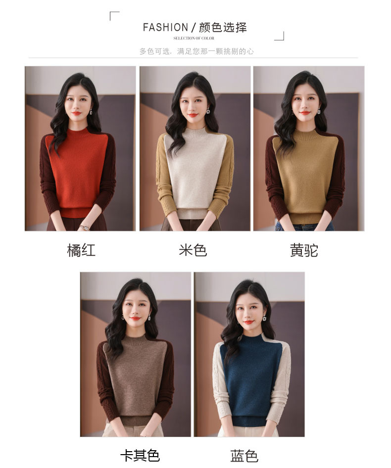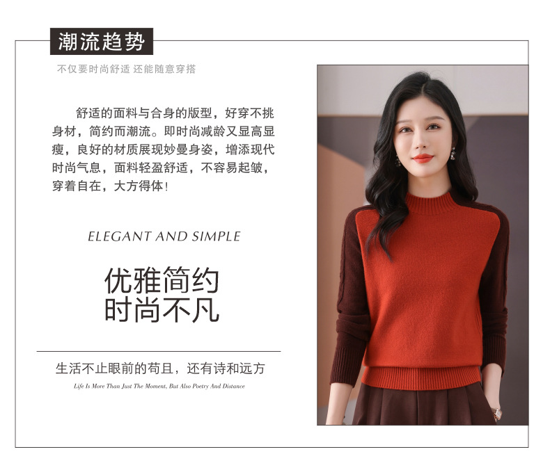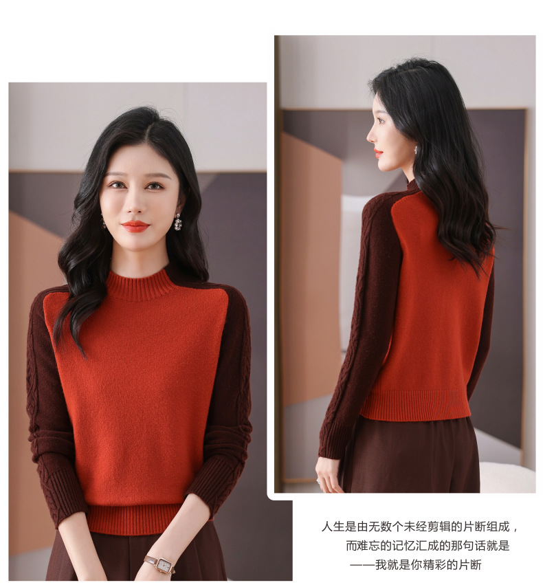 CC-101-59057半高领拼色毛衣女士秋冬2024新款时尚减龄内搭厚款羊毛针织打底衫