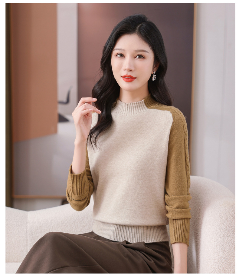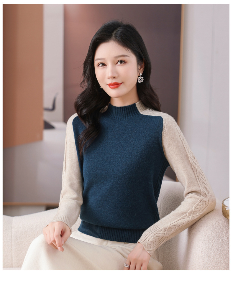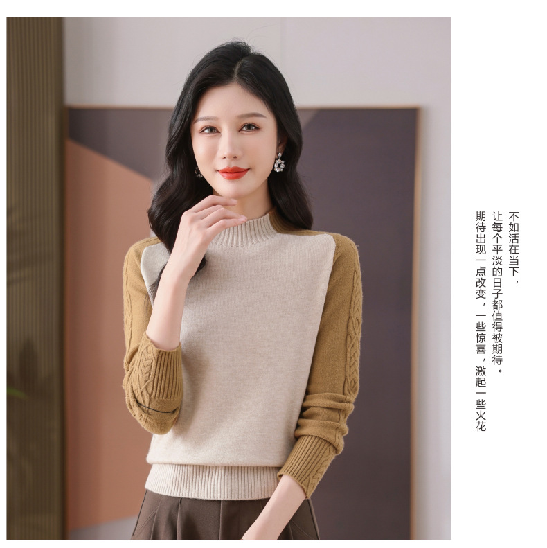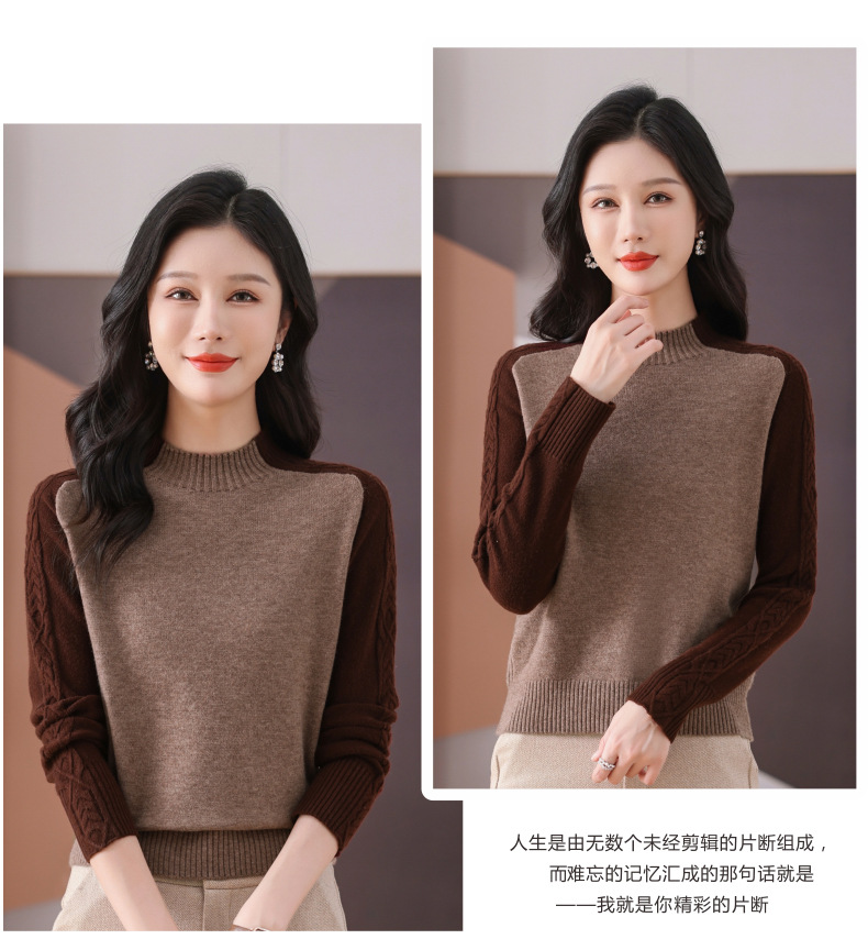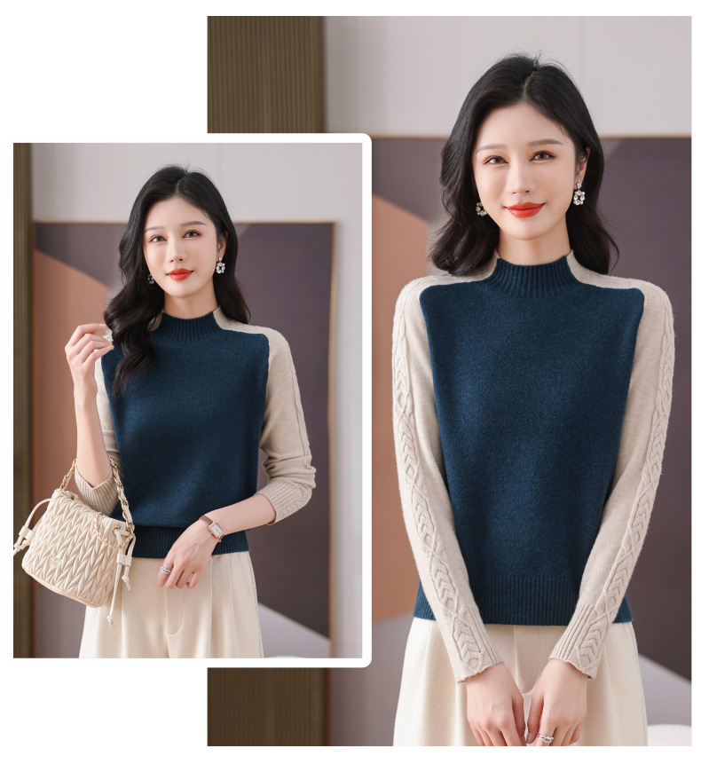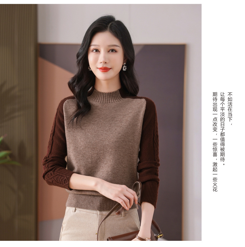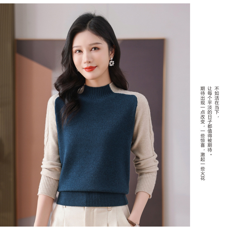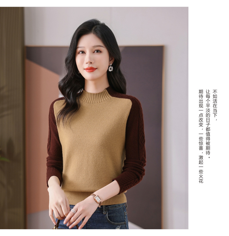 CC-101-59057半高领拼色毛衣女士秋冬2024新款时尚减龄内搭厚款羊毛针织打底衫