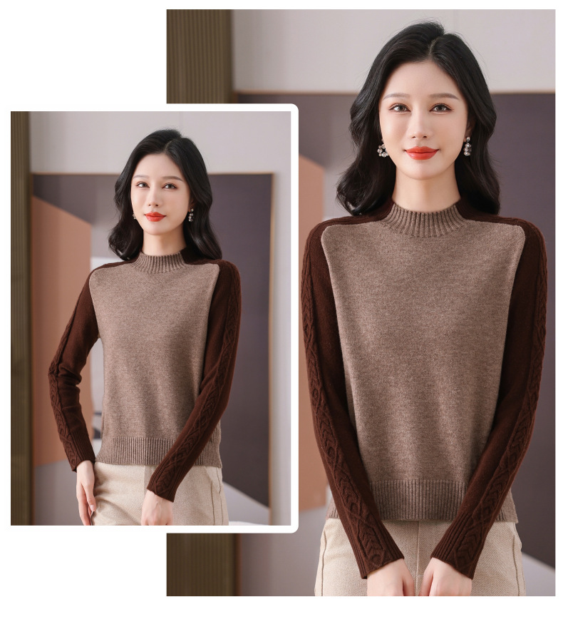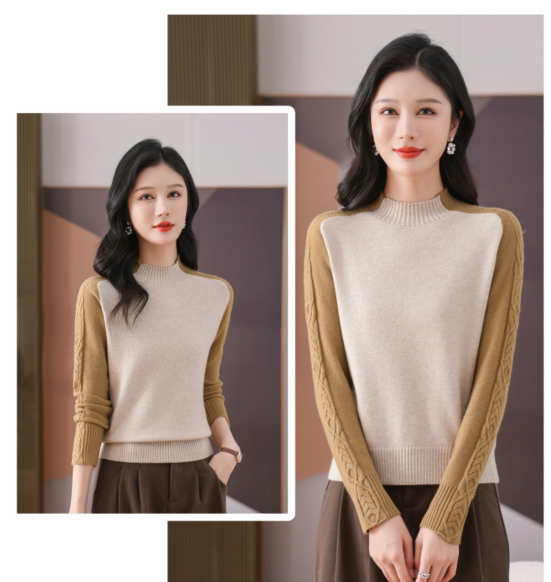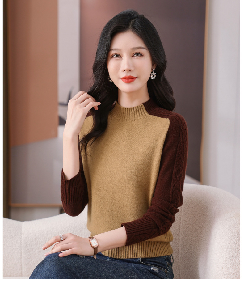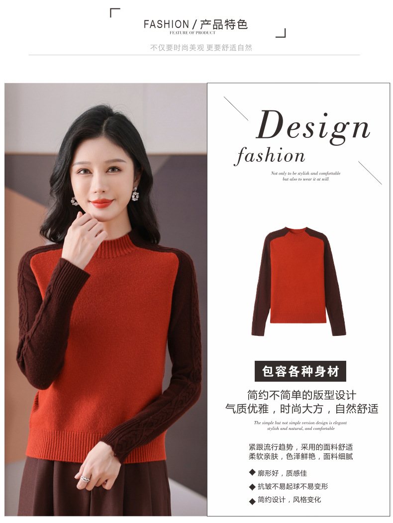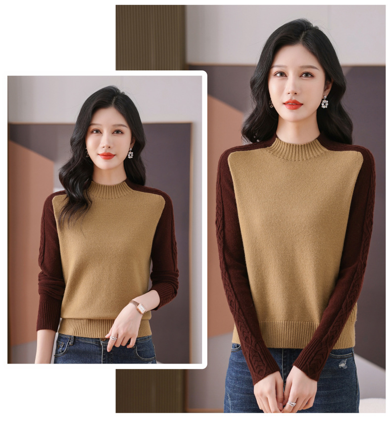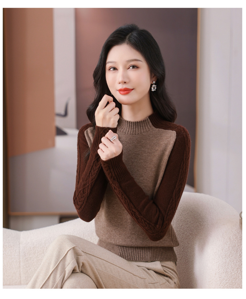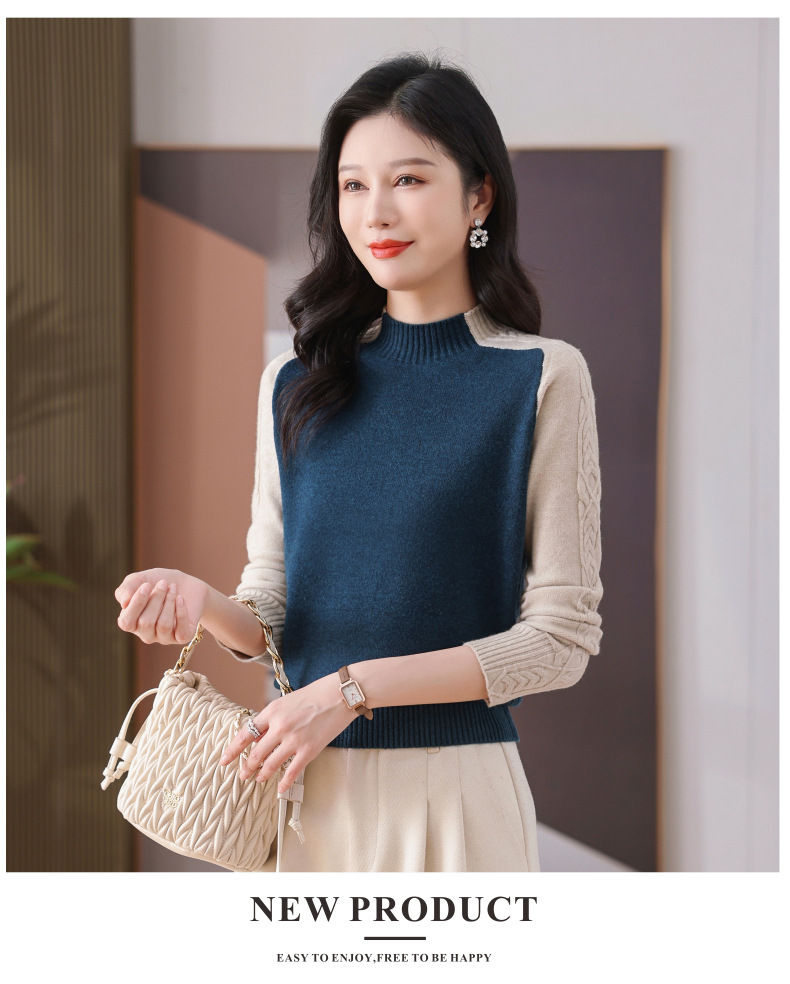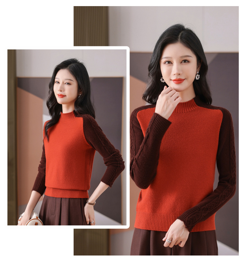 CC-101-59057半高领拼色毛衣女士秋冬2024新款时尚减龄内搭厚款羊毛针织打底衫
