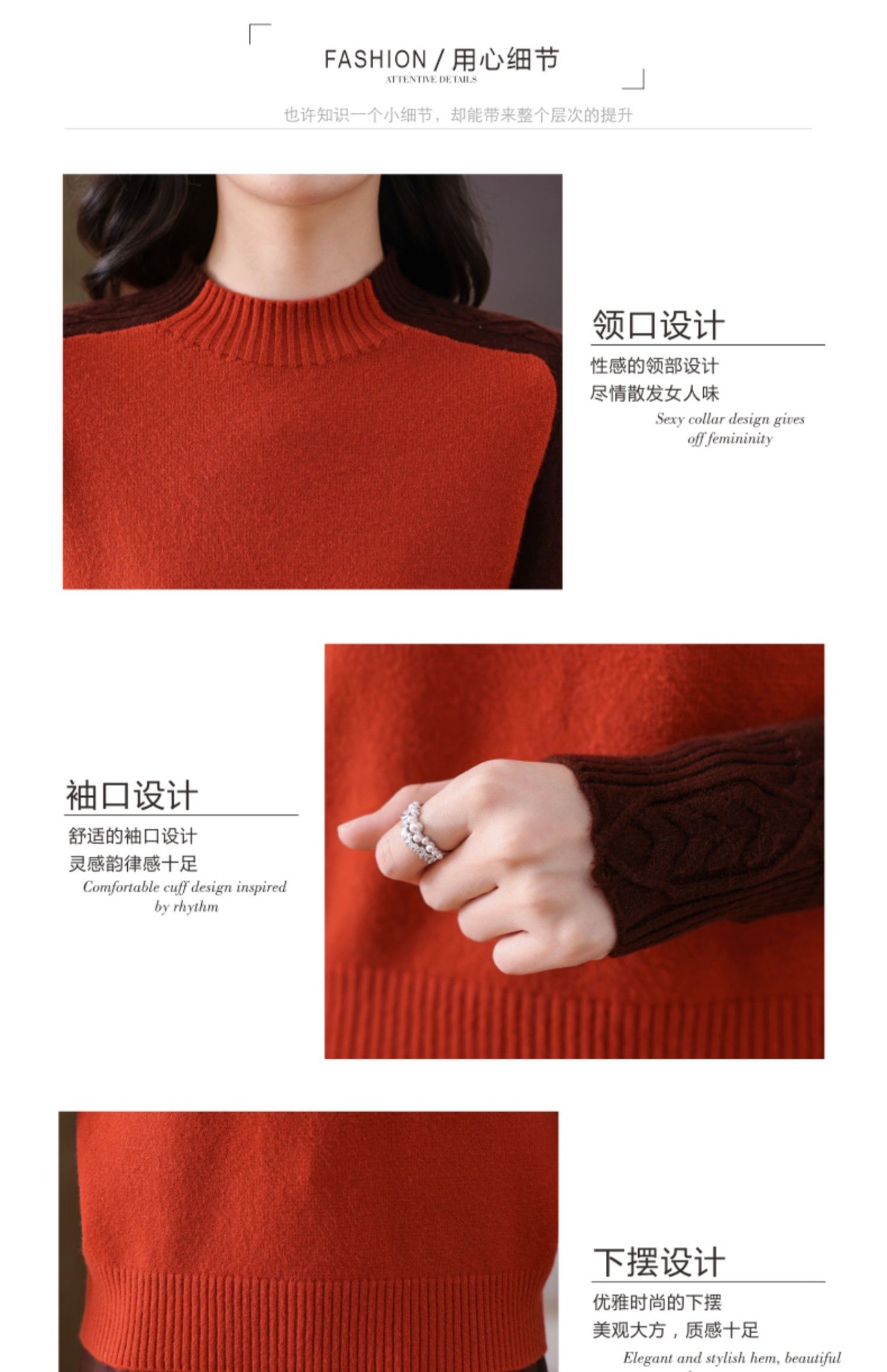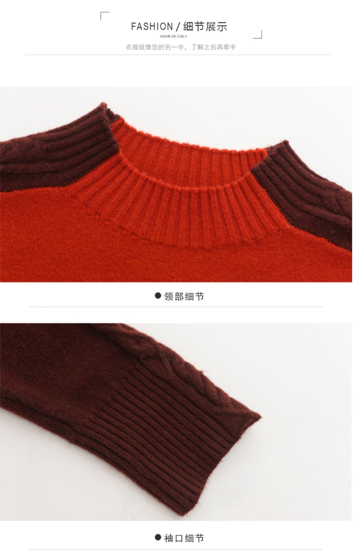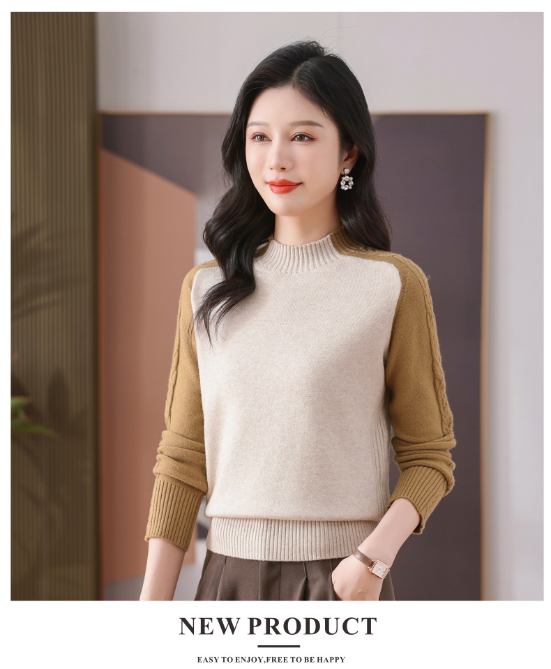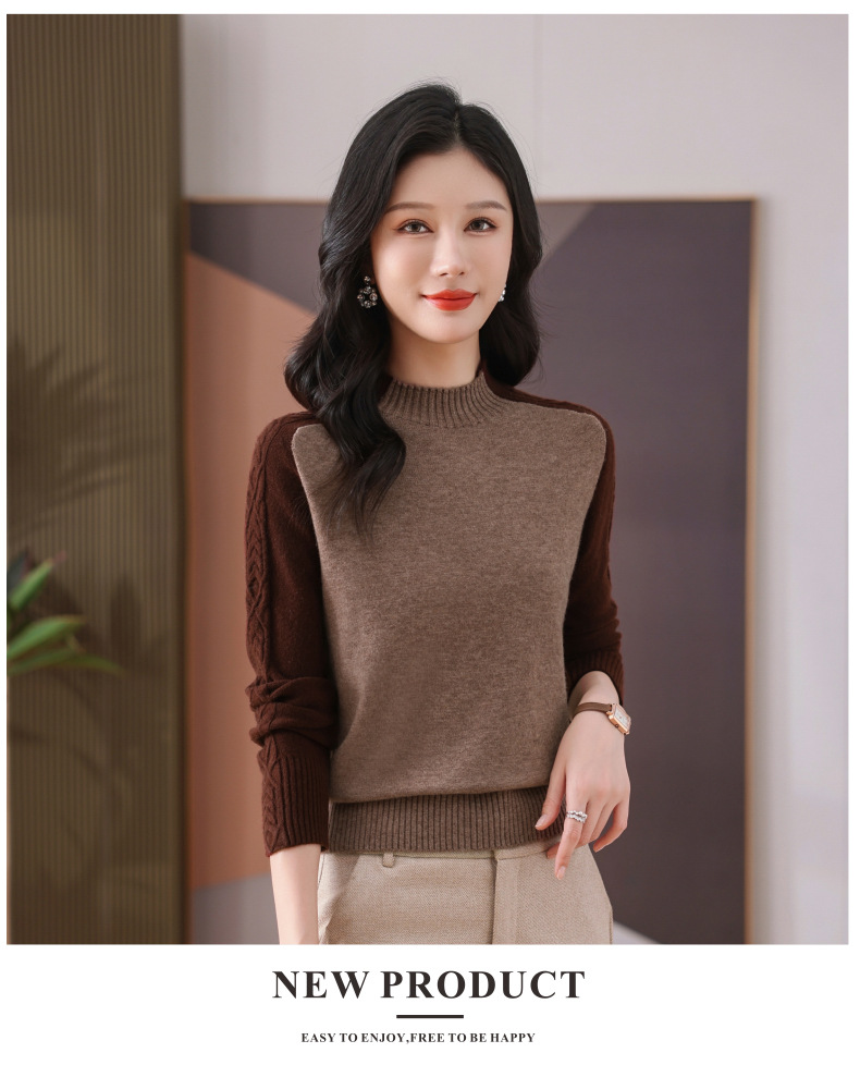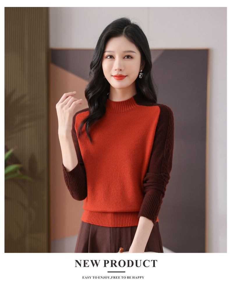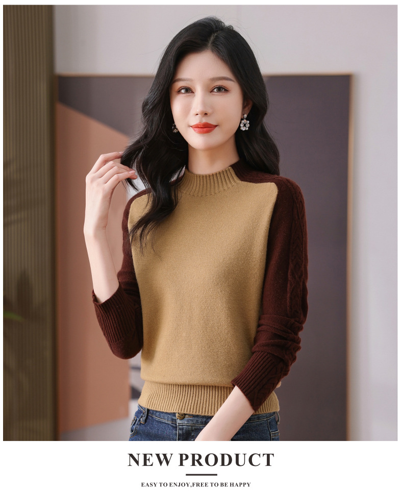 CC-101-59057半高领拼色毛衣女士秋冬2024新款时尚减龄内搭厚款羊毛针织打底衫