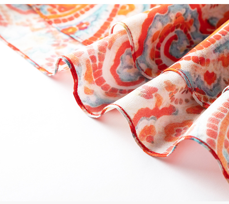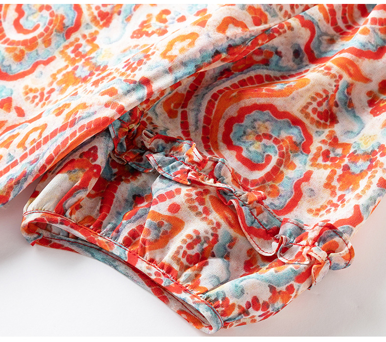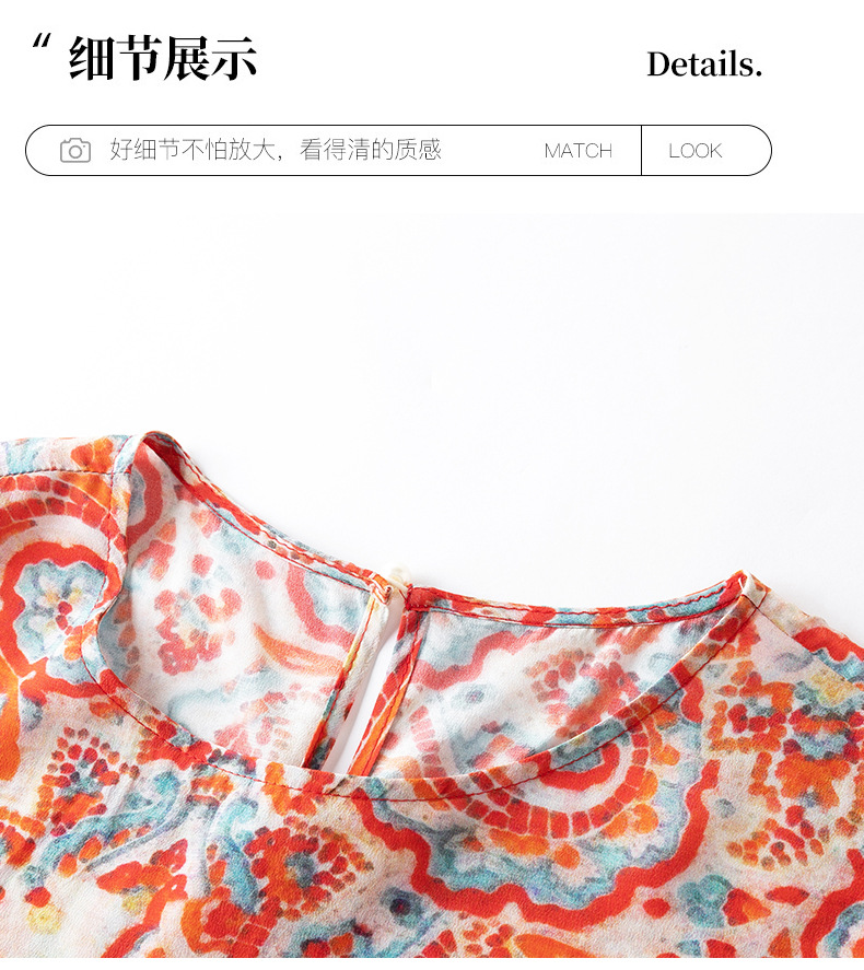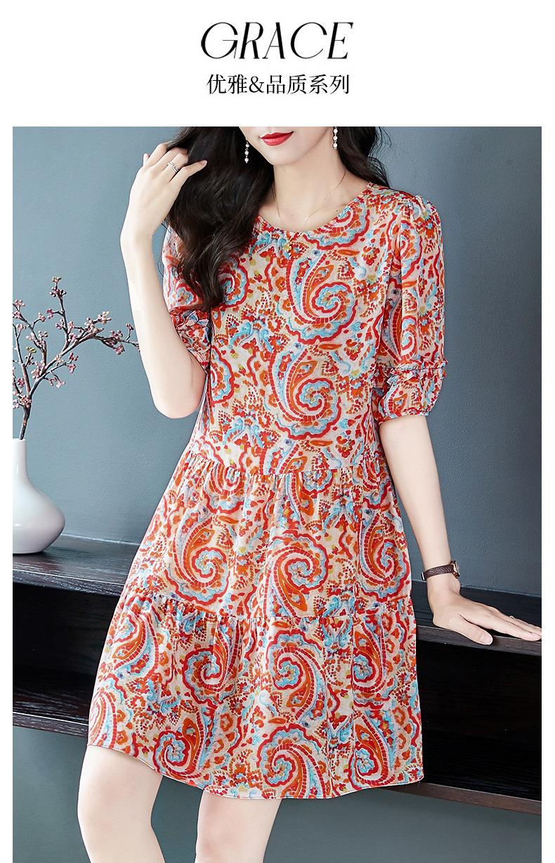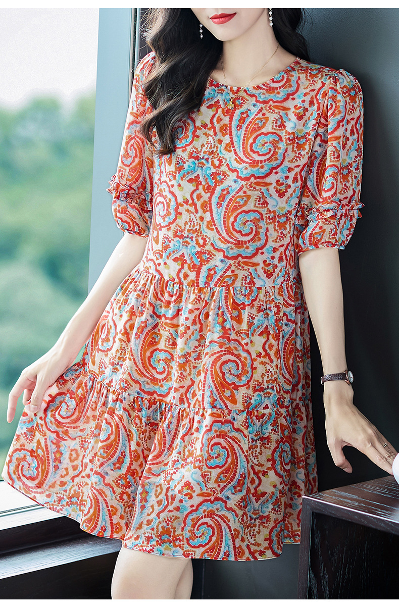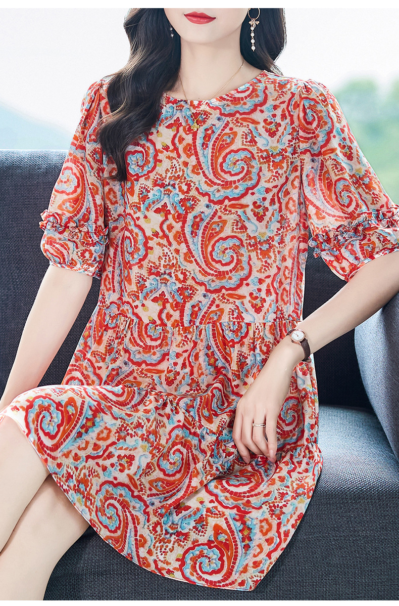 WWM69393 夏季新款2026年红色腰果印花真丝桑蚕丝小个子连衣裙