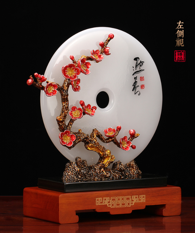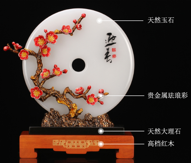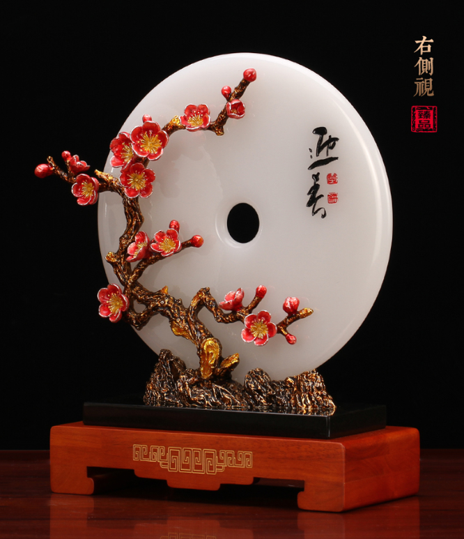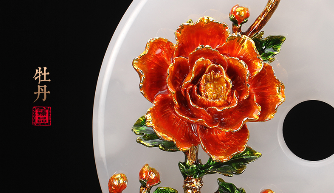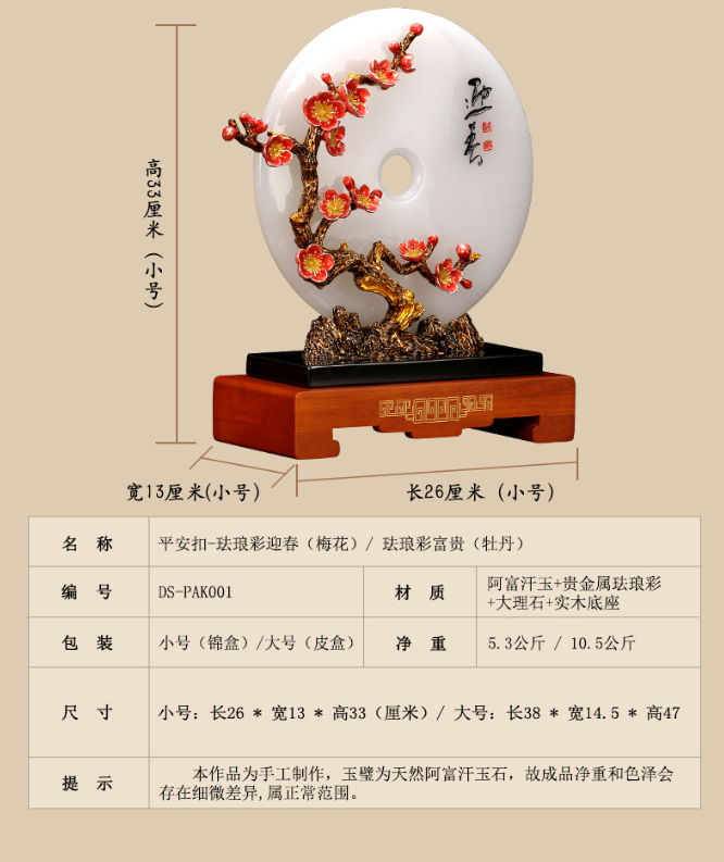 【彼达思】阿富汗白玉石富贵牡丹平安扣摆件