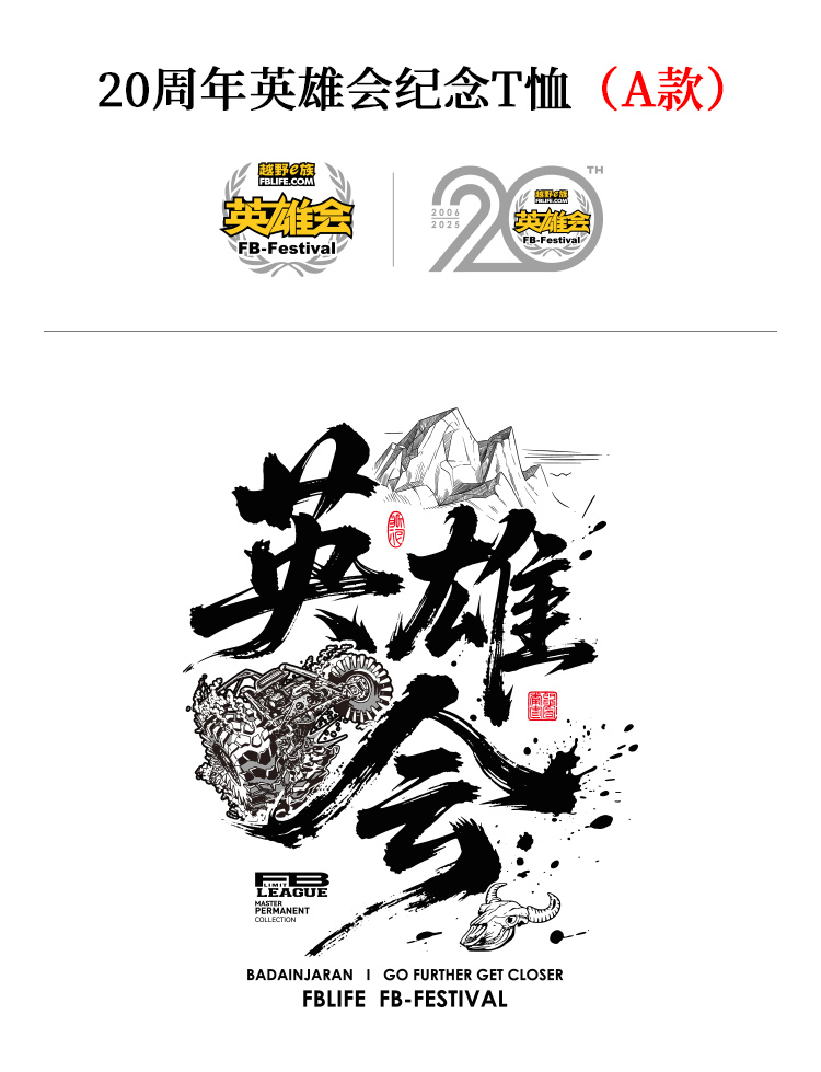 20周年阿拉善英雄会纪念短袖T恤A款毛笔字设计男女团队e族队服装 NMT2229