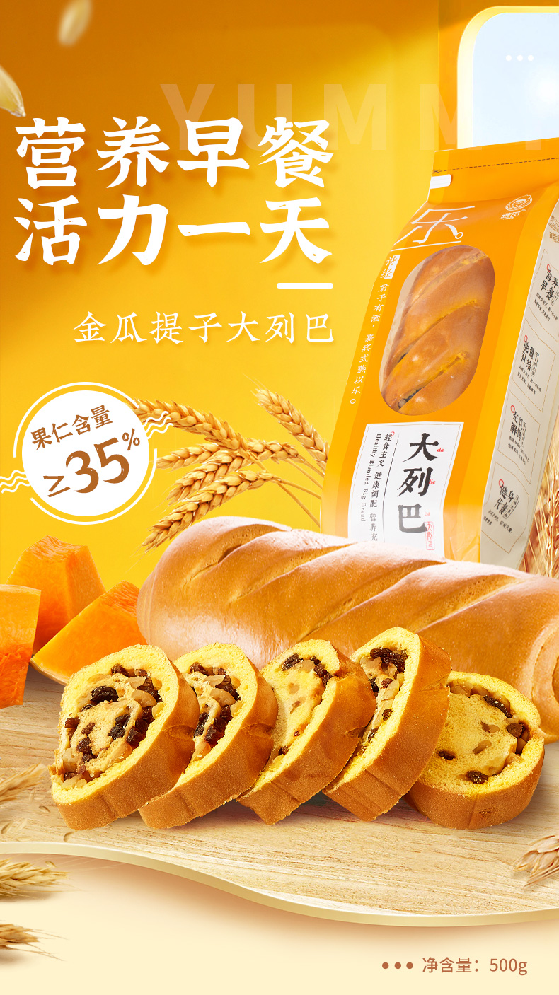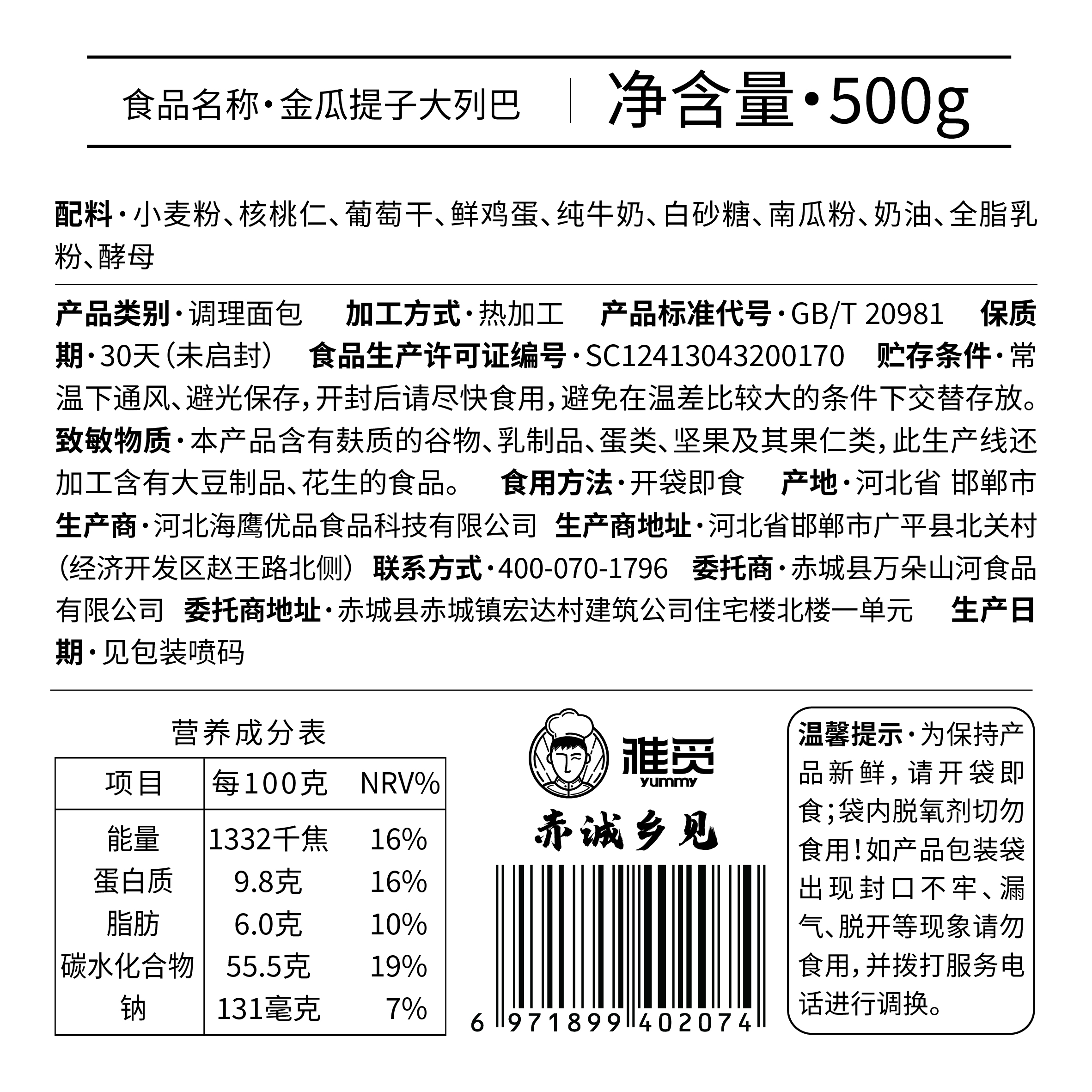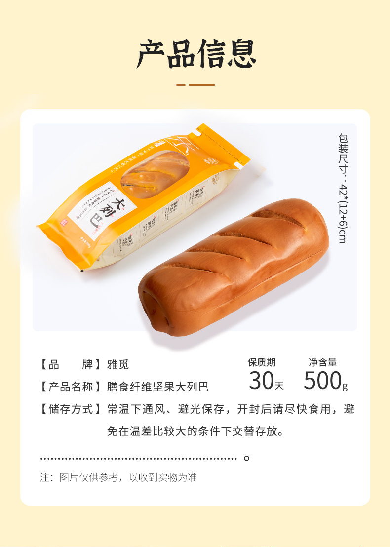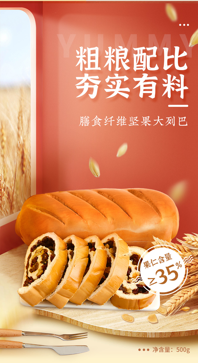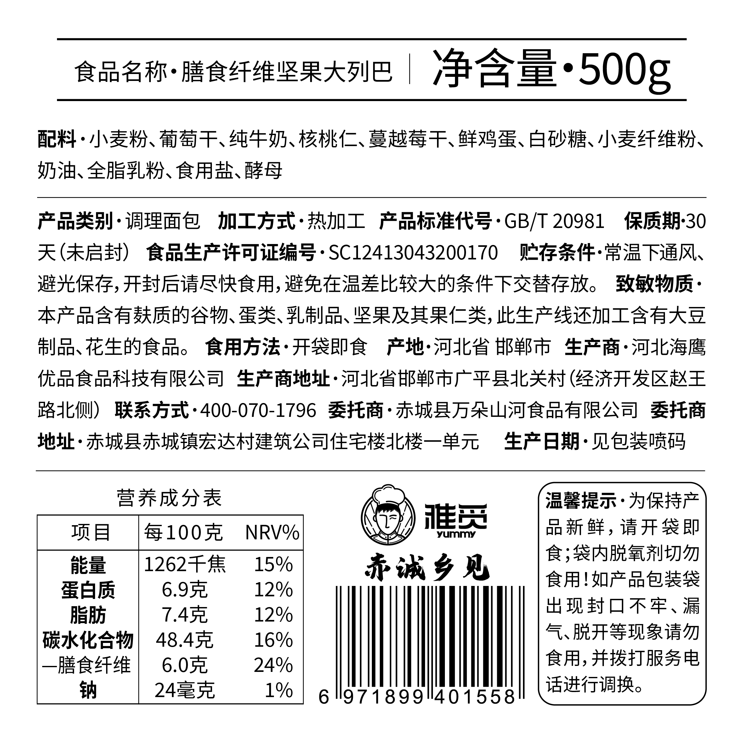雅觅 膳食纤维大列巴500g 早餐代餐糕点零食