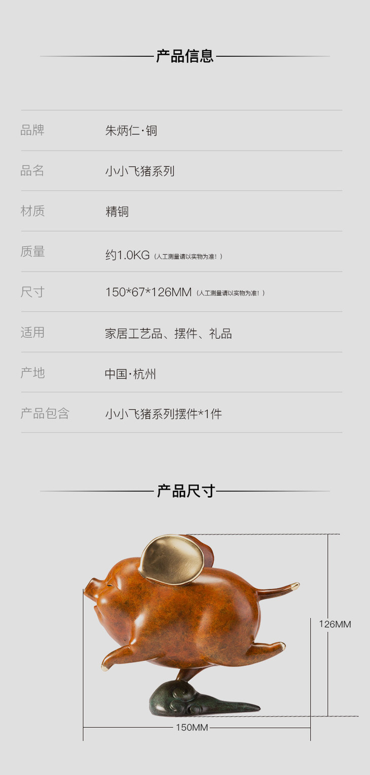 朱炳仁铜 小飞猪 猪年生肖 家居 家居 铜摆件 铜工艺品 非遗