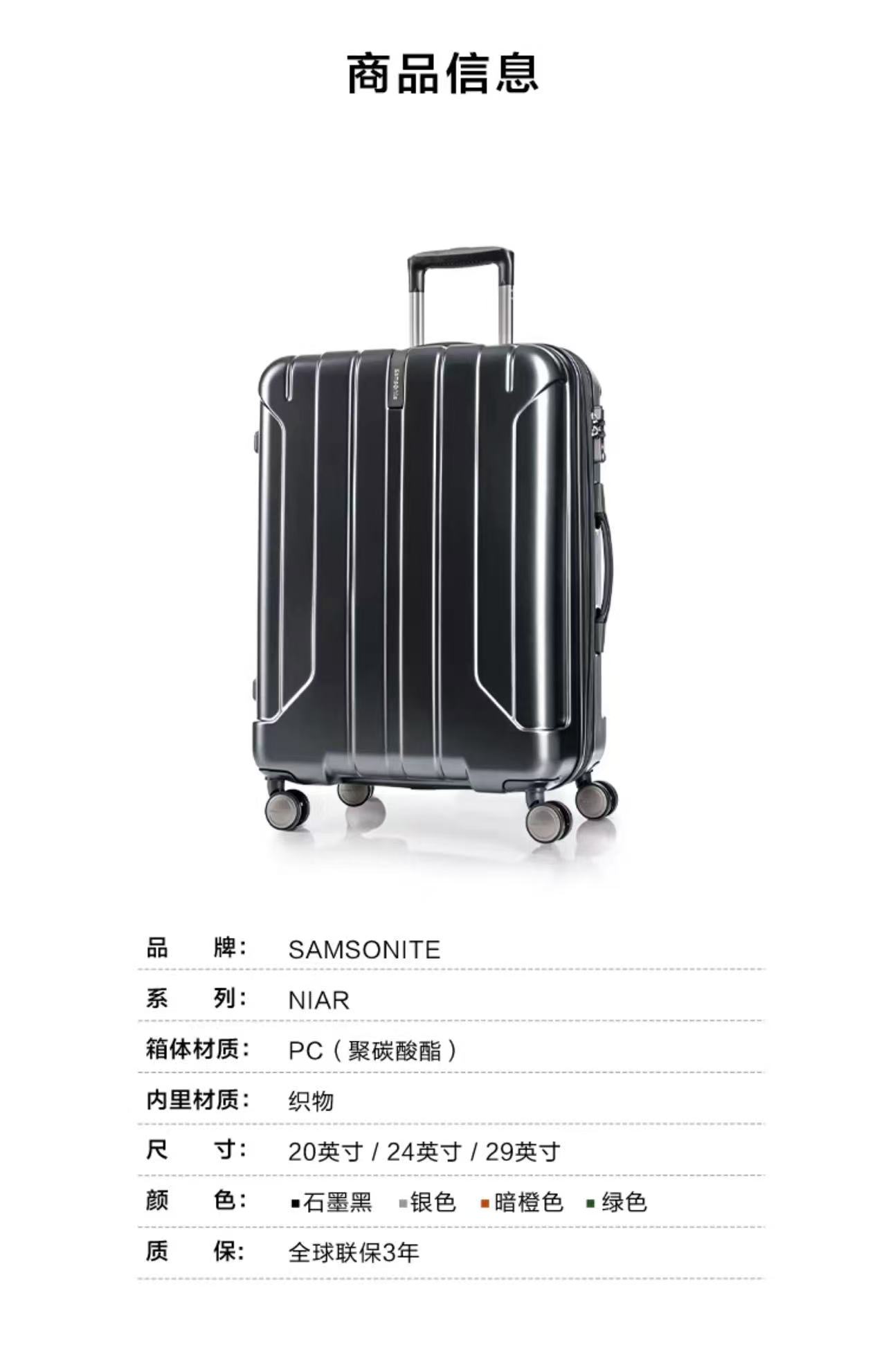 美国新秀丽拉杆箱24寸AY8*55002银色 行李箱