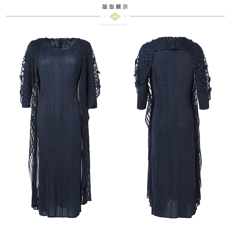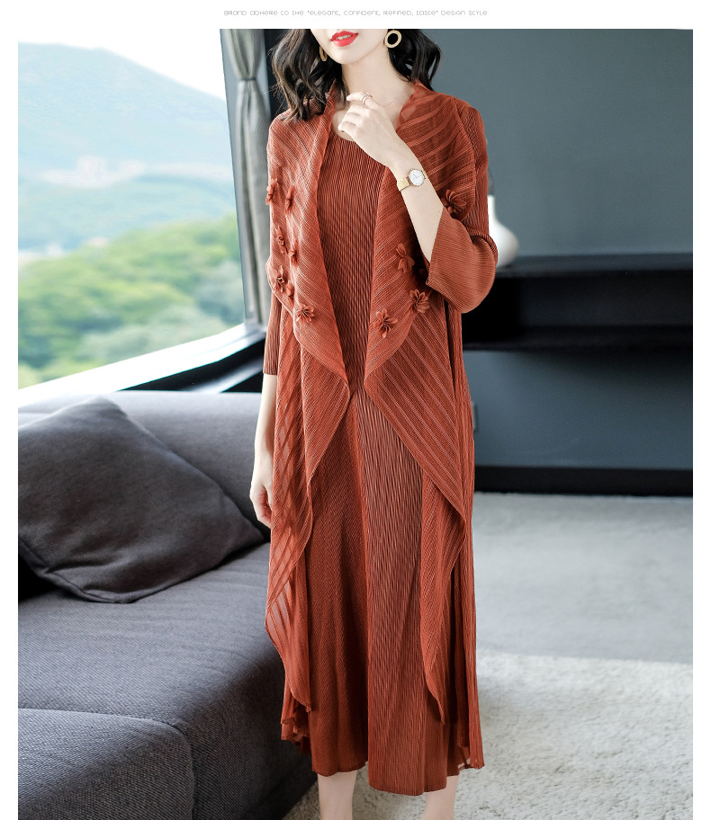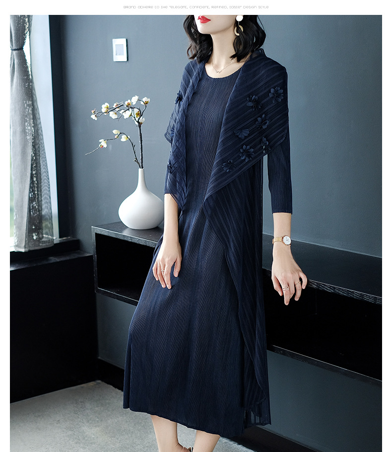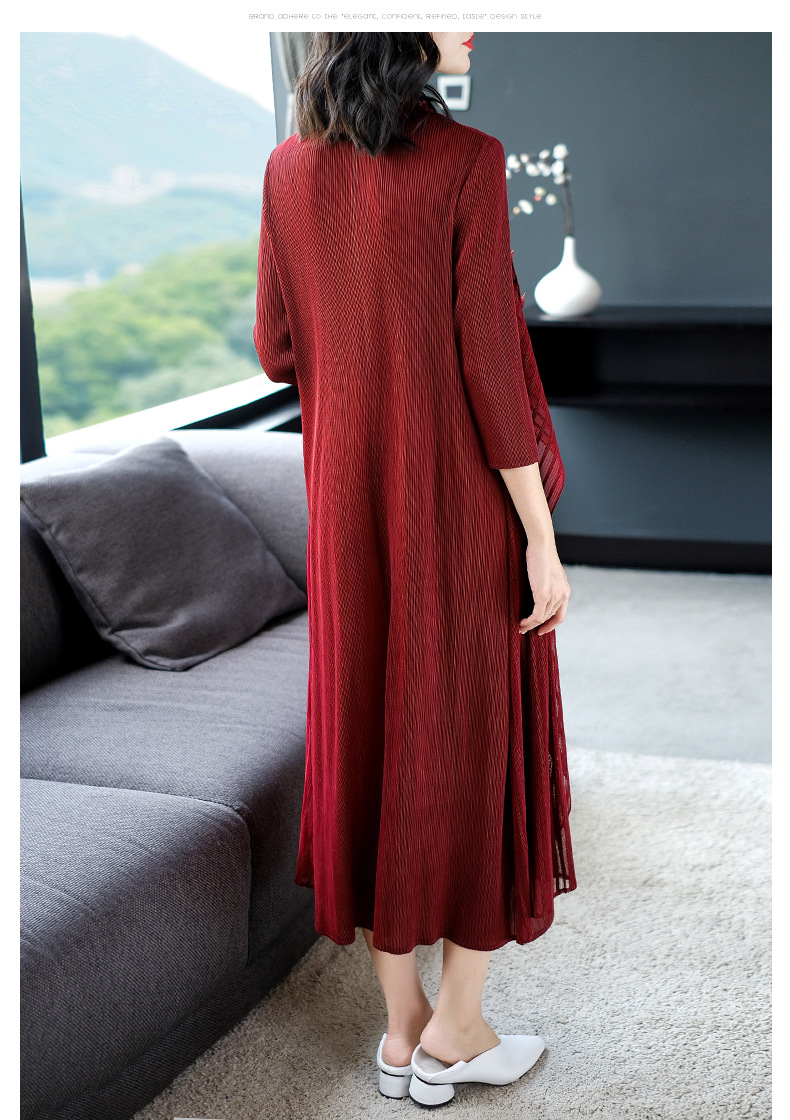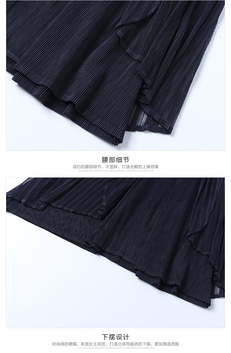 XSL-ZY-1005新款宽松中国风褶皱收腰大码修身显瘦假两件连衣裙