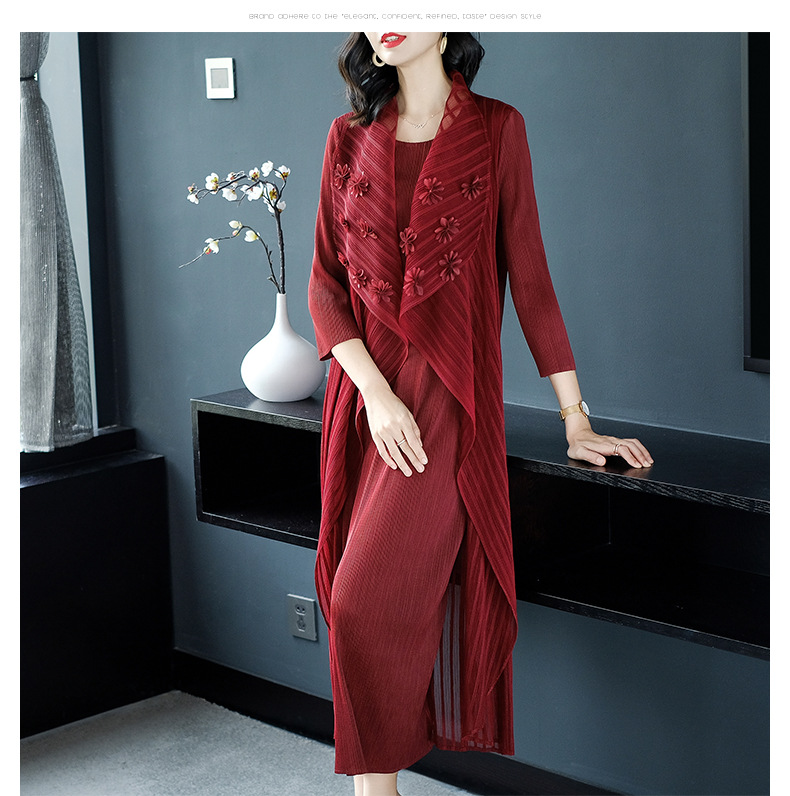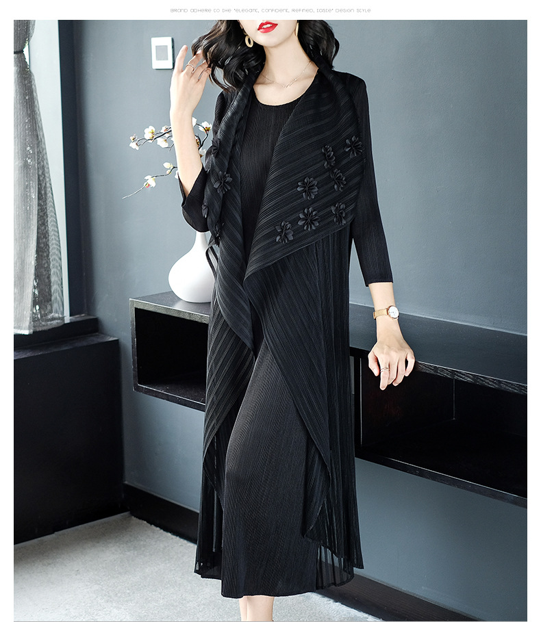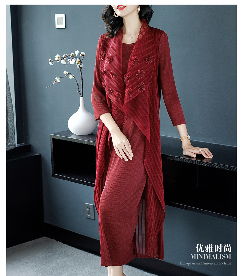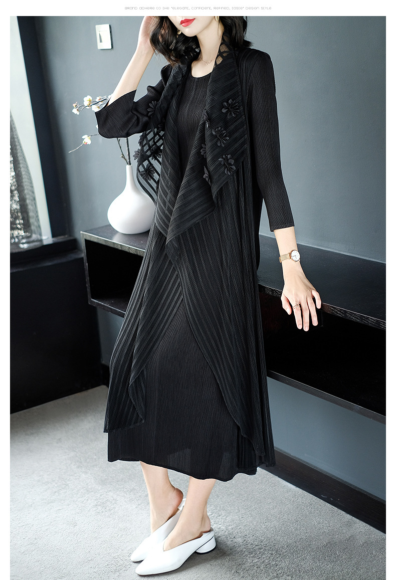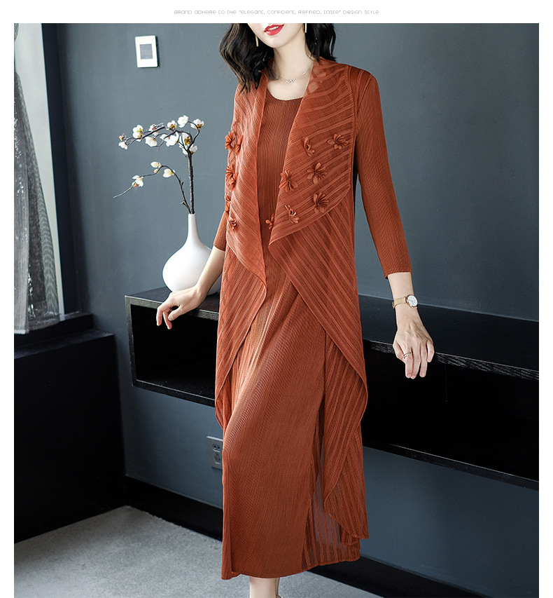 XSL-ZY-1005新款宽松中国风褶皱收腰大码修身显瘦假两件连衣裙