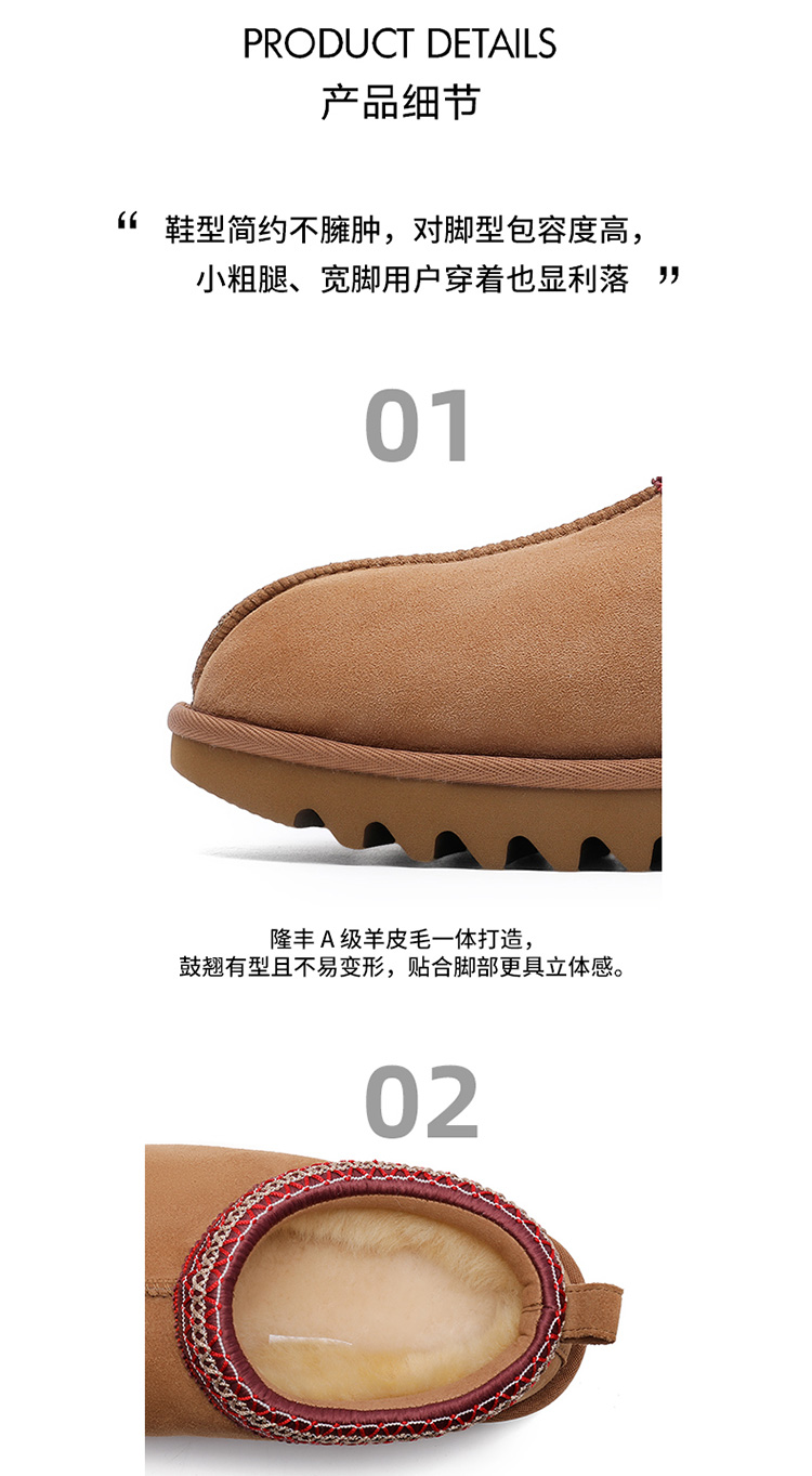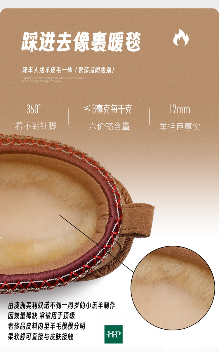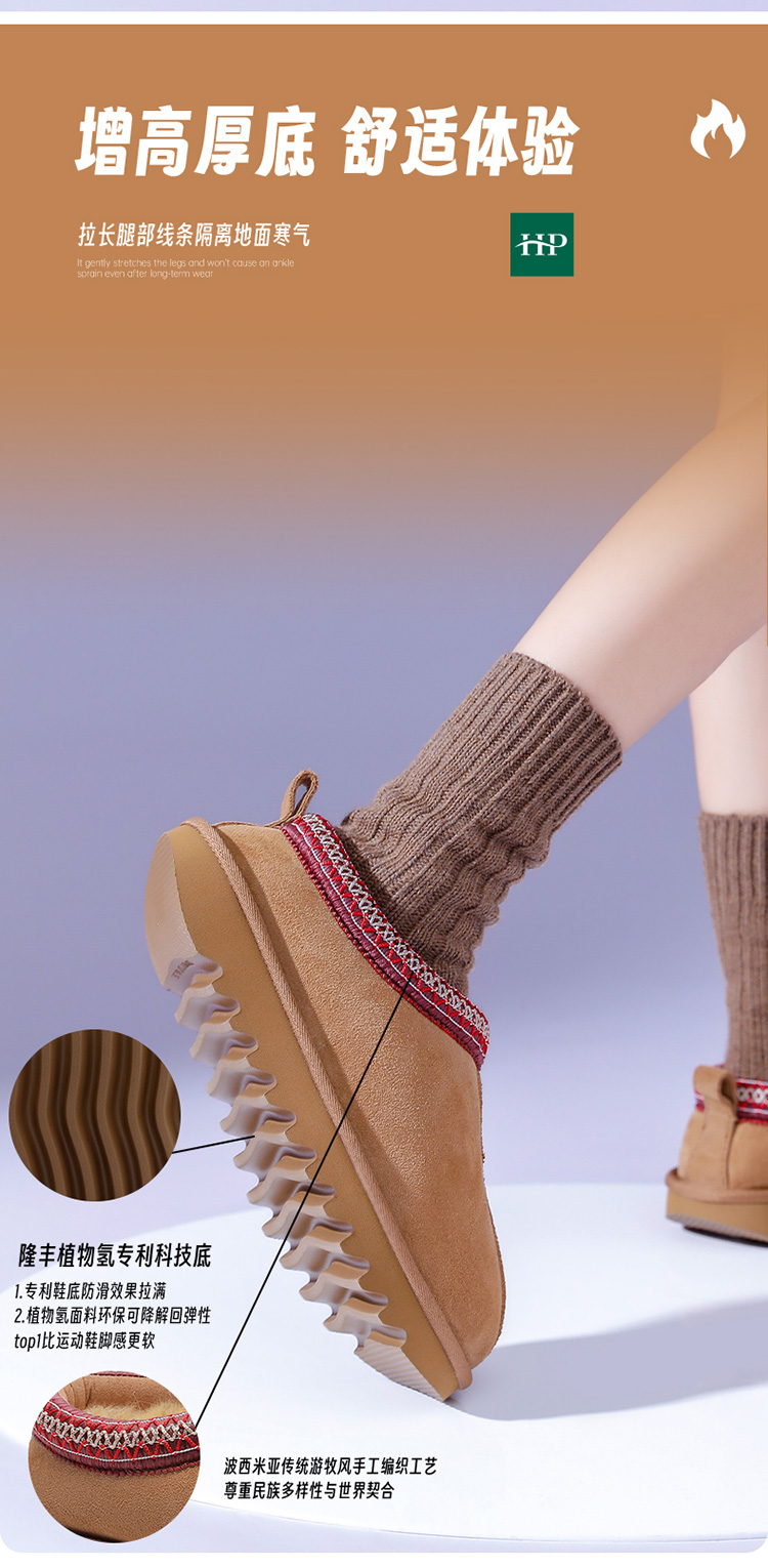 隆丰冬季女新包边民族风植物氢底保暖加厚柔软A级羊皮毛一体雪地靴122476 商品图3