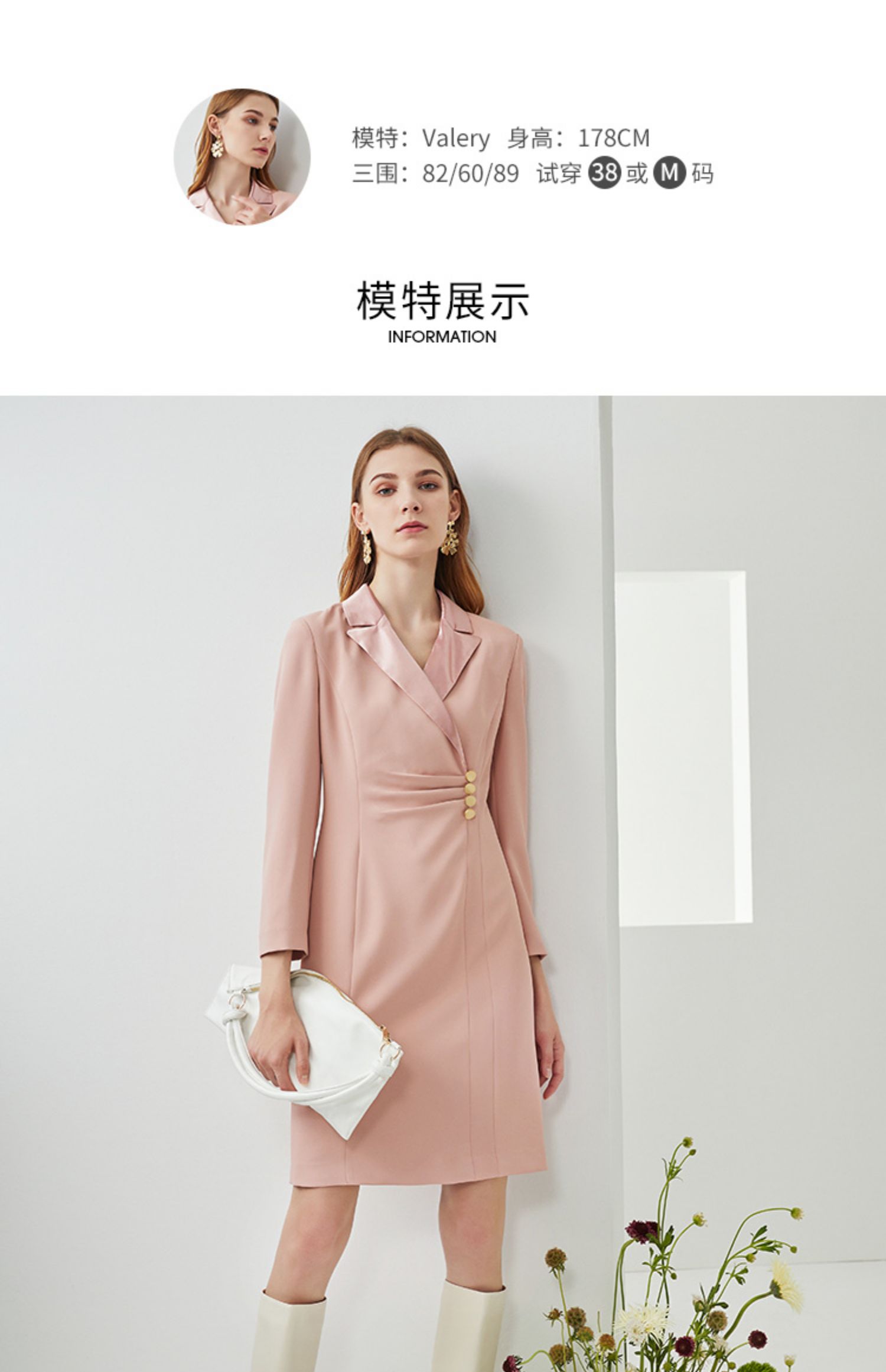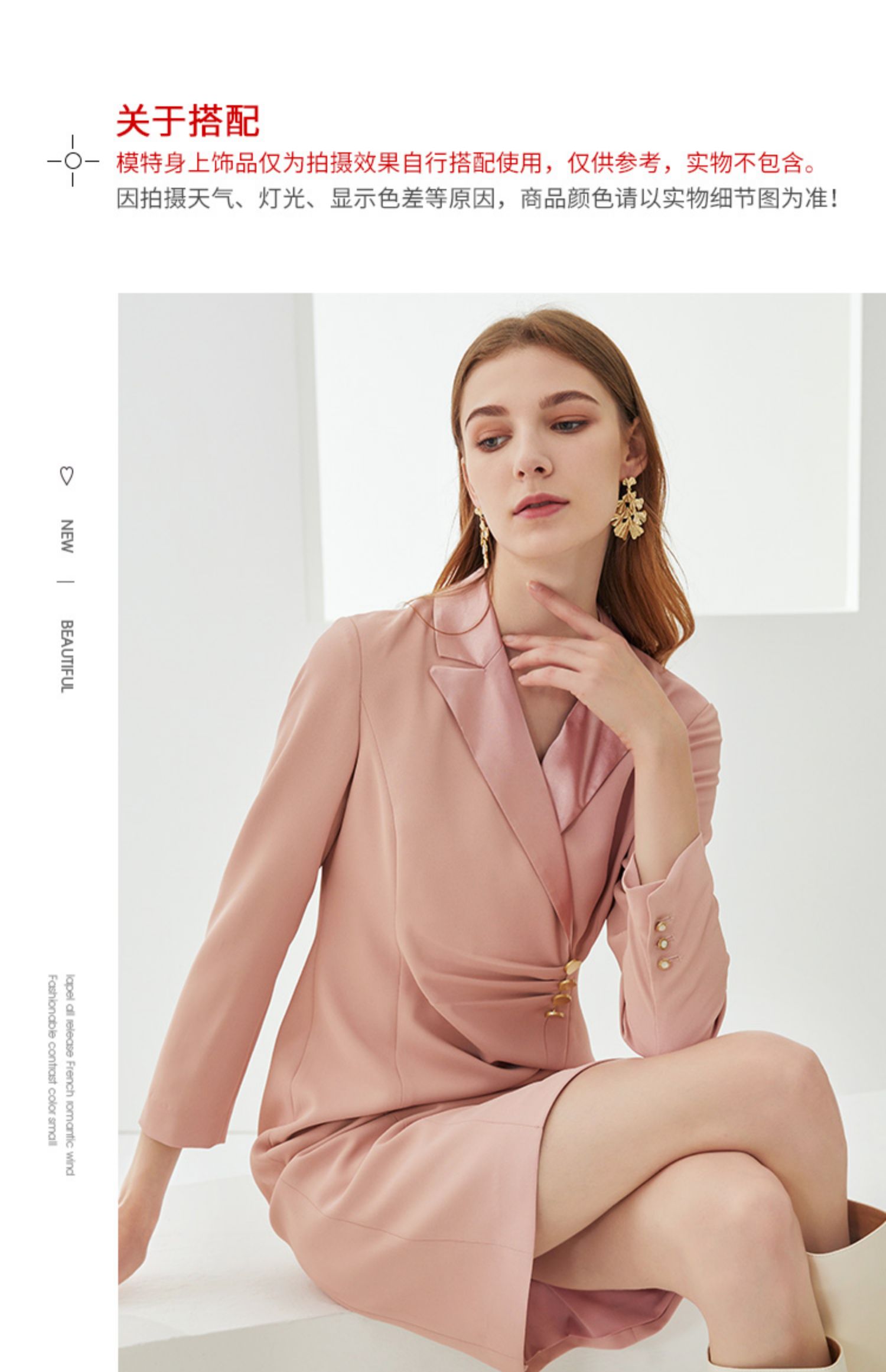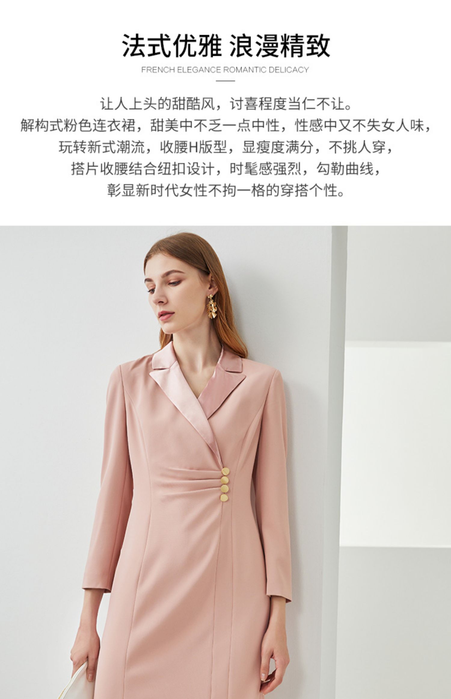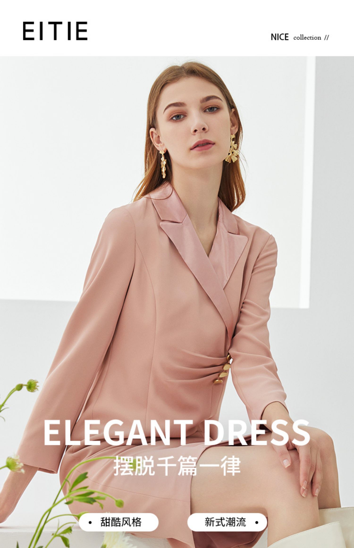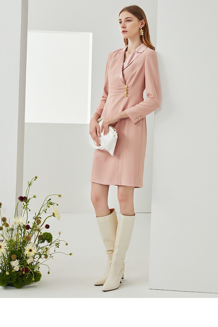 EITIE爱特爱新款时尚气质西装翻领修身显瘦通勤连衣裙女C2107836