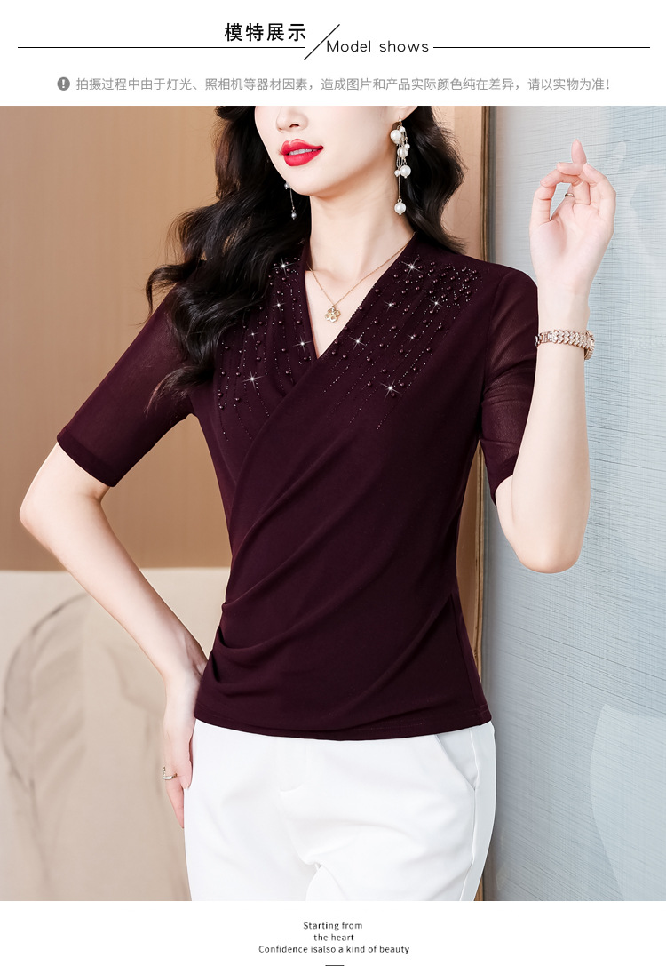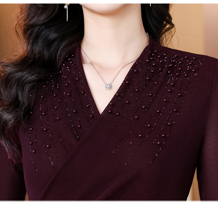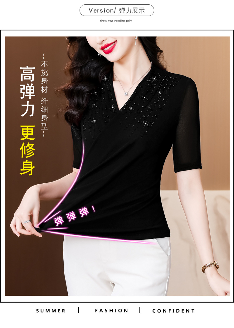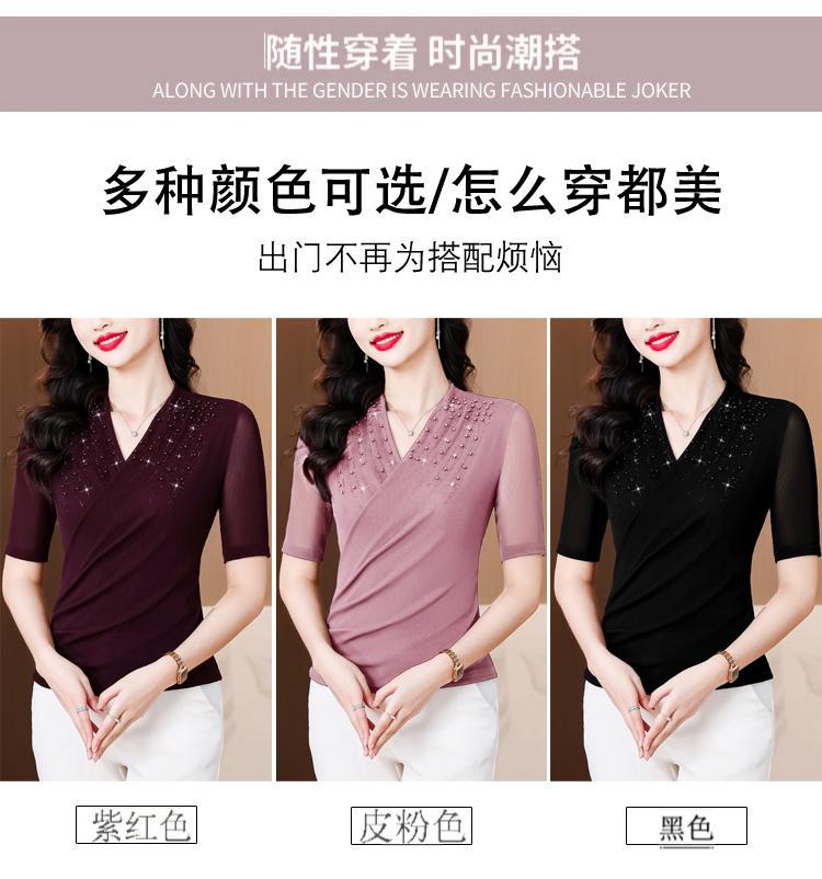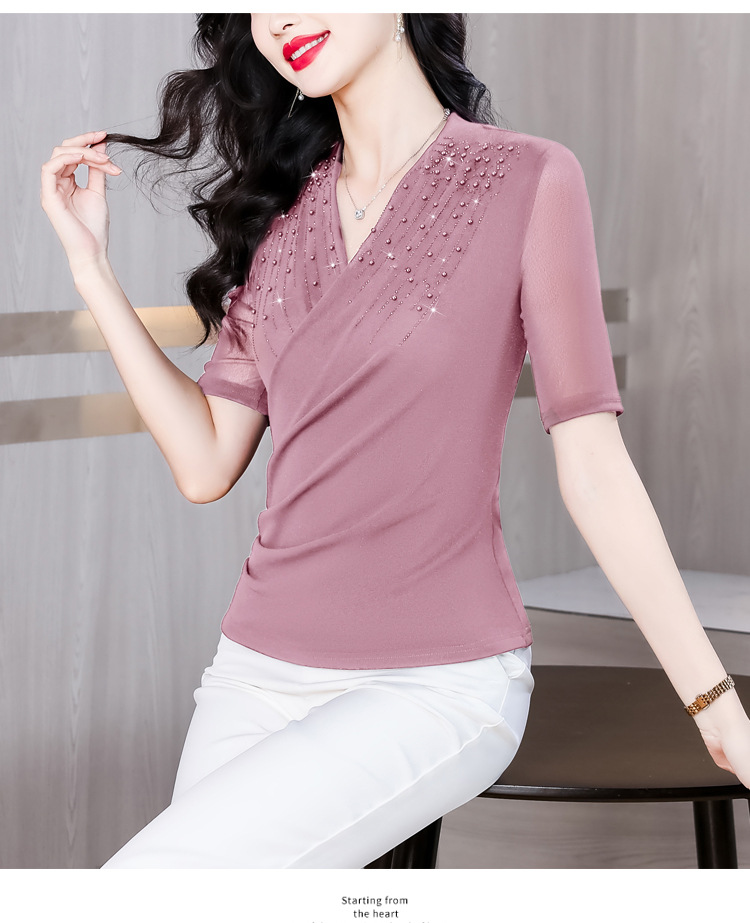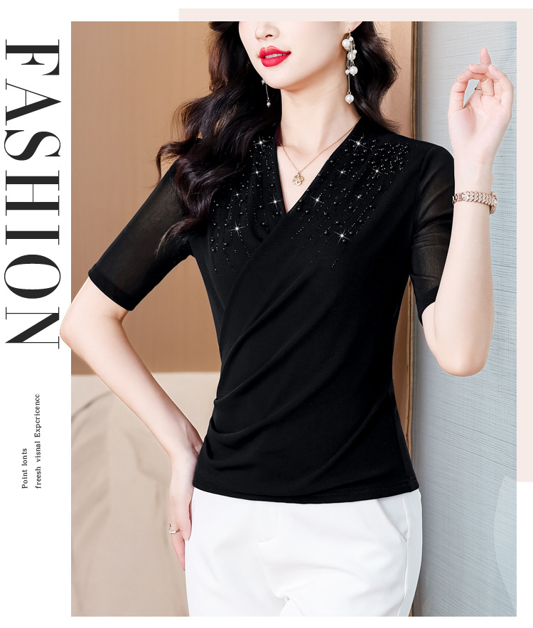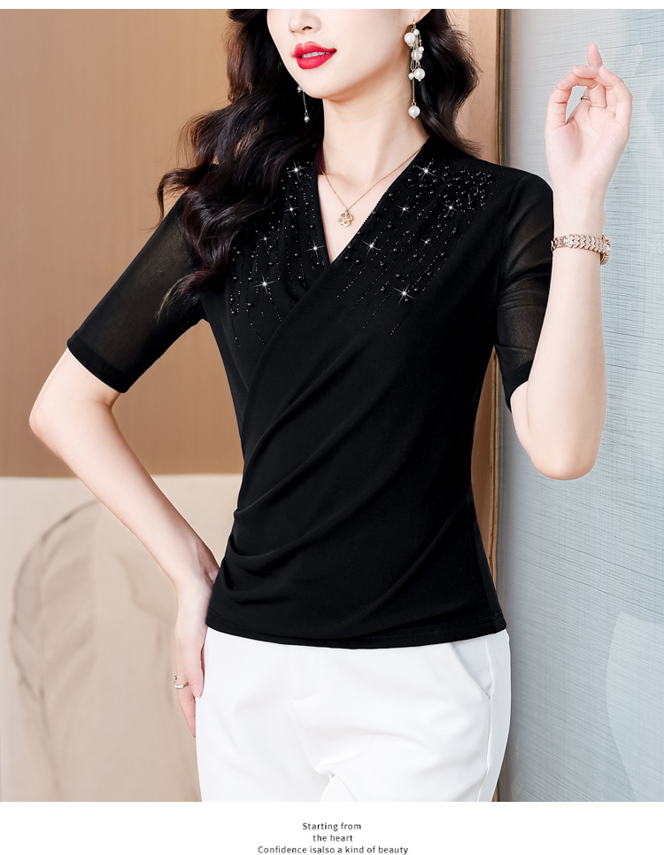 时尚气质交叉领钉珠设计上衣,百搭洋气显瘦小衫KQL-B12N2801