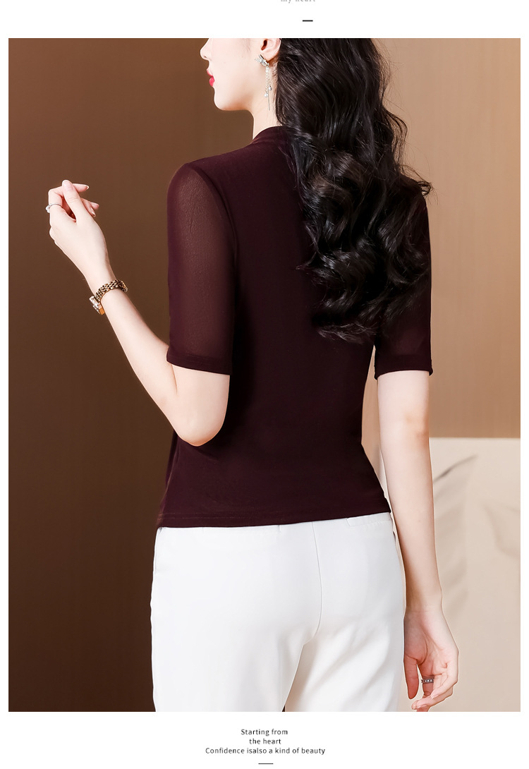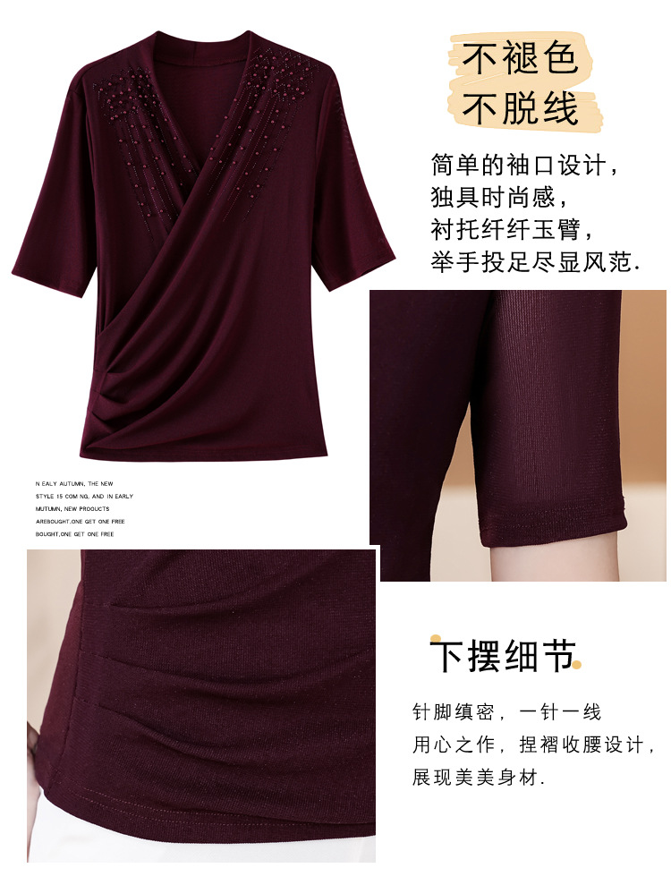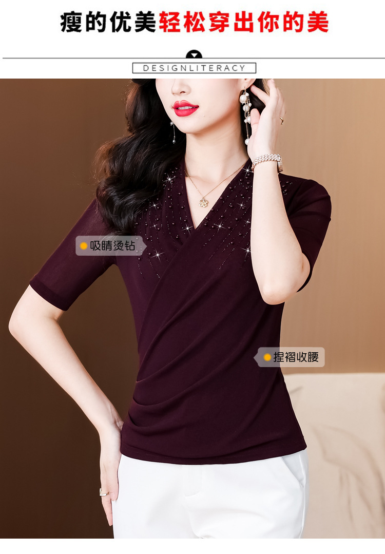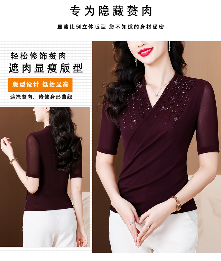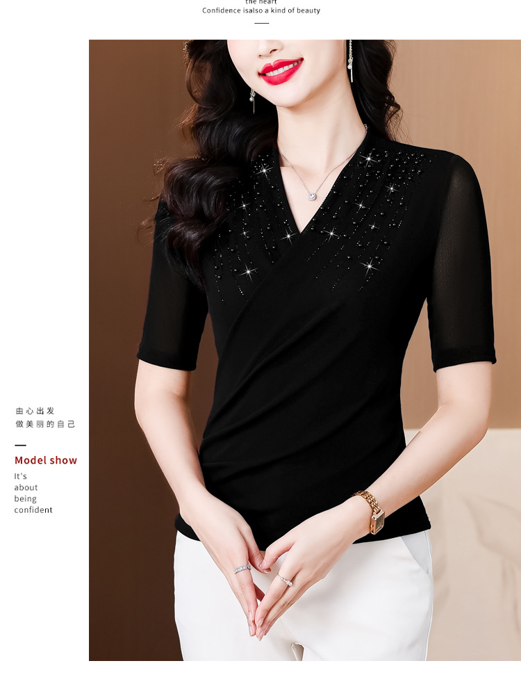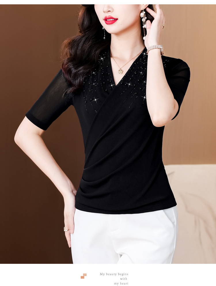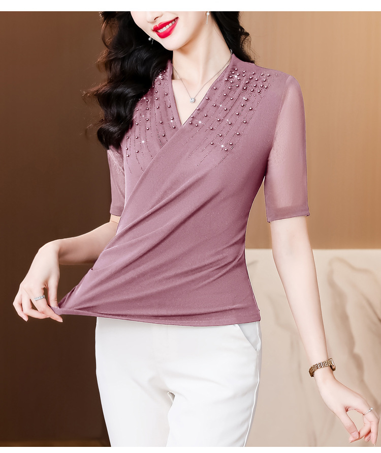 时尚气质交叉领钉珠设计上衣,百搭洋气显瘦小衫KQL-B12N2801