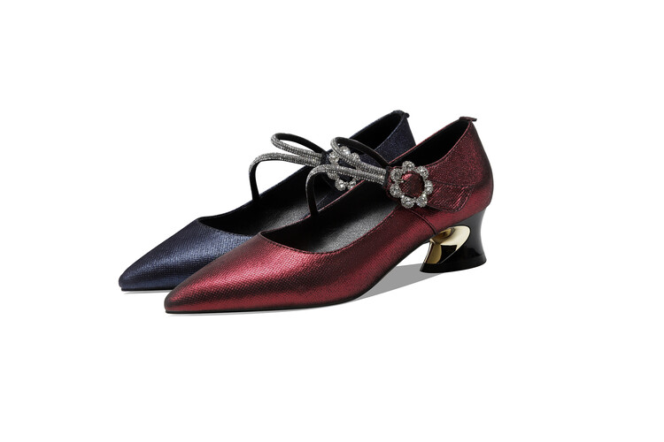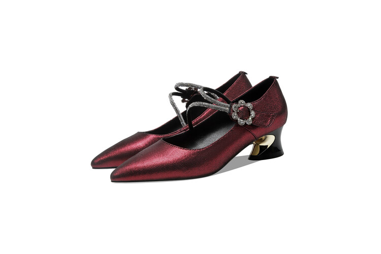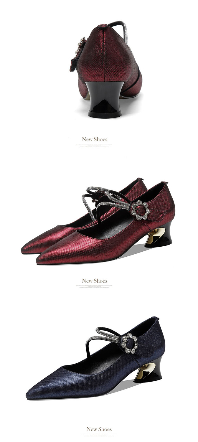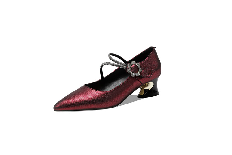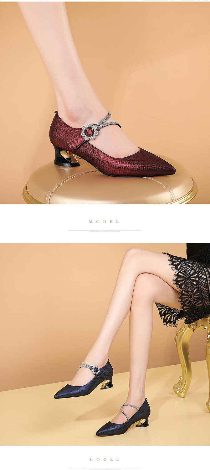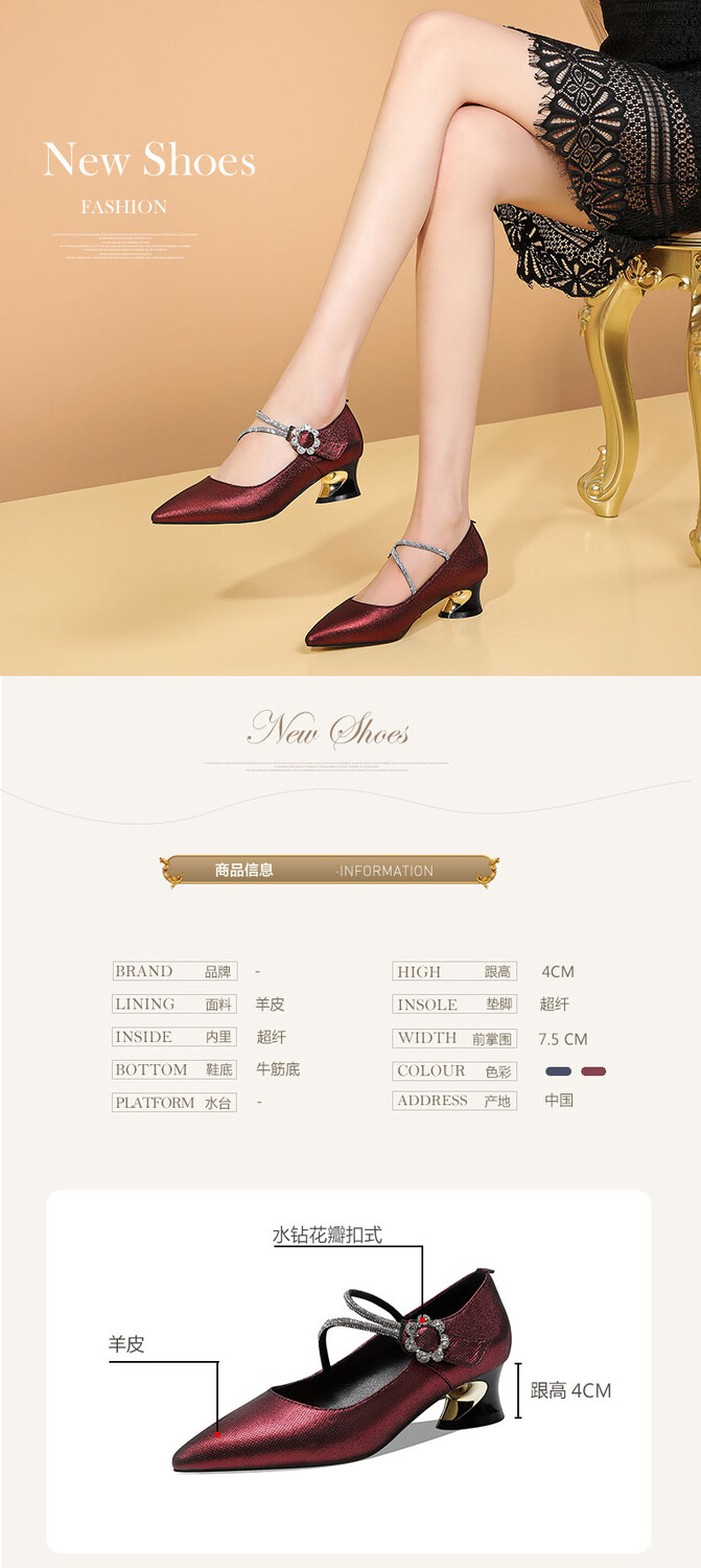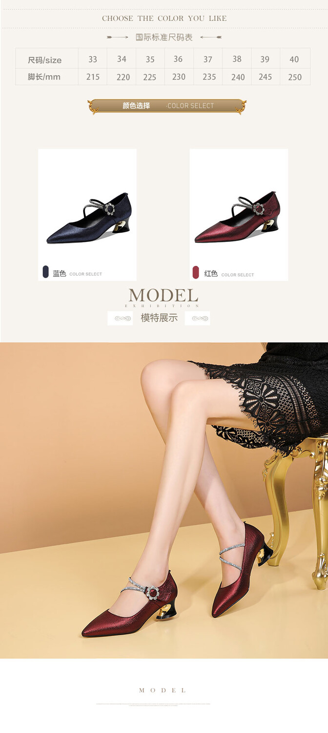 【预售5天】羊皮尖头粗跟一字扣单鞋女时装中跟玛丽珍鞋JLD&2202-24