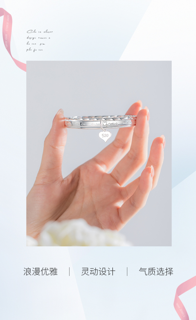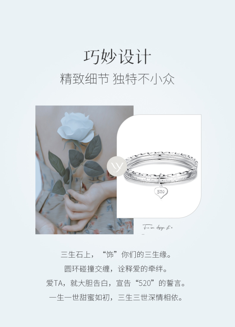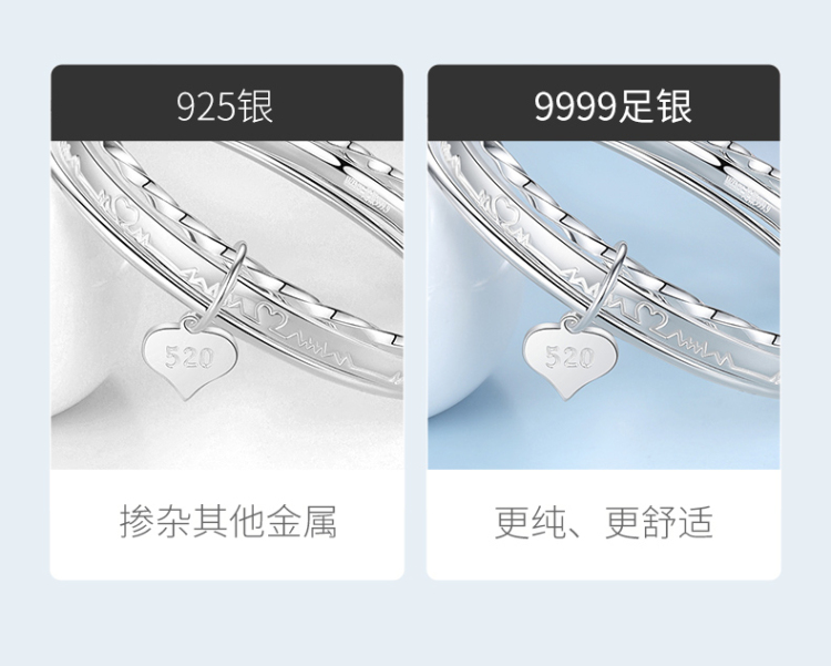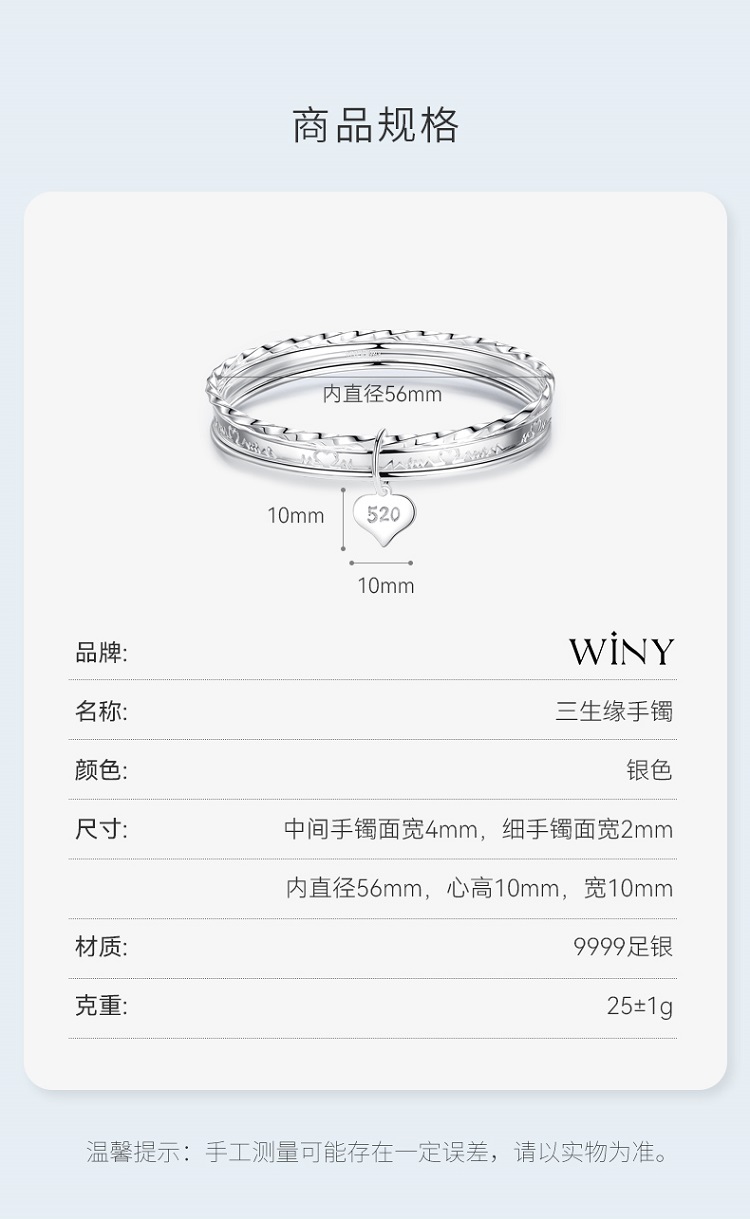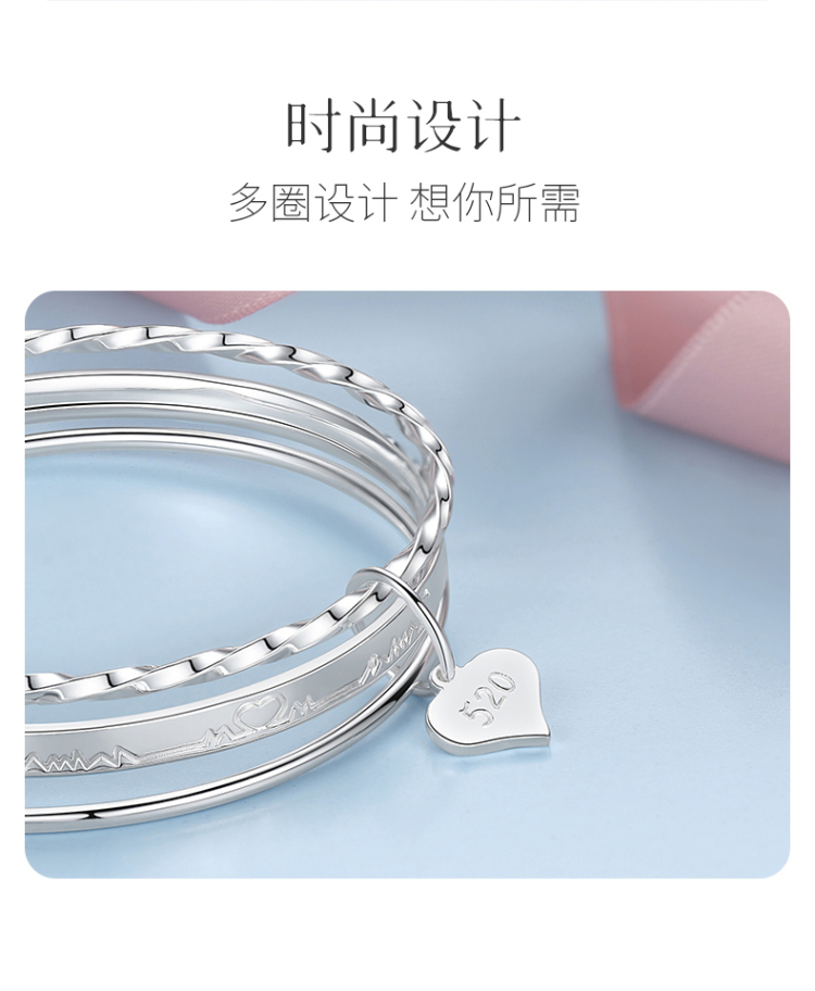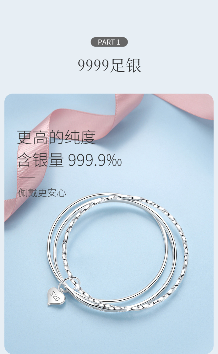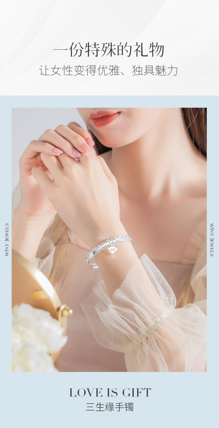 Winy9999足银三生缘手镯送女友闺蜜节日生日礼物